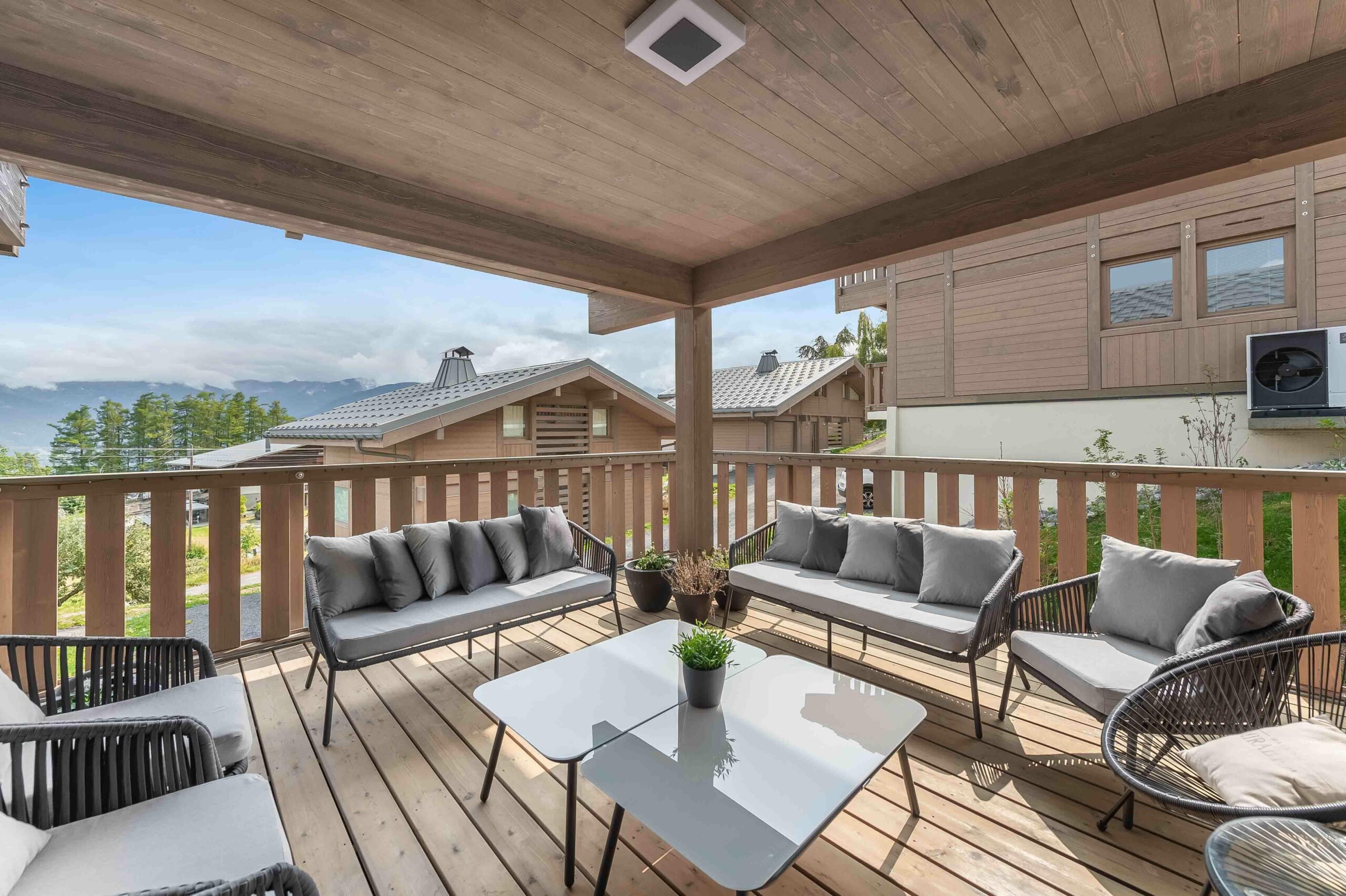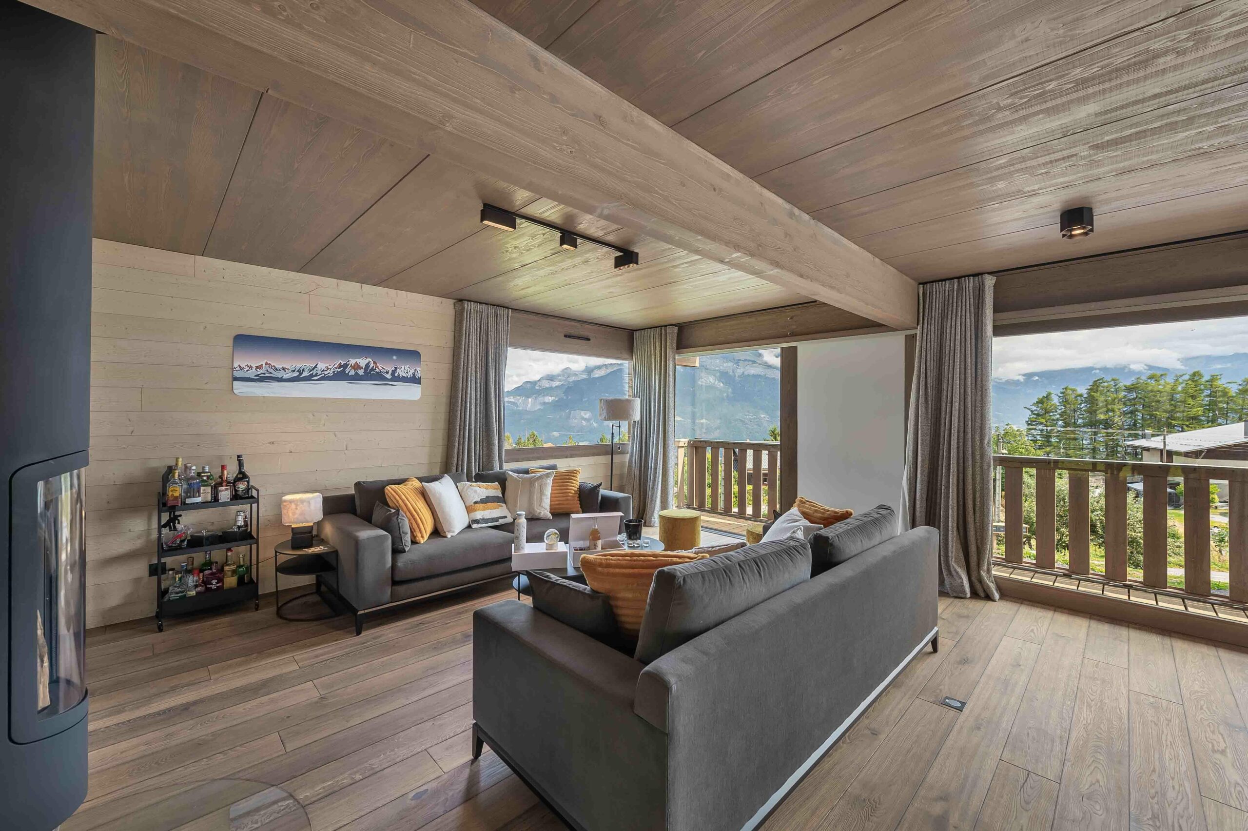 Un magnifique chalet en bois avec une vue panoramique imprenable sur le Mont-Blanc et les montagnes environnantes.