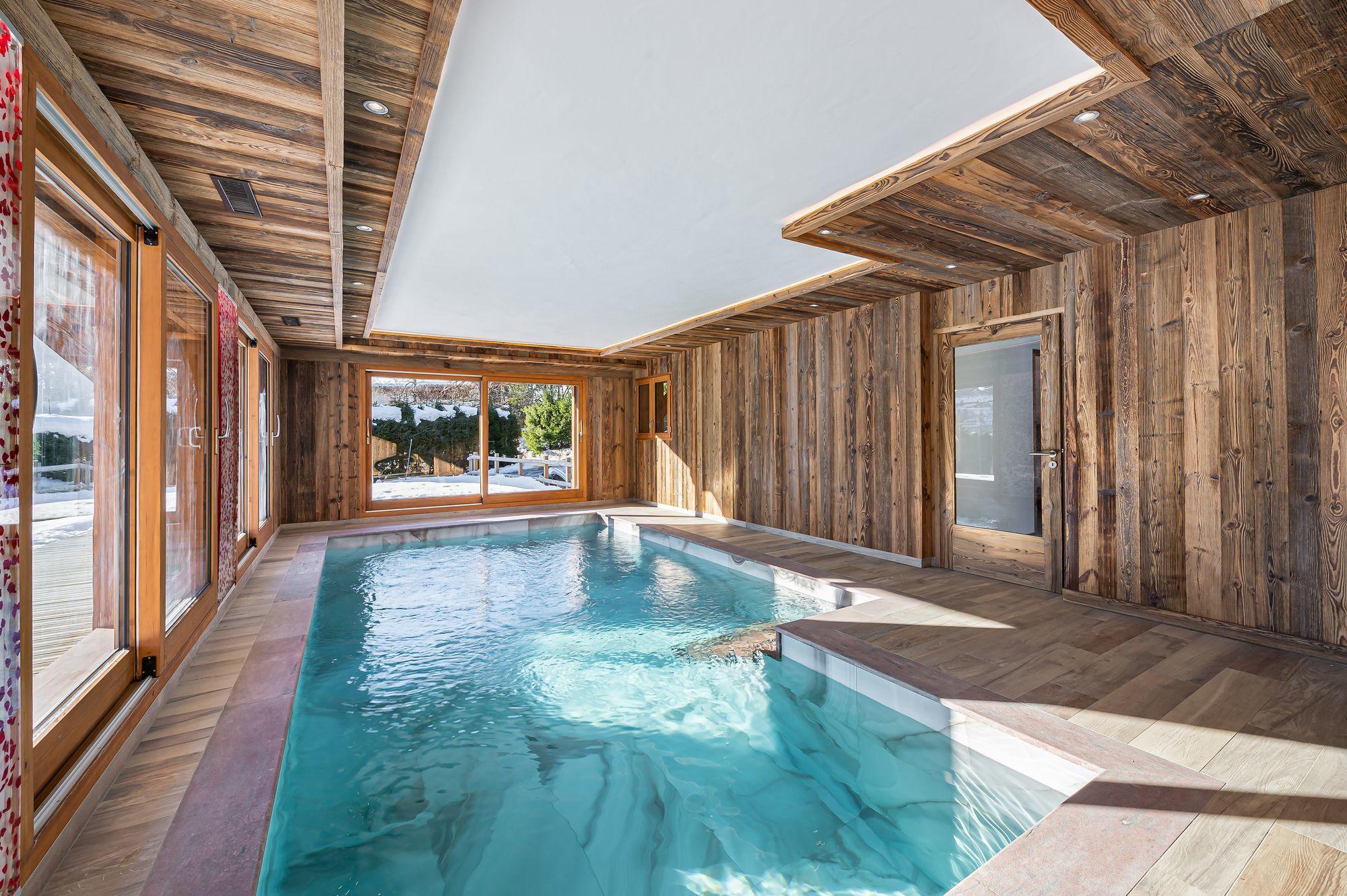 Un espace bien-être avec hammam, piscine et espace relax complètent ce magnifique chalet. Salle de tennis de table.