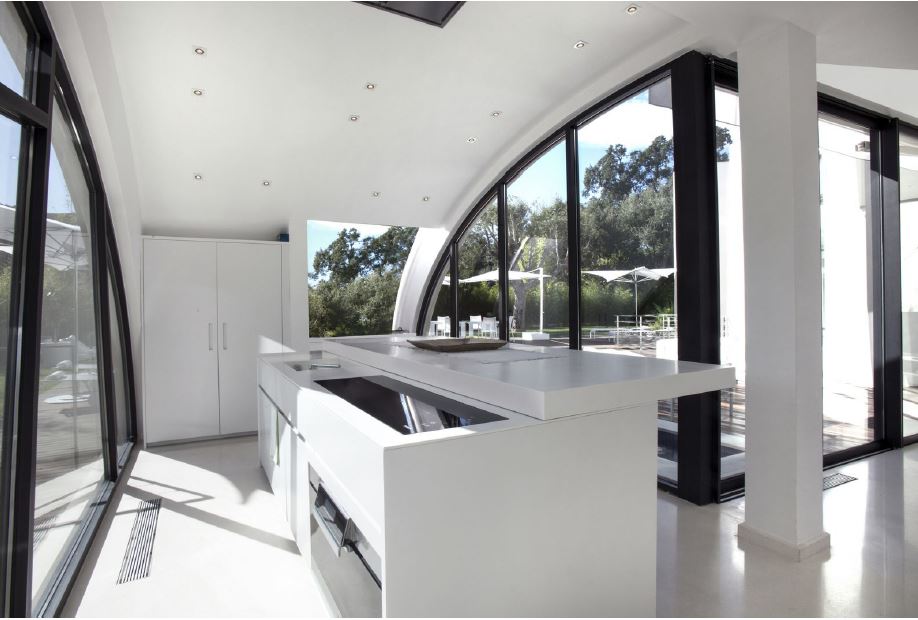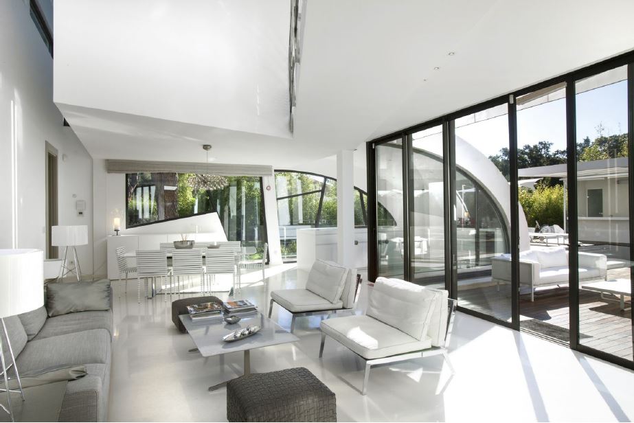 Cette propriété extraordinaire possède des caractéristiques uniques avec ses terrasses originales, ses murs arrondis, ses fenêtres arrondies du sol au plafond et ses murs transparents qui donnent à la maison une sensation d’ouvertures sans limite.