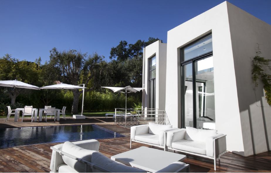 En effet, les extérieurs disposent d’une piscine en L, une pelouse plate, une terrasse avec des chaises longues, de grands parasols. Un plus, une cuisine extérieure entièrement fonctionnelle avec plaques de cuisson, réfrigérateur, machine à glaçons, lave-vaisselle, barbecue à gaz. Le jardin fait 1400m2