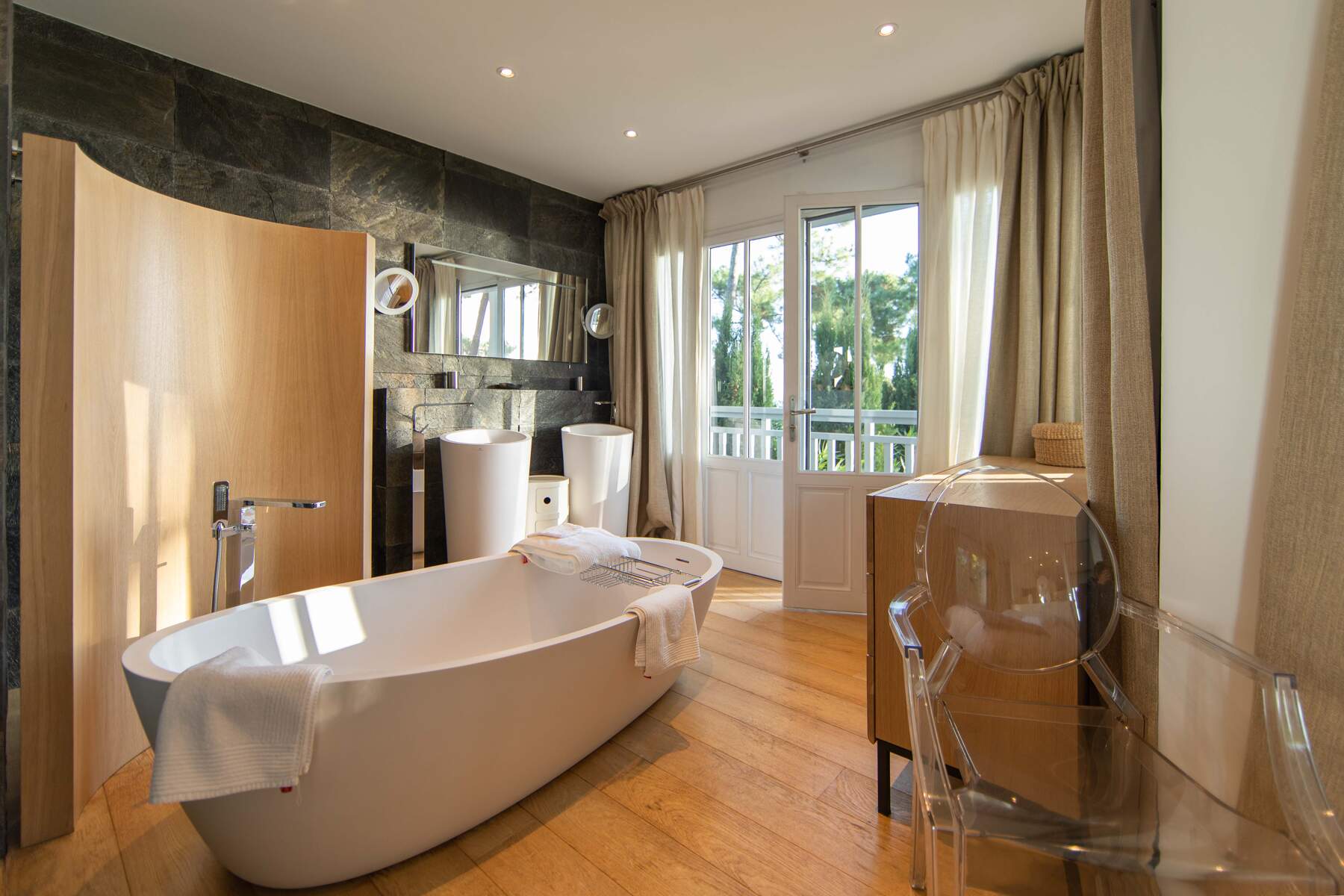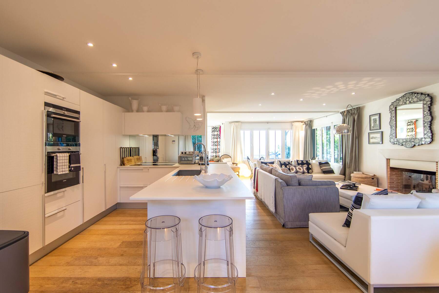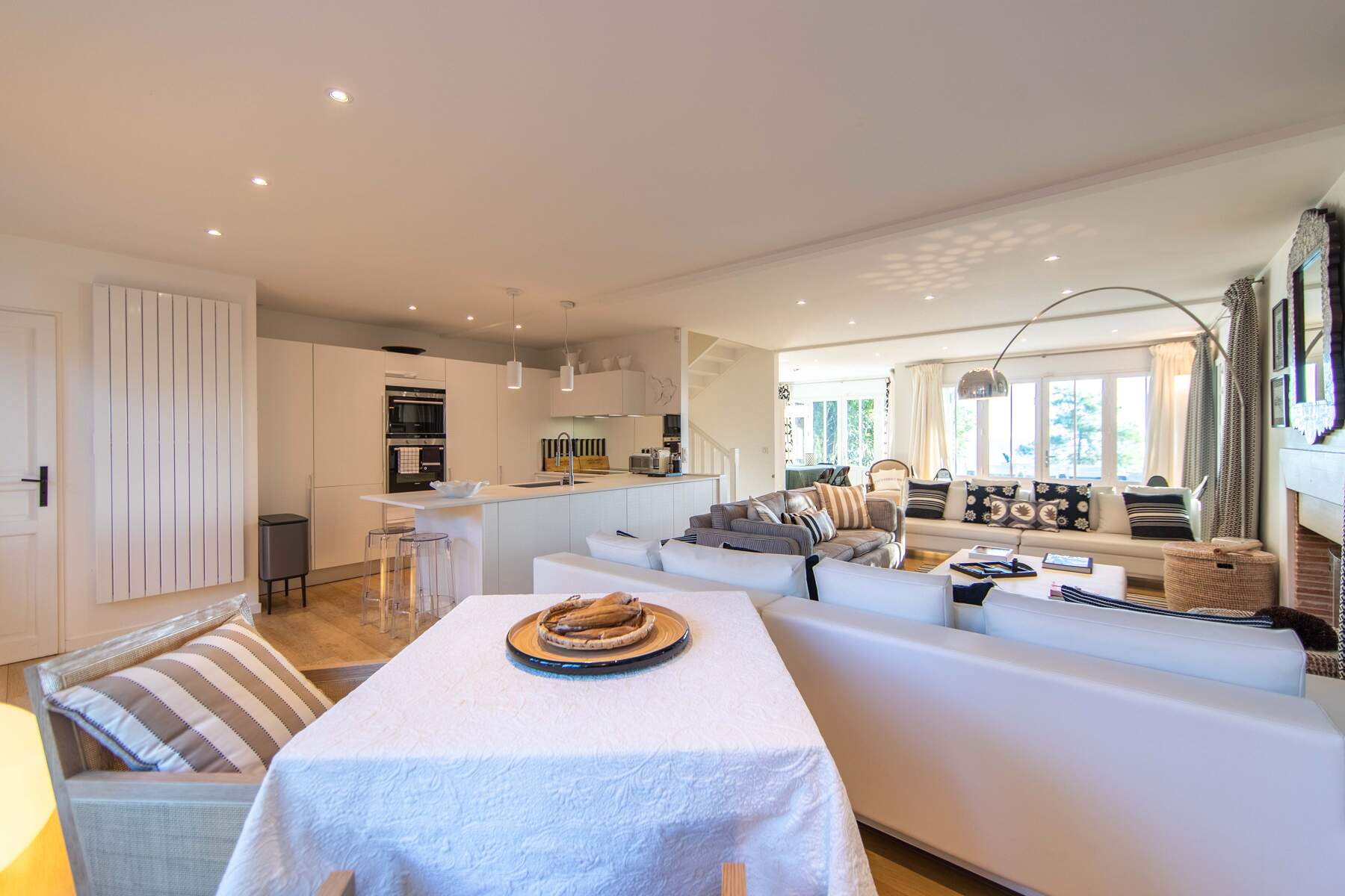 Location d’une villa de 200 m² avec 5 belles chambres et 4 salles de bain. En effet, la villa Dune du Cap est une charmante cabane directement pieds dans l’eau au Cap Ferret pour 10 personnes. La villa est décorée avec soin et un chic moderne qui la rends très agréable. Les pièces de vie sont claires et bien aménagées avec des matériaux modernes. Le petit côté design donne à cet intérieur la touche luxueuse pour un confort pratique. De plus, la cuisine est entièrement équipée et spacieuse.