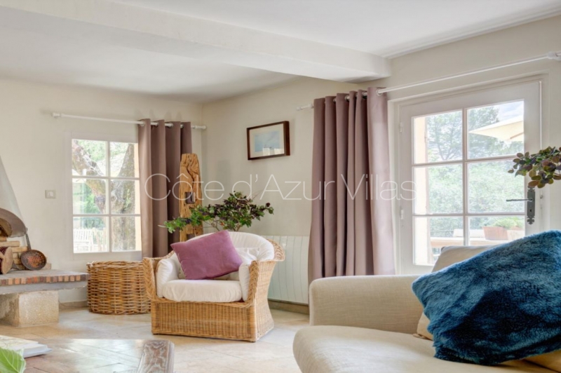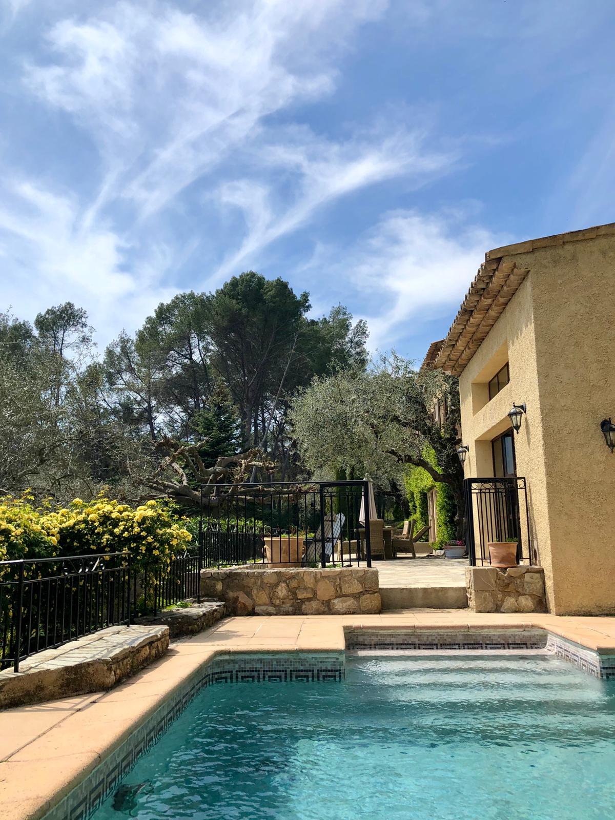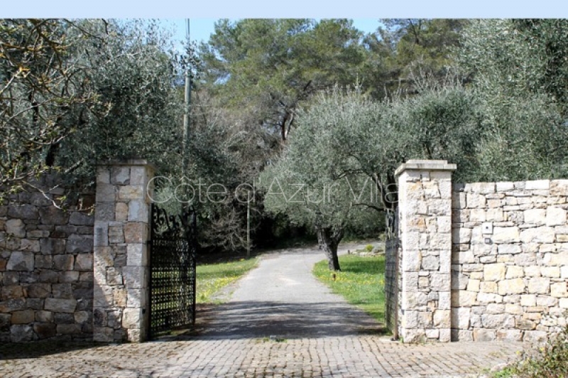 La propriété est située sur un chemin résidentiel tranquille et accessible via un portail électrique. D’un côté, le village de Valbonne est à 5 minutes en voiture et l’école de Mougins. Le village de Mougins et l’accès à l’autoroute sont à 10-15 minutes!