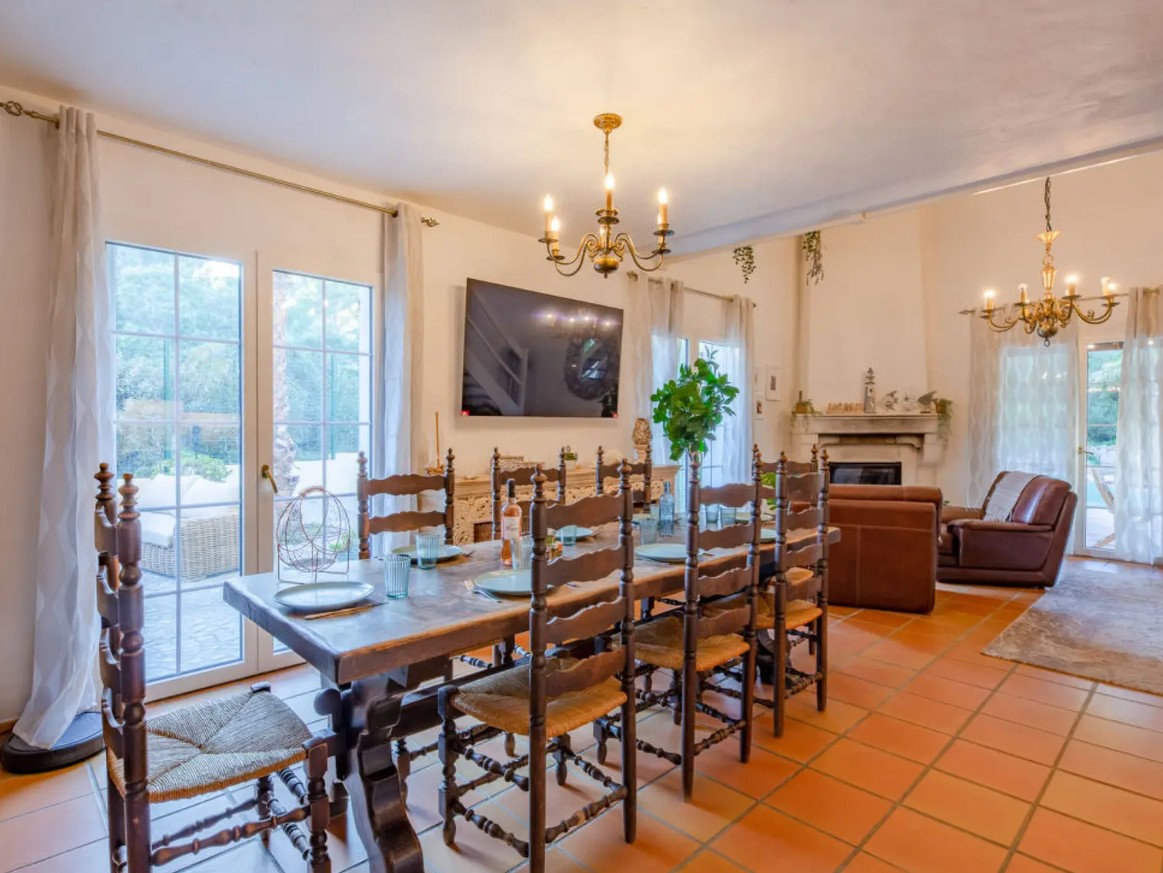 Dès votre arrivée, vous serez séduit par le vaste séjour lumineux, donnant directement sur une terrasse aménagée avec vue sur la piscine et la mer. Le salon est équipé d’un écran plat, d’un mobilier confortable et de la climatisation, garantissant des moments de détente absolue après une journée au soleil.