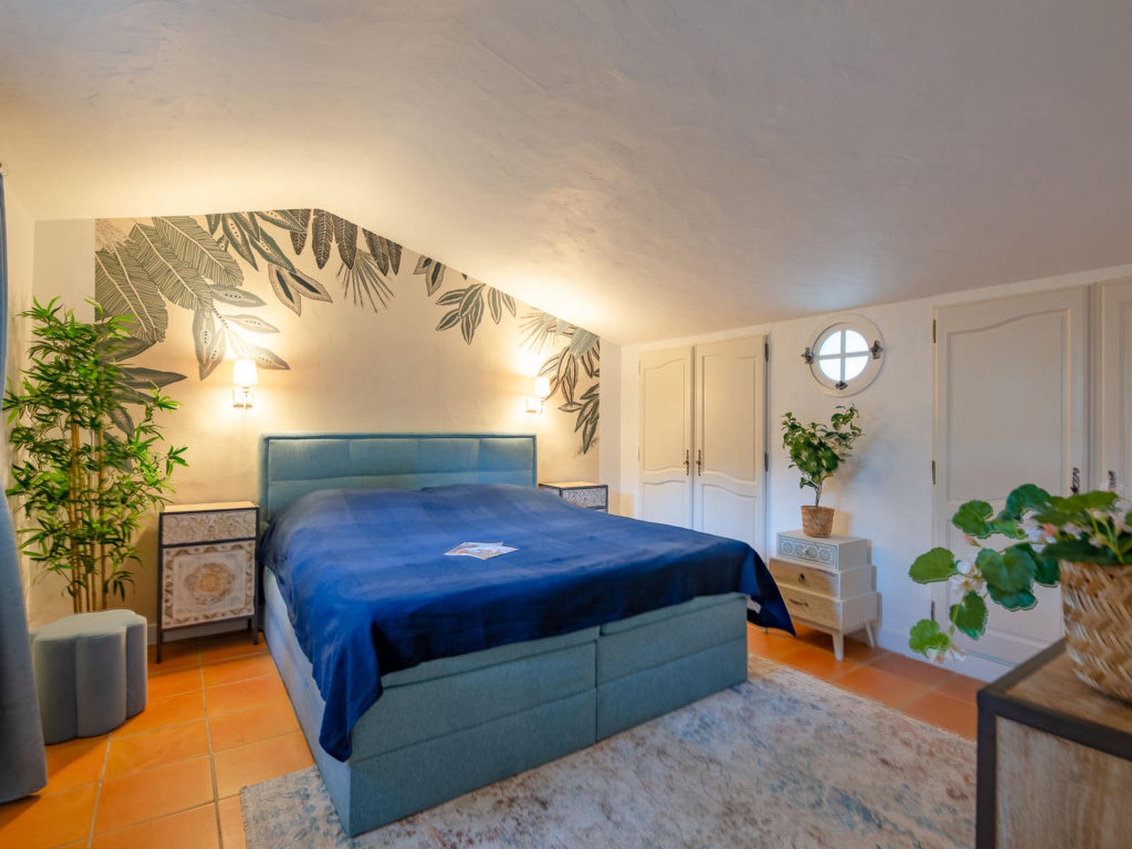 Au rez-de-chaussée, vous trouverez deux chambres avec lits doubles (180×200 cm), climatisation et accès direct à l’extérieur, ainsi qu’un studio indépendant comprenant un lit double, un coin salon avec canapé convertible, une salle de bain privative et une terrasse privée. L’étage supérieur propose deux autres chambres, dont une avec deux lits simples (90×190 cm) et l’autre avec un grand lit double (180×200 cm), toutes deux ouvrant sur une belle terrasse avec vue panoramique.