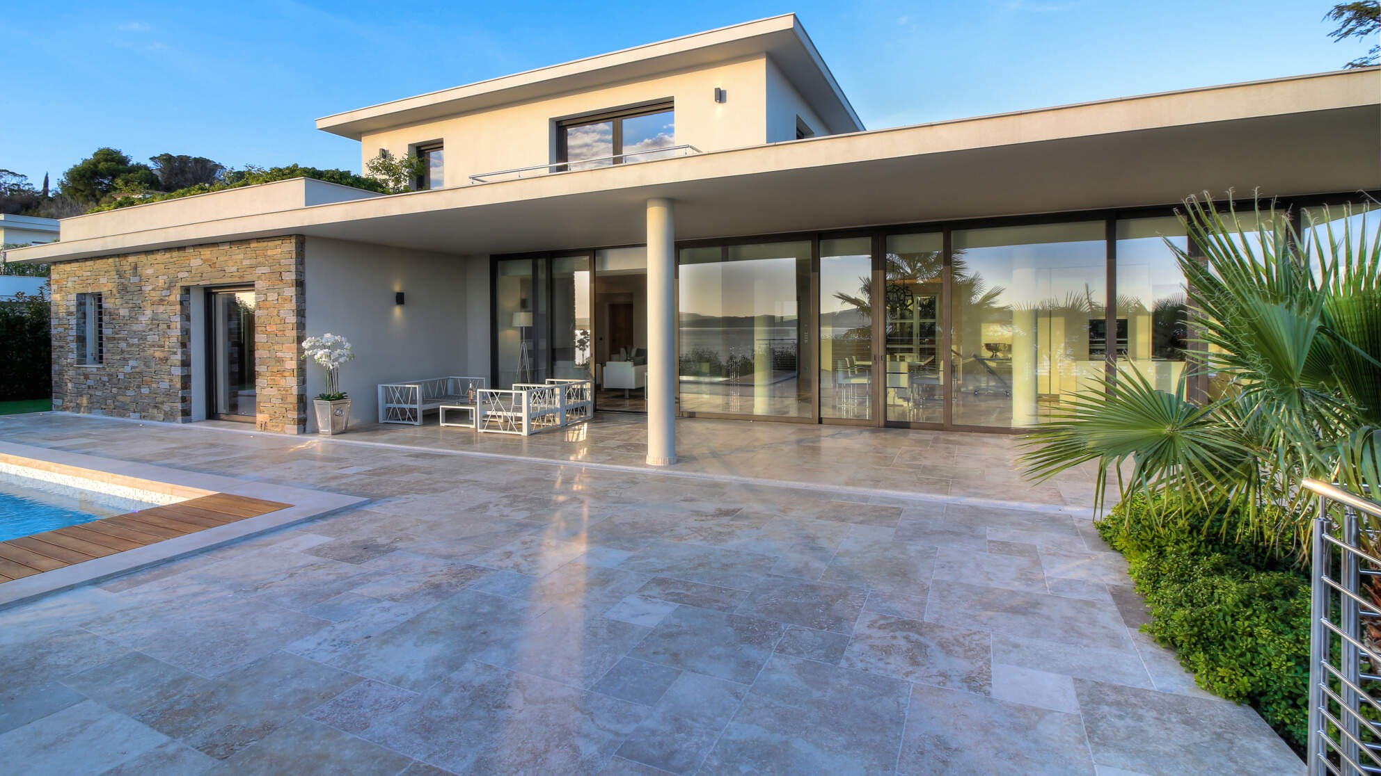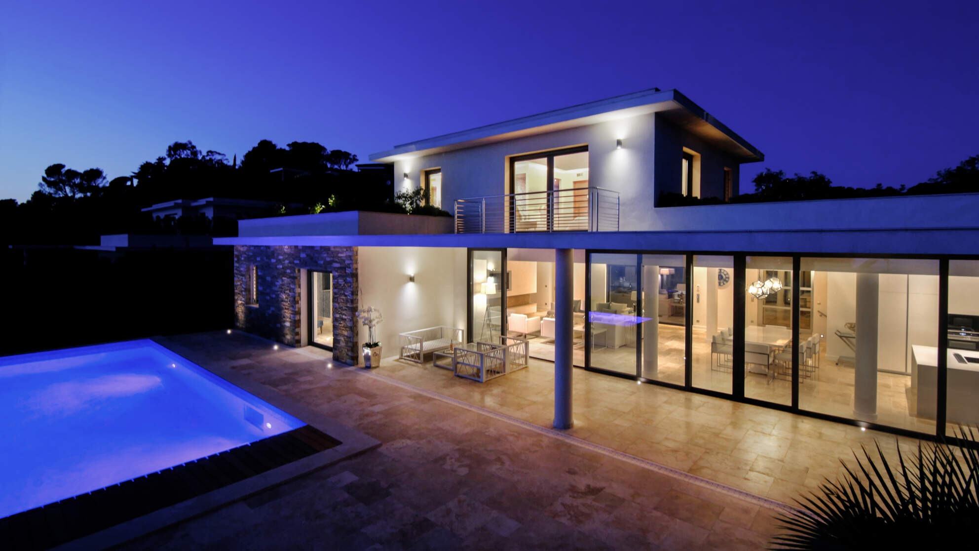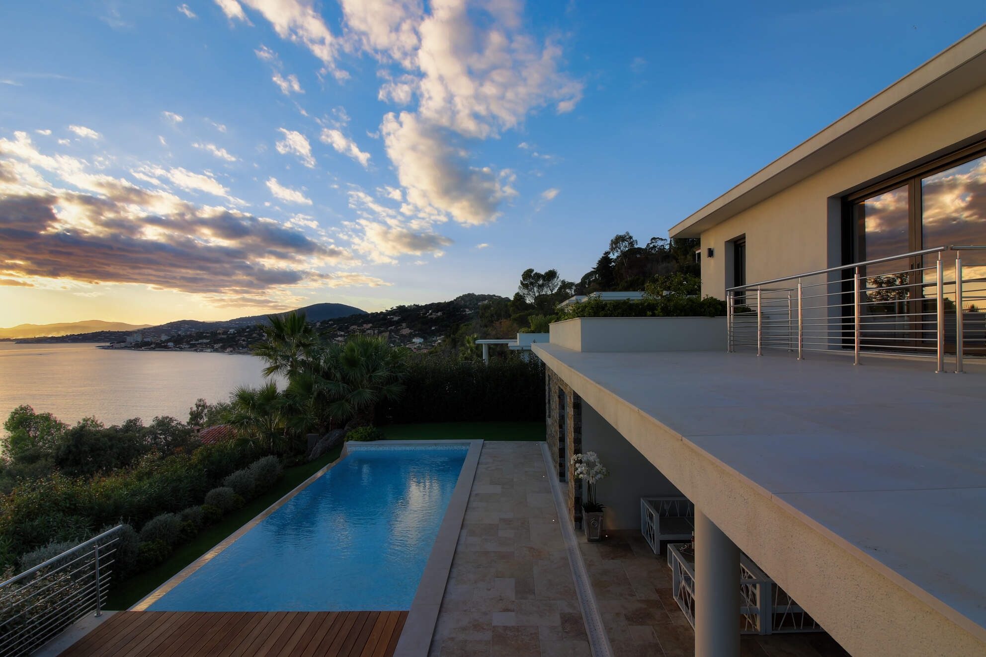 La villa de prestige contemporaine à Sainte Maxime est une propriété haut-de-gamme offrant une vue panoramique panoramique imprenable sur la mer Méditerranée.