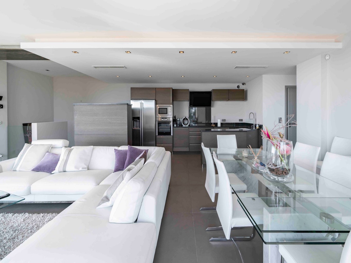La villa Madeline est composée de 2 étages avec une magnifique terrasse sur le toit. La villa est moderne mais reste néanmoins chaleureuse. La lumière est exceptionnelle grâce aux baies vitrées dans les pièces de vie. La grande cuisine ouverte sur le salon invitent les convives à des moments de partage. En effet, le mobilier est confortable avec des canapés cosy et une grande table de salle à manger pour recevoir tous les convives. Pour vous détendre devant un bon film la TV est un grand écran.