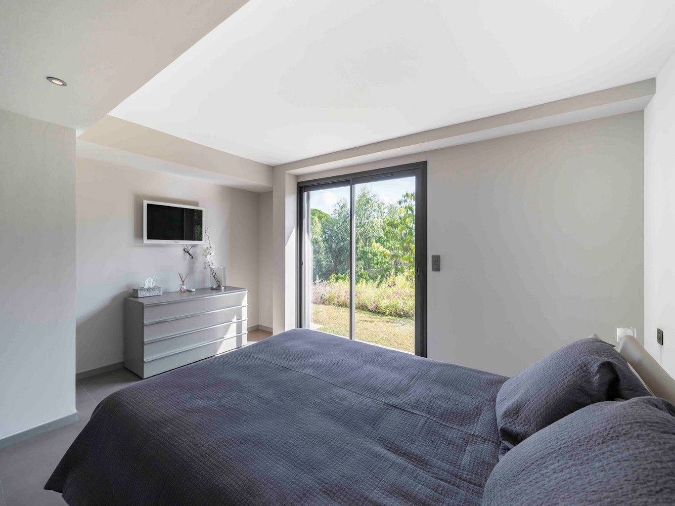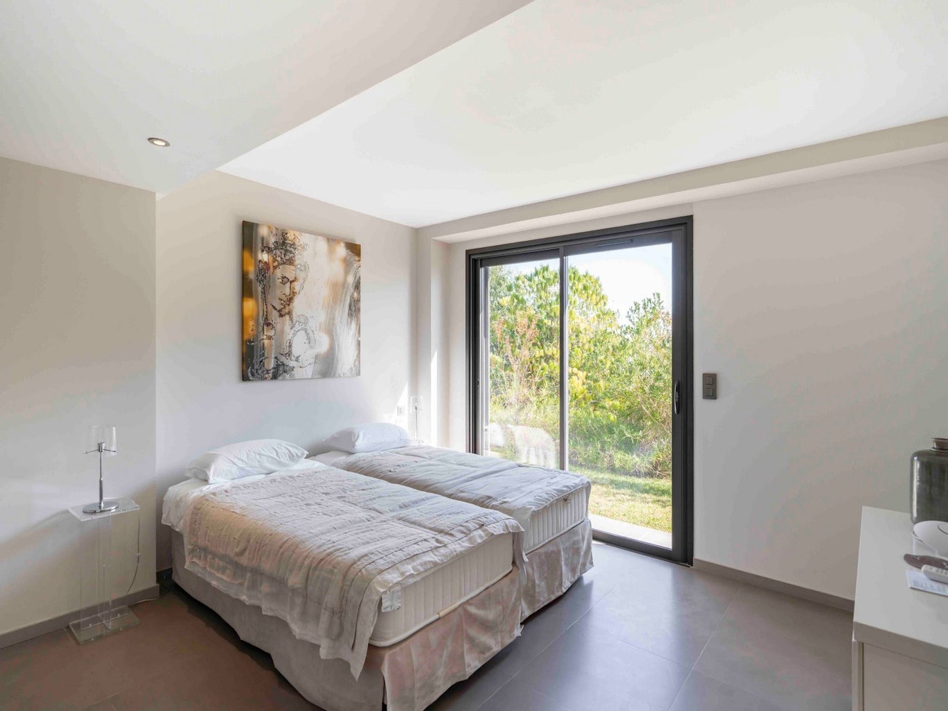 En effet, 2 chambres double avec salle de bain en suite. Puis, 2 autres chambres avec 2 lits jumeaux. Une autre petite chambre pour un ado ou une nany est disponible avec un lit simple. Enfin, toutes les chambres ont une salle de bain attenante et un dressing. En fait, pour le plaisir de chacun, les chambres du rez de chaussée donnent sur le jardin gazonné. Tandis que les chambres du 1er étage s’ouvrent sur une longue terrasse avec table et canapés.