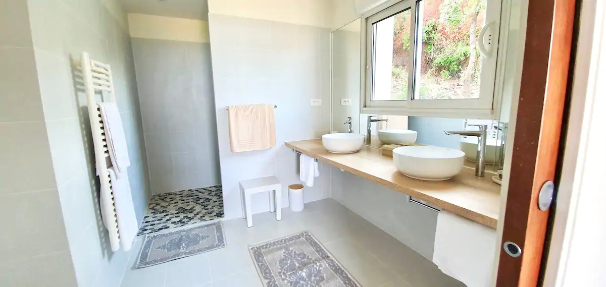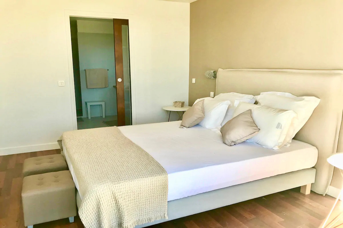 Chacune des 5 chambres climatisées possède sa salle de bain privative (douche, lavabo, WC, sèche-cheveux) ainsi qu’une armoire ou dressing et offre une VUE MER panoramique (RARE)! Accès au bord de mer (en 3 min).