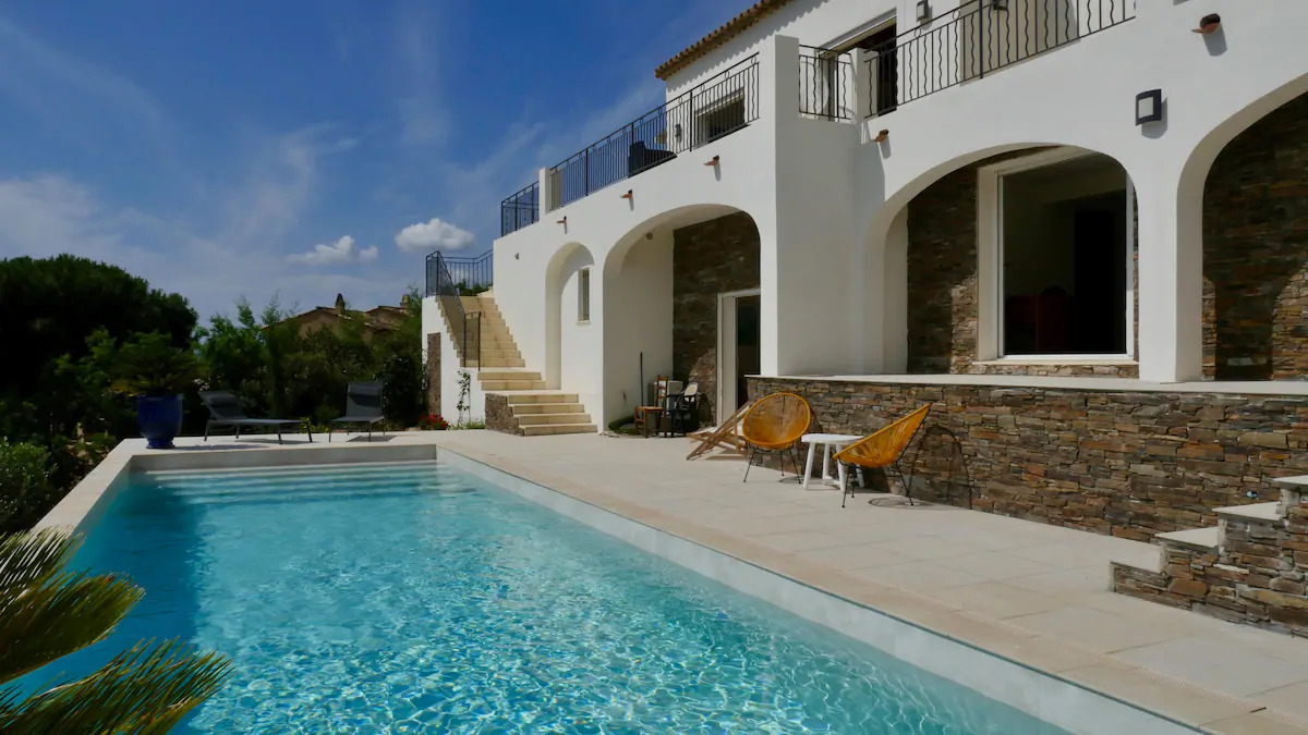 Accès à Saint-Tropez: par navettes (bateaux verts tous les jours et tous les soirs en été) depuis le port de Sainte-Maxime que vous pouvez rejoindre en seulement 10 min. éloignez-vous. WIFI – BBQ – Parking – A / C – PISCINE CHAUFFÉE – Vues MER – Terrain de boules français.