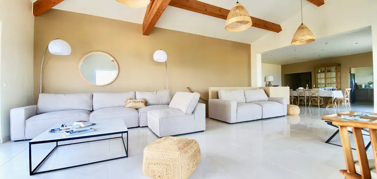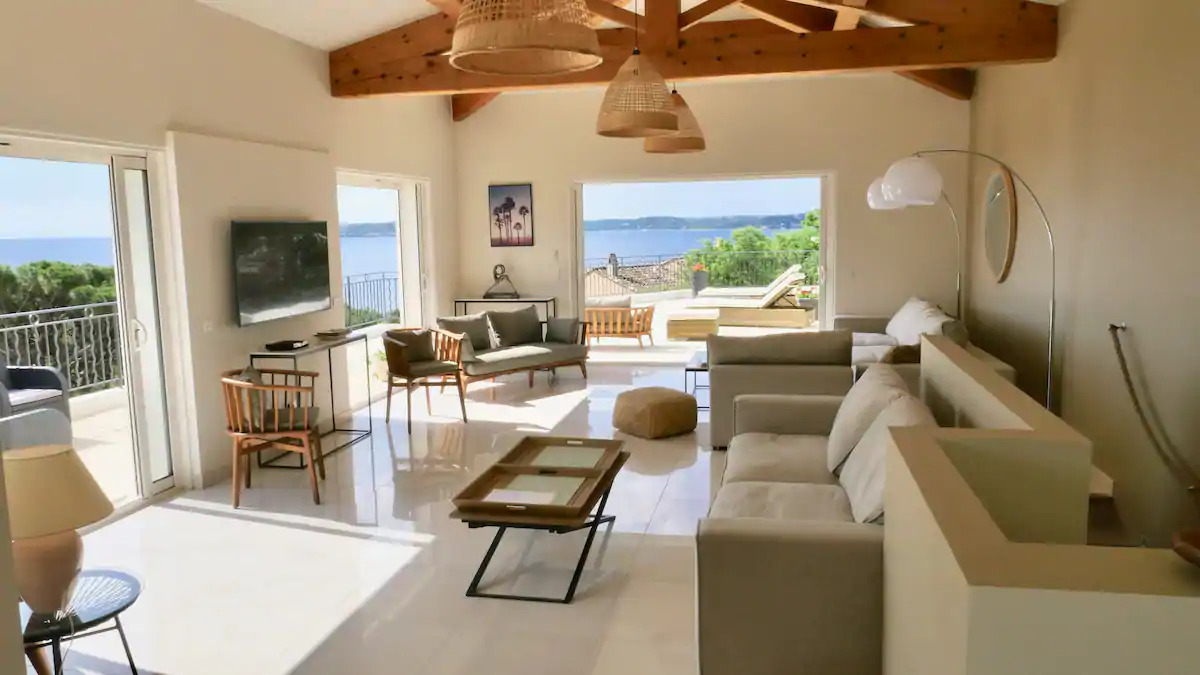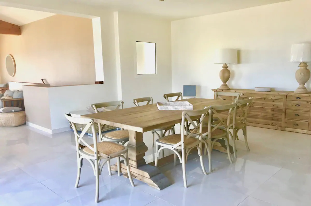 Il y a aussi 2 grandes tables + 2 salon de jardin pour manger à l’extérieur ou profiter de la vue imprenable sur la mer. Les vues de l’intérieur de la maison sont également incroyables.
