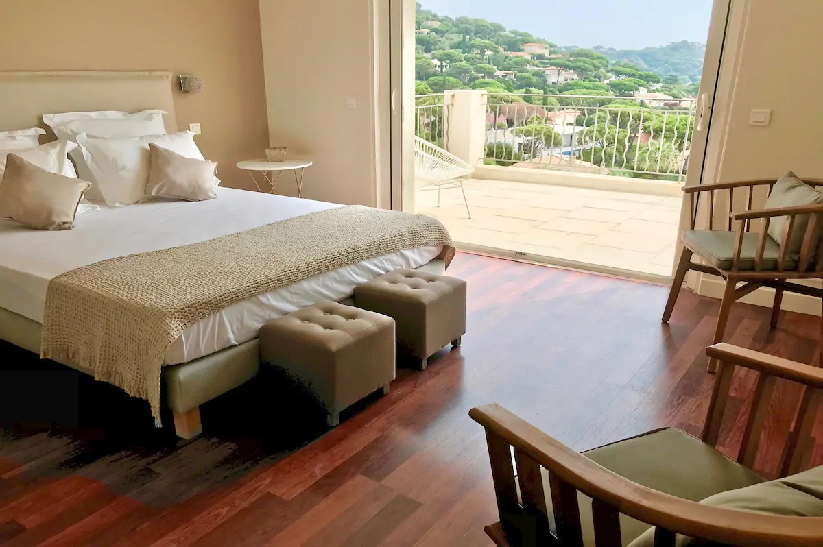 Terrain de 1300m Quartier calme et paisible. Vraie confidentialité. 300 m2 de TERRASSES. Jardin, parking privé, piscine chauffée, A / C, barbecue, TV et WIFI … 5 CHAMBRES (Calme, literie de qualité) pour 5 SALLES DE BAINS et 6 WC! A moins de 10 min à pied du Centre de Sainte-Maxime et 15 min des plages. Accès au bord de mer (en 3 min) pour de belles balades et baignades. terrain de 1.300 m2.