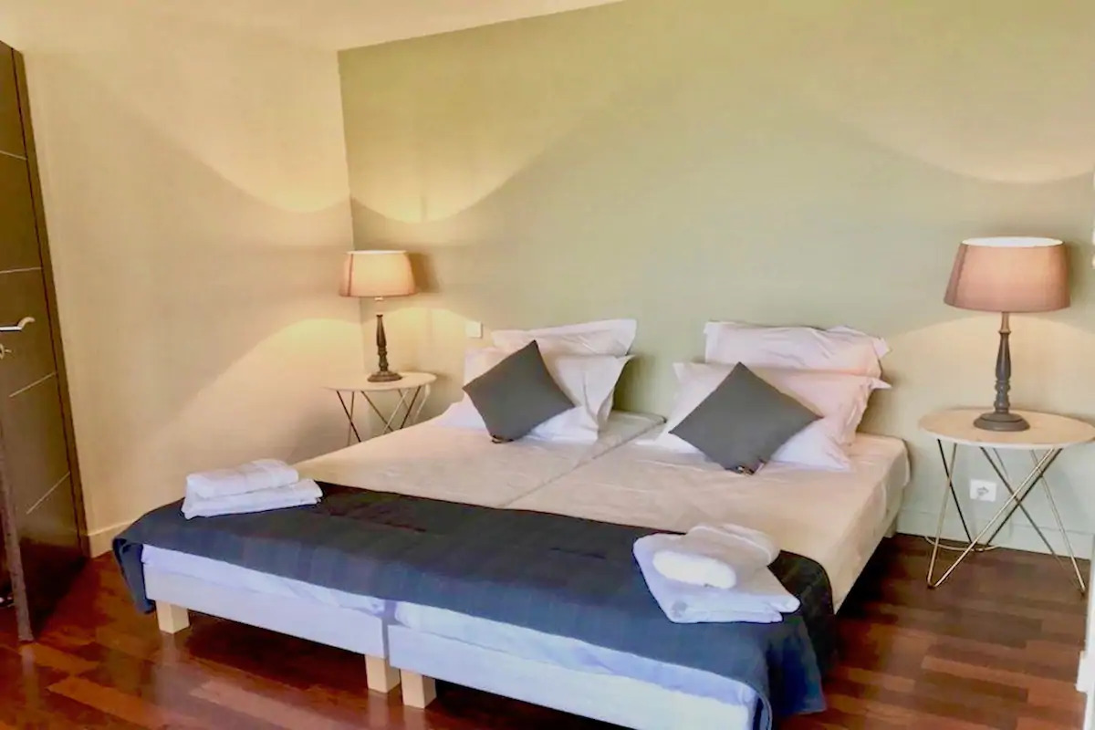 De nombreux transats. Une douche extérieure (chaude / froide) près de la piscine. Un grand salon de jardin + un coin salon et salon. La literie est neuve et de grande qualité, composée de 3 lits Queen Size (160 * 200) + 3 lits simples en 90 * 200 chacun + un canapé lit pour 2 personnes.