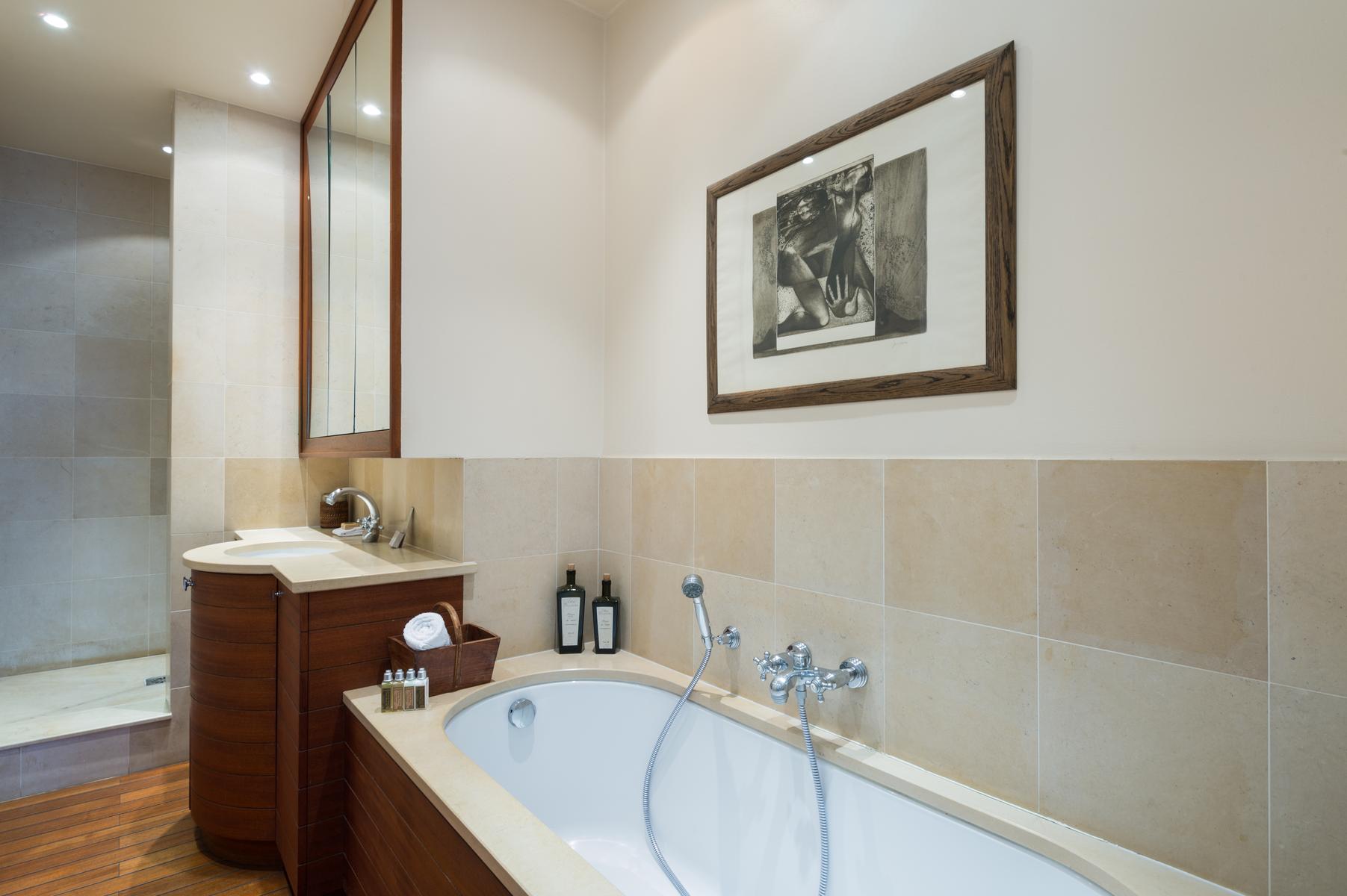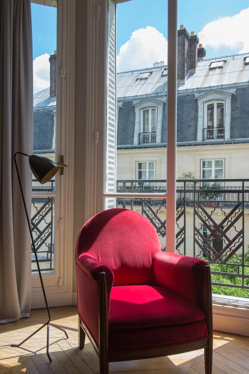 Proche de l’autre côté de la Seine et des commerces de La Défense, cette maison neuilly est paisible et calme. En entrant au quatrième étage, vous trouverez le salon sur la gauche – avec des portes-fenêtres, de grandes bibliothèques et un groupe de canapés gris. Un bureau contemporain est posé sur le parquet, et à droite, la cuisine a un aspect champêtre, avec des carreaux au sol et une table à manger en bois.