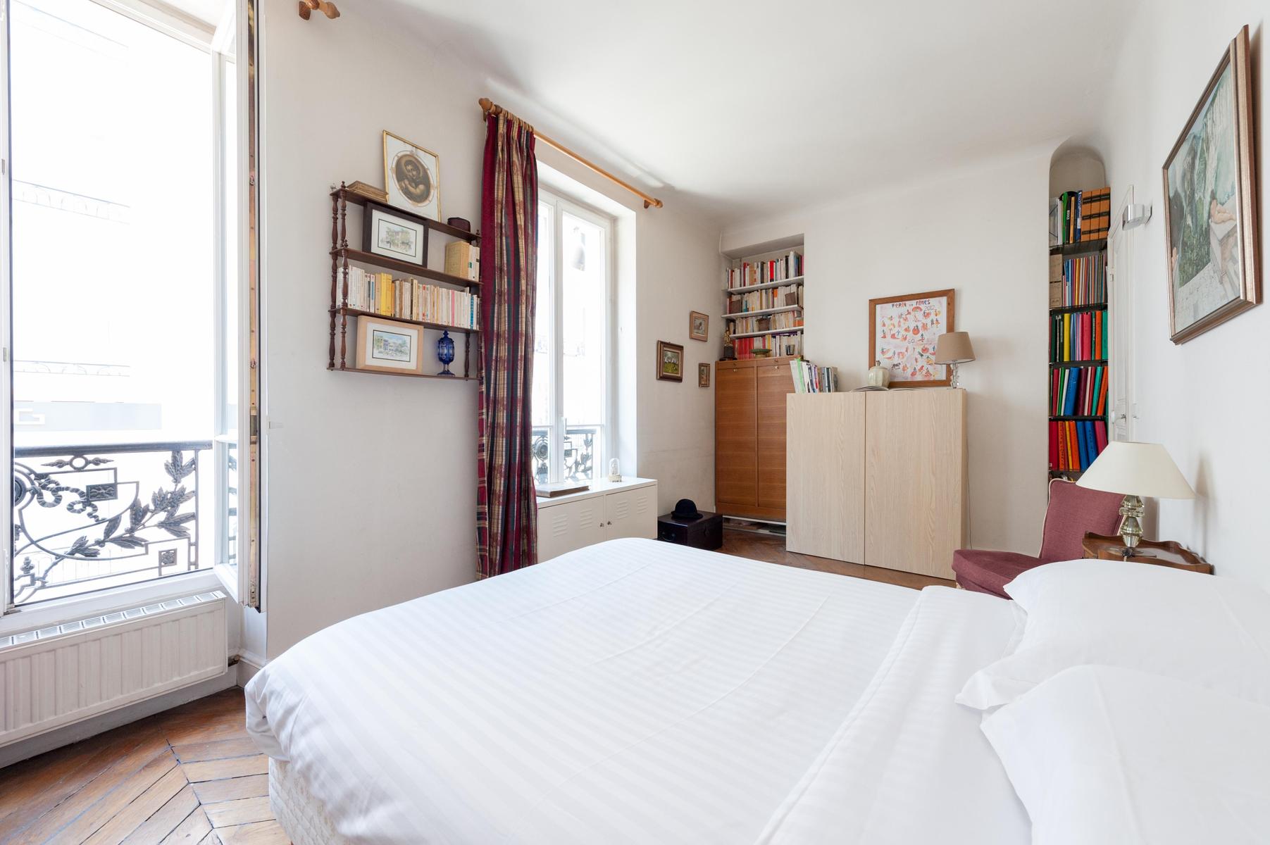 Versez-vous dans l’avenue de la République, un appartement aussi spacieux qu’il est beau. Il y a un lustre délicat dans cette maison, avec ses rideaux de soie brute, ses parquets d’origine et ses bois anciens, et une glaçure dorée aux bouddhas qui s’assoient si bien sur les étagères. Le Canal Saint-Martin est presque à votre porte, alors quand le soleil se lève, préparez un pique-nique et rejoignez le reste de Paris sur ses rives. Ou bien, allez de bar en café jusqu’à ce que vous atteigniez la grandeur du Marais, un endroit que vos hôtes aiment beaucoup