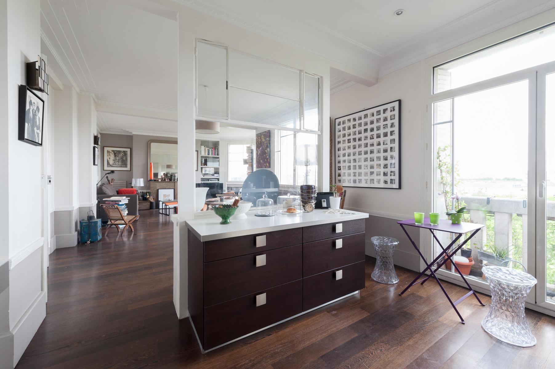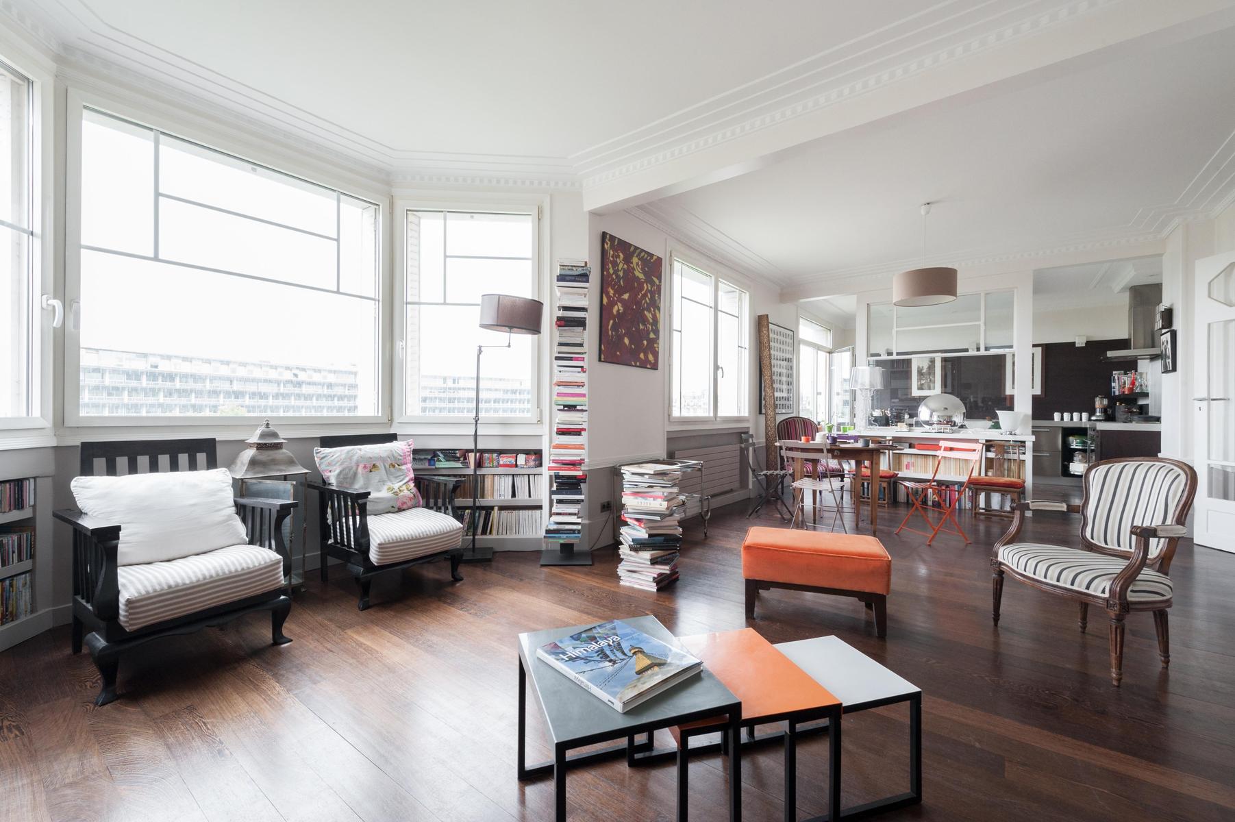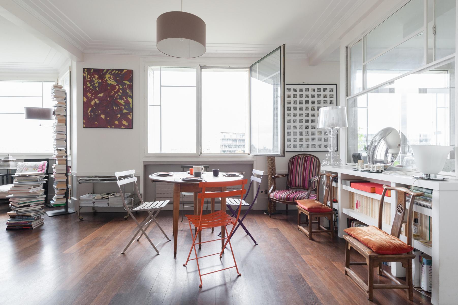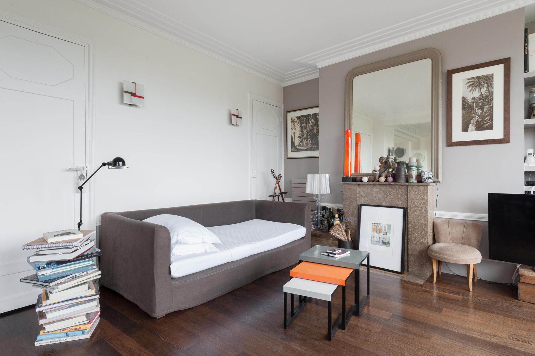 Il n’y a pas d’endroit à Paris plus reconnaissable que la Tour Eiffel – à proximité des musées et galeries les plus populaires de la ville. Et vous êtes en plein dedans, donc les objets dignes d'être exposés à l'intérieur de l'avenue de Suffren ne devraient pas surprendre. Même les ornements et les œuvres d’art les plus délicats sont mis en valeur contre les murs bicolores, et les meubles contemporains – certains assourdis, d’autres un choc d’orange – sont tout aussi bien disposés. En compétition avec leur voisin, les tours de livres se disputent votre attention – qui pourrait autrement être transpercé par les vues des fenêtres du Sacré Coeur et du bâtiment de l’UNESCO.