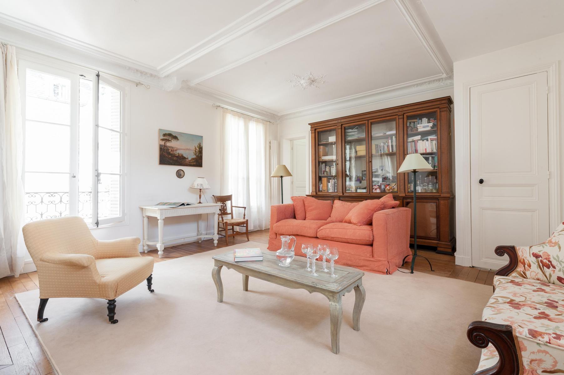 Le sens du style raffiné de l’Avenue de Tourville signifie qu’il y a des éléments d’époque à chaque tournant – la table basse du salon repose sur des pieds Queen Anne, s’incurvant en ligne avec le canapé imprimé chintz. Le manteau de cheminée blanc moulé met en scène le thé de la salle de dessin, surplombé par le paysage pastoral peint à l’huile traditionnelle, et même les verres à vin – dont les tiges sont des piliers de la déesse grecque – sont opulents. Si vous souhaitez faire un tour en ville, pouvons-nous vous recommander une promenade le long des rives de la Seine voisine ? Revenez à la maison par la rue Cler pour goûter à des boutiques avec beaucoup de caractère et d’héritage, avant de retourner s’allonger dans l’un des luxueux canapés.