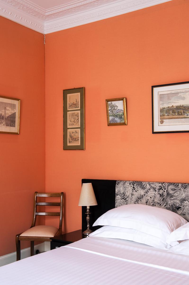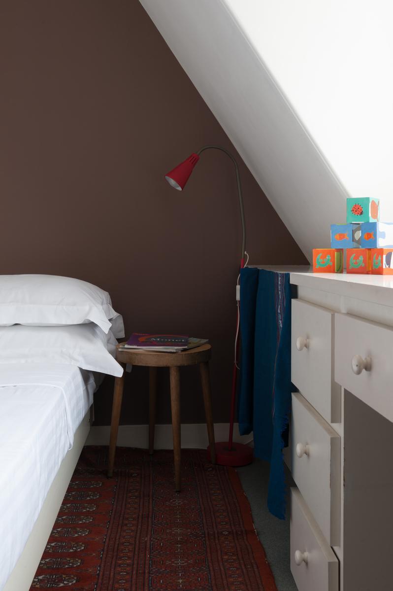 Juste à côté du salon, vous trouverez quatre chambres audacieuses et lumineuses. La chambre des maîtres a des murs en terre cuite et un tapis turquoise, et il y a un lustre extravagant et un miroir décoratif au sommet de la cheminée. La jolie chambre à deux lits jumeaux est brossée de tons de pêche et de rose pastel, et les salles de bains sont tout aussi audacieuses. L’une est encadrée de murs orange-brûlé, une autre est bordée de tuiles rouge vif, et la salle de bains est équipée d’une baignoire peinte en couleur pâle pour des soirées de rêve.