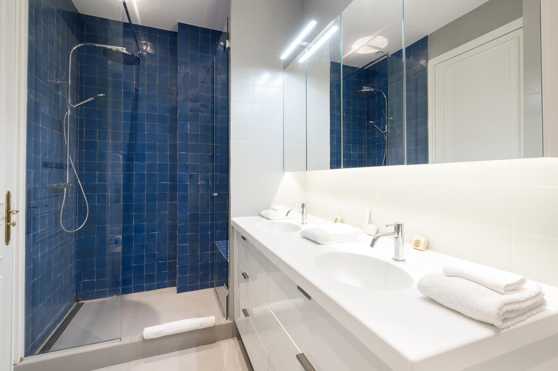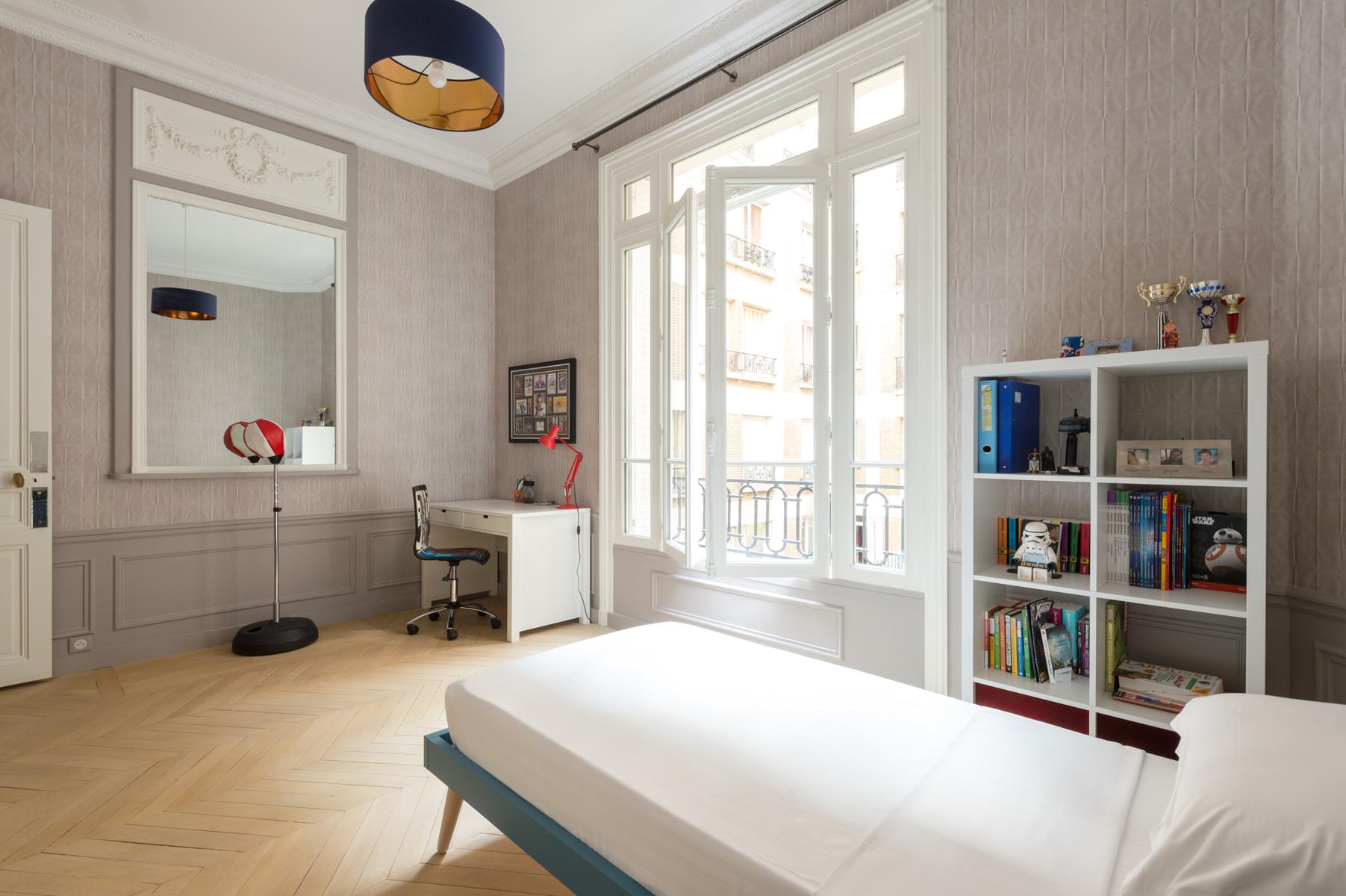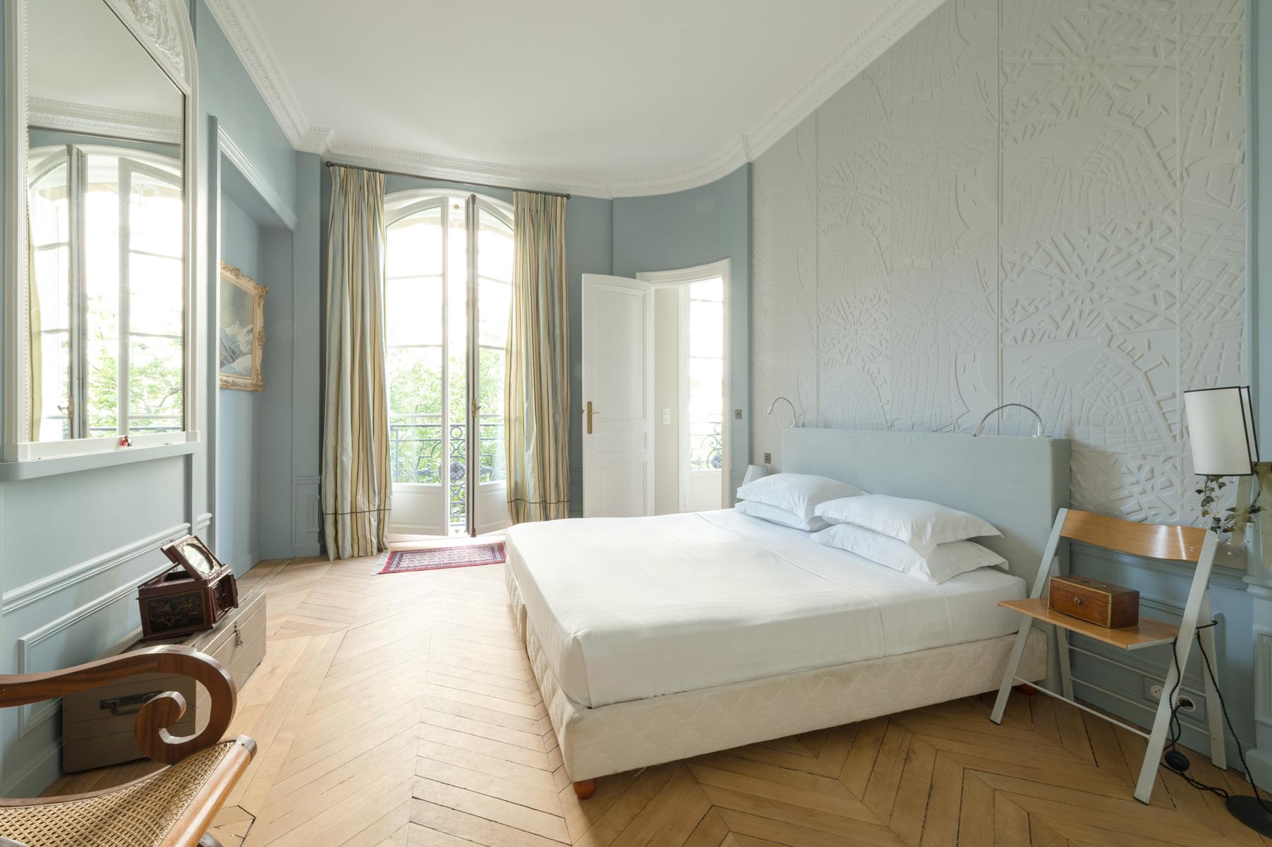 Avenue Frédéric le Play est une maison de quatre chambres, trois salles de bains dans la Tour Eiffel. Cette maison dispose de deux salons – tous deux avec de beaux détails originaux et un mobilier contemporain audacieux, dont l’un avec vue sur la Tour Eiffel – et d’une salle à manger séparée et très élégante. La chambre principale est un peu plus sereine – une jolie chambre bleue et blanche avec un lit king size et une élégante salle de bains attenante. Vous êtes incroyablement central ici, et vous trouverez à proximité certains des plus beaux sites de la ville (le Champ de Mars, la Tour Eiffel, les Jardins du Trocadéro). Et ce n’est qu’à trois minutes à pied de la station de métro École Militaire.