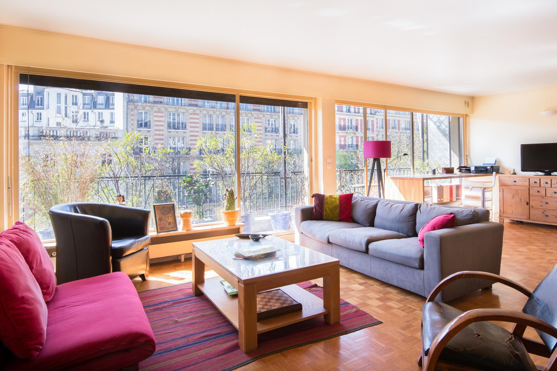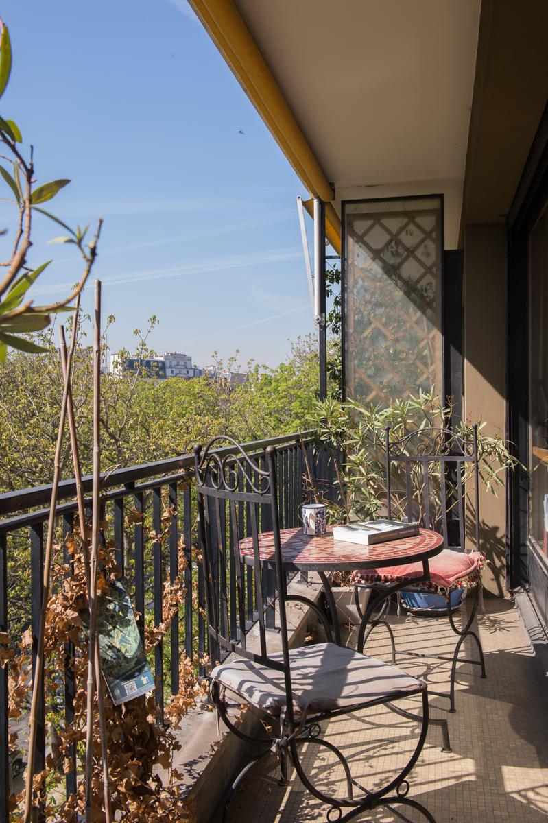 Vous entrez dans le Boulevard Arago, au quatrième étage d’un immeuble des années 70, dans un espace de vie à aire ouverte. La combinaison de fenêtres sur toute la hauteur, de murs en magnolia et de planchers de bois verni donne à cette maison un éclat chaleureux. Sur le balcon, qui s’étend sur toute la longueur de l’appartement, vous pouvez prendre le petit-déjeuner al fresco.