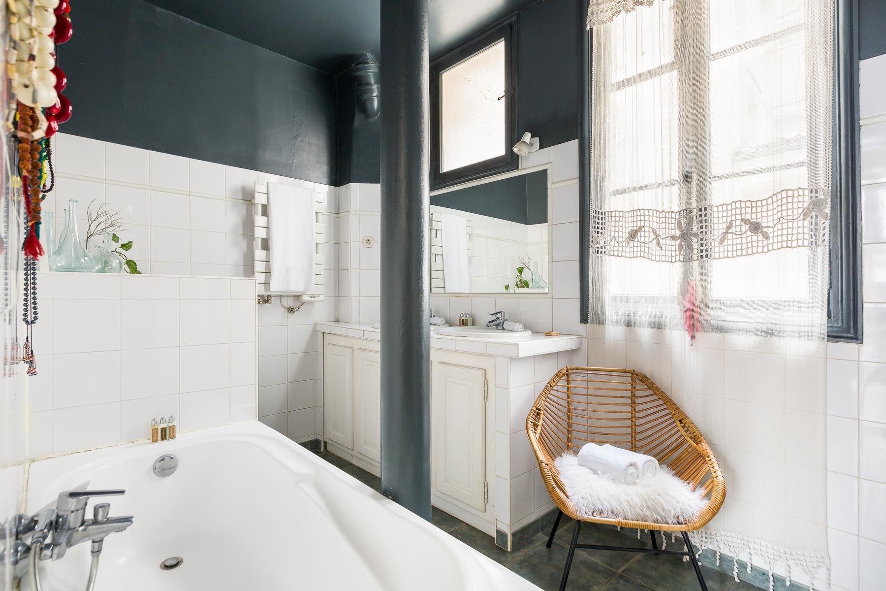 Boulevard de Sébastopol III est une maison d’une chambre à coucher, une salle de bain dans Le Marais. Les espaces de vie classiques et élégants de cette maison ont un mélange vivant de design et de meubles anciens et de nombreux accessoires vibrants – vous remarquerez tout, des tapis et coussins colorés aux œuvres d’art contemporain. La chambre des maîtres avec salle de bains est tout aussi caractérielle, pleine de détails originaux et de pièces vintage inhabituelles. Cette zone centrale est parsemée de brasseries et de boutiques, et vous êtes à quelques pas du Louvre et du Jardin des Tuileries. C’est à quatre minutes de marche d’ici jusqu’à la station de métro la plus proche, Châtelet.