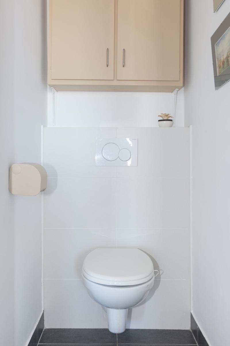 Quai de Grenelle II a une esthétique agréable, avec des tons complémentaires et des meubles élégants. Mais sa caractéristique la plus charmante est sa collection de peintures frappantes. De la table de la cuisine, on peut voir des abstracts brillants, tandis qu’une large pièce paysagère décore le salon, où des sièges de baignoire en cuir taupe se dressent à côté de fauteuils à dossier haut. Et à gauche des deux, vous trouverez le pot-pourri d’œuvres d’art contemporain et traditionnel de la chambre double, et la commode ornée du maître – au-delà des fenêtres orientées vers l’ouest des deux, se trouvent certains des plus hauts grimpeurs de Paris.