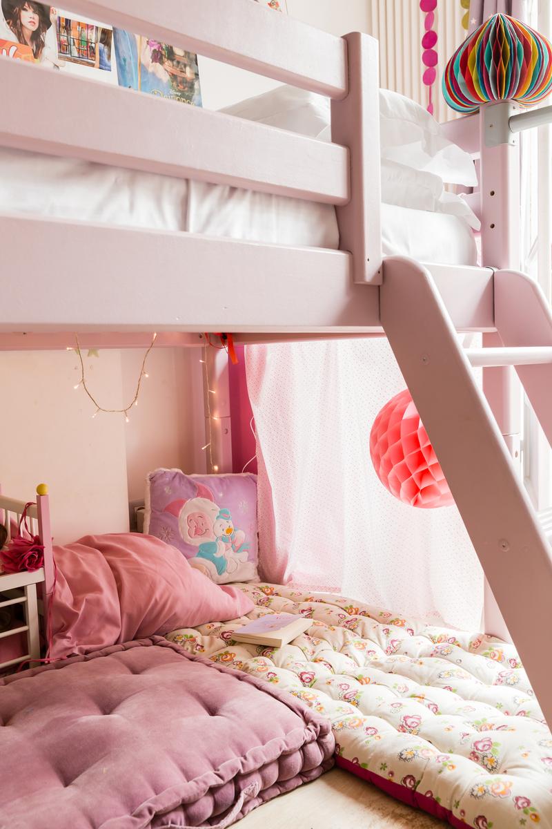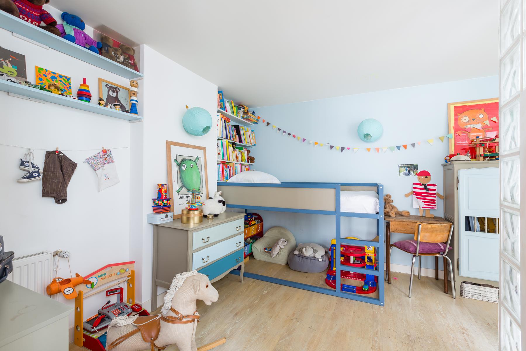 Les délices de la rue Bessières occupent quatre étages. Le premier, au niveau de la rue, est un salon ouvert, avec une cuisine et une table à manger près de l’entrée, et un coin salon plus loin derrière où des canapés de crème douce font face à une cheminée sculptée. En haut de l’escalier en bois à droite se trouve l’étage auquel les trois enfants de vos hôtes ont prétendu. Il y a une salle de bain droit devant (avec un lavabo bas, surtout pour les plus petits), et au bout du couloir à gauche se trouvent trois chambres colorées et une salle de divertissement carrelé au pastel, pleine de jouets et d’endroits pour jouer, avec une terrasse à travers la porte du fond.