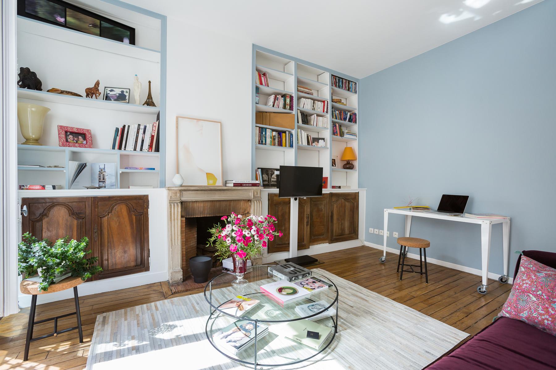 Située dans un bâtiment qui remonte à l’Exposition Universelle de 1900, la rue Boissonade est fraîche et colorée. À l’intérieur, la cuisine est équipée de planchers en bois et d’armoires laquées cramoisi. A droite, vous trouverez une table rétro pour huit personnes dans le salon, et juste au-delà, un canapé en velours surplombé par l’art moderne.
