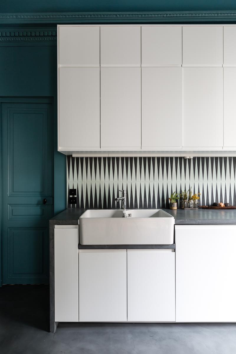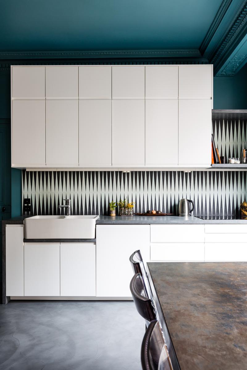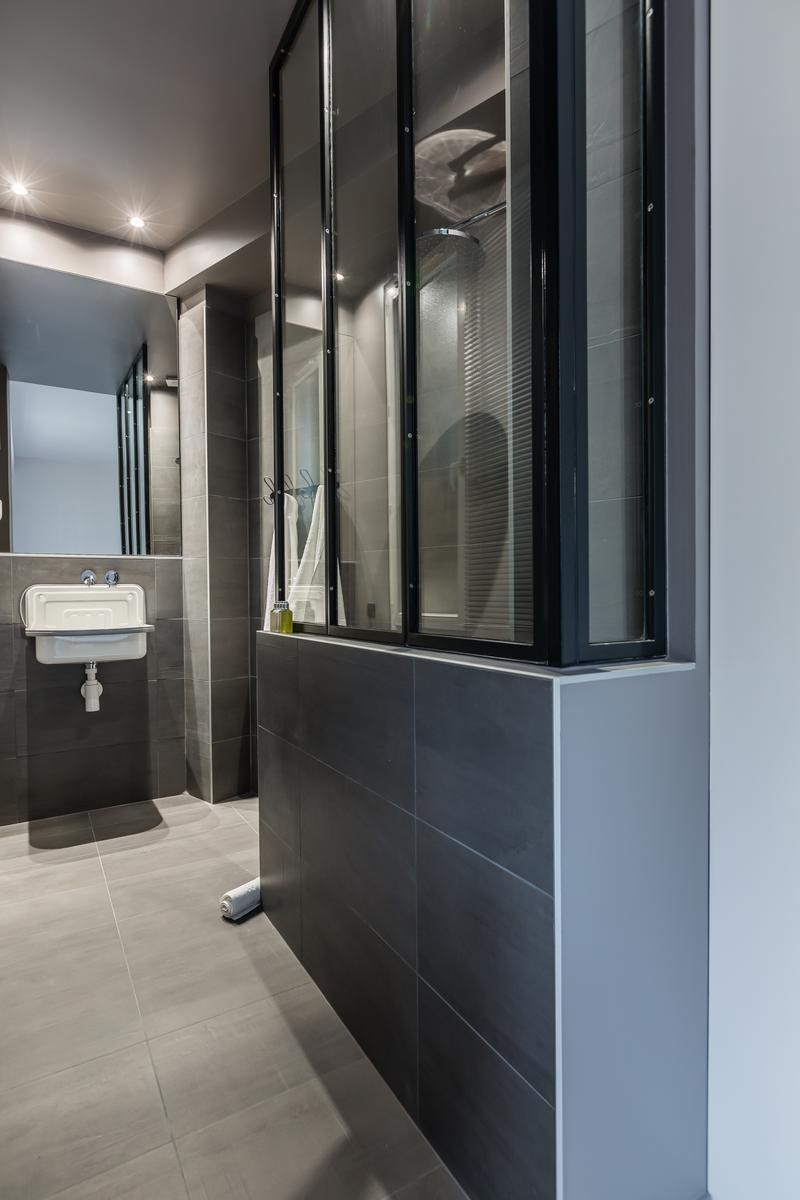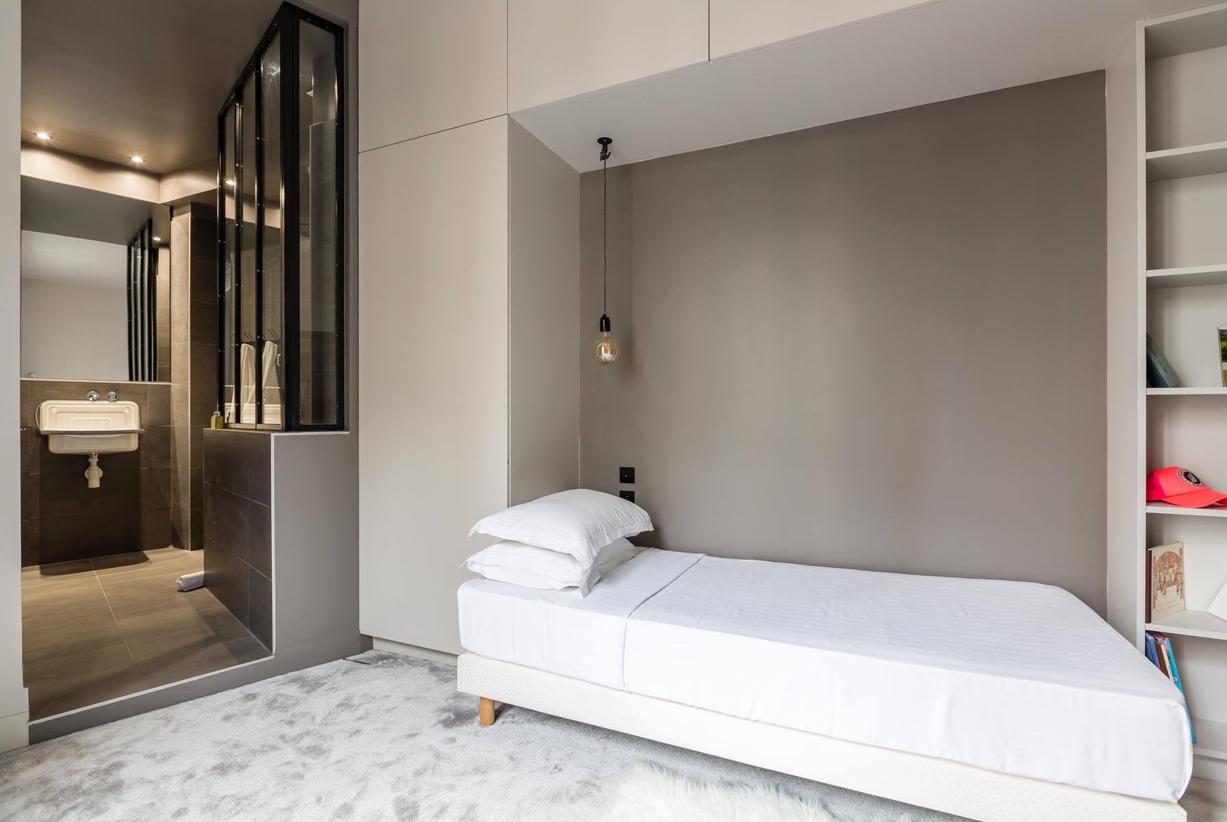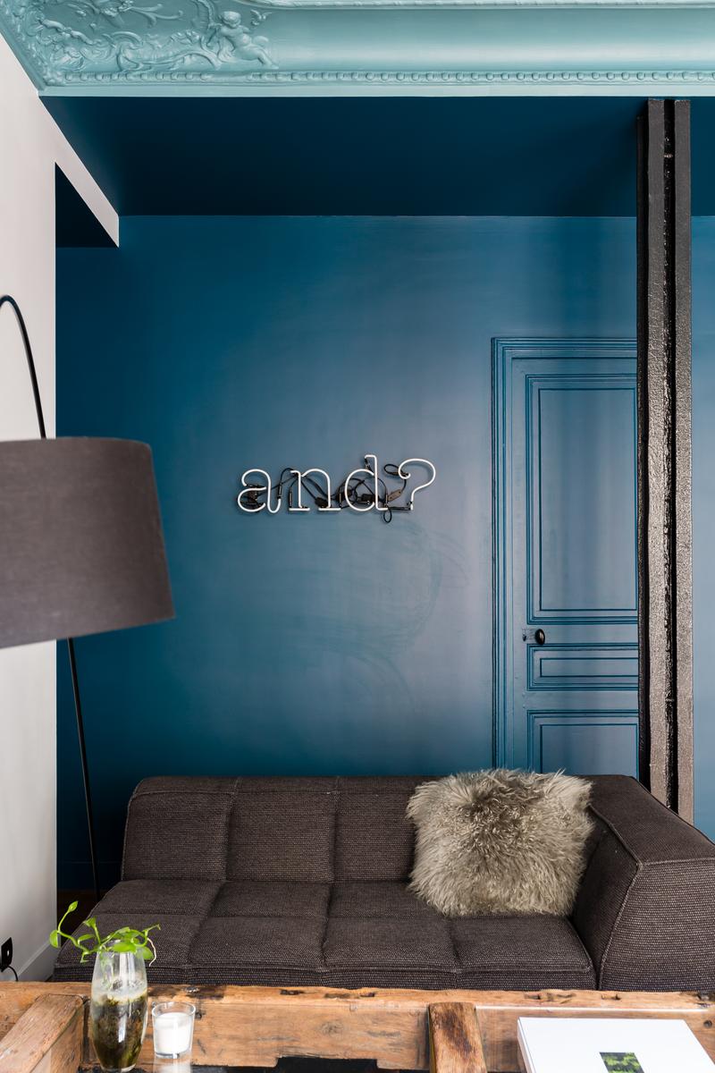 Rue Brunel est un appartement de trois chambres, deux salles de bains à Arc de Triomphe – Champs-Elysées. Le salon principal combine le salon, la salle à manger et la cuisine et offre un mélange de styles traditionnels et contemporains. Il y a un parquet impeccable, des poutres d’acier donnant un aspect industriel, des lampes suspendues sur des plans de travail de cuisine en béton poli et un plafond moulé peint d’un bleu éclatant. A l’extérieur de la Place Saint-Ferdinand, cherchez des parisiens chics qui stationnent des moteurs anciens et s’arrêtent pour surveiller les gens autour d’un café. L’impressionnant Arc de Triomphe et les boutiques de designers de l’avenue des Champs-Elysées sont à 15 minutes à pied au sud-est. Si vous vous dirigez vers le sud-ouest, vous trouverez la vaste étendue verte du Bois de Boulogne. La station de métro Porte Maillot est à cinq minutes à pied.