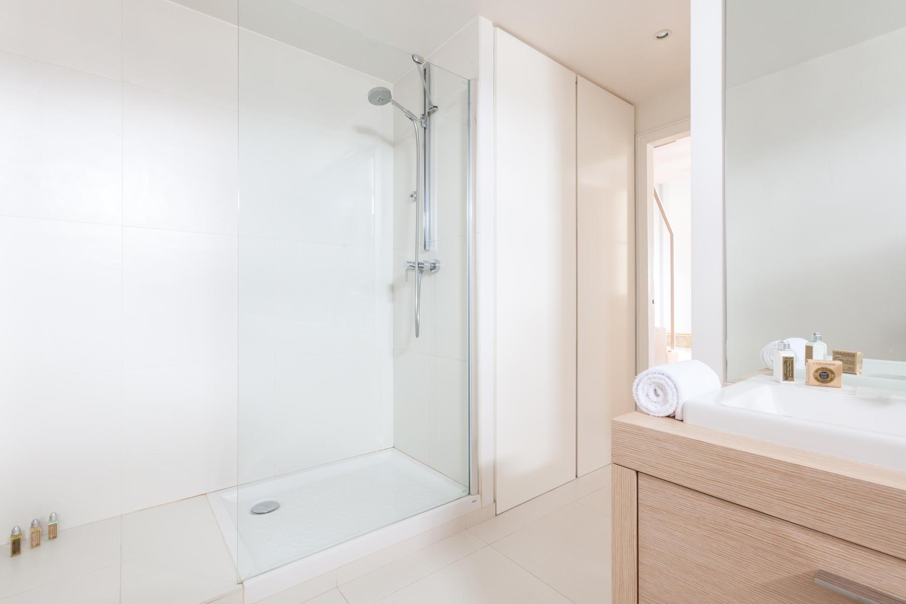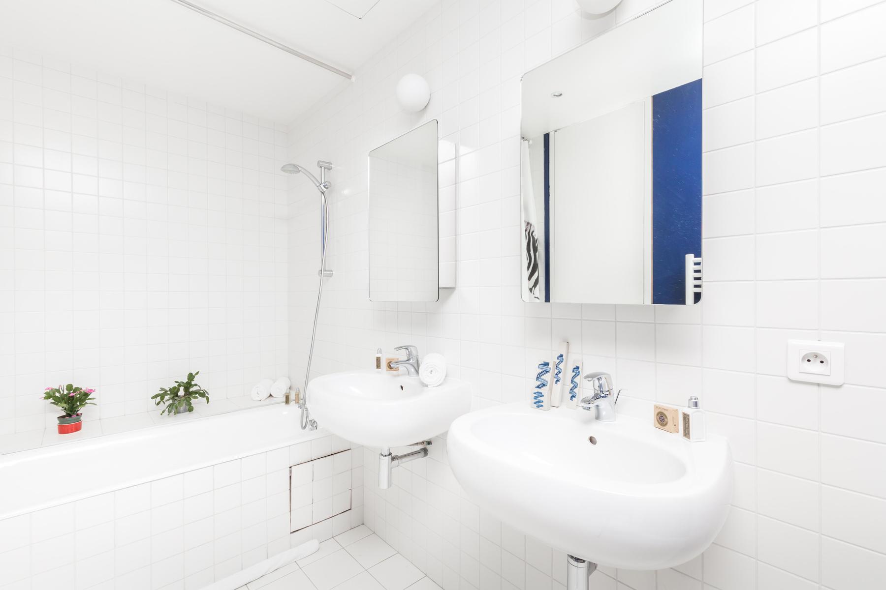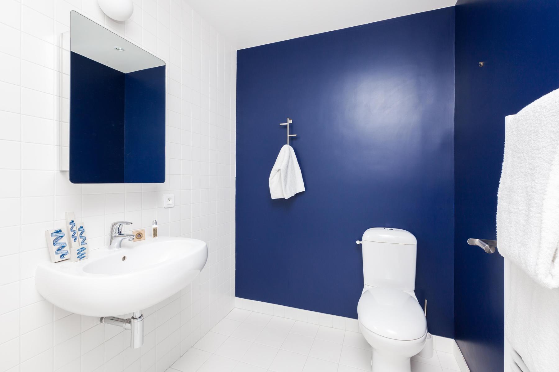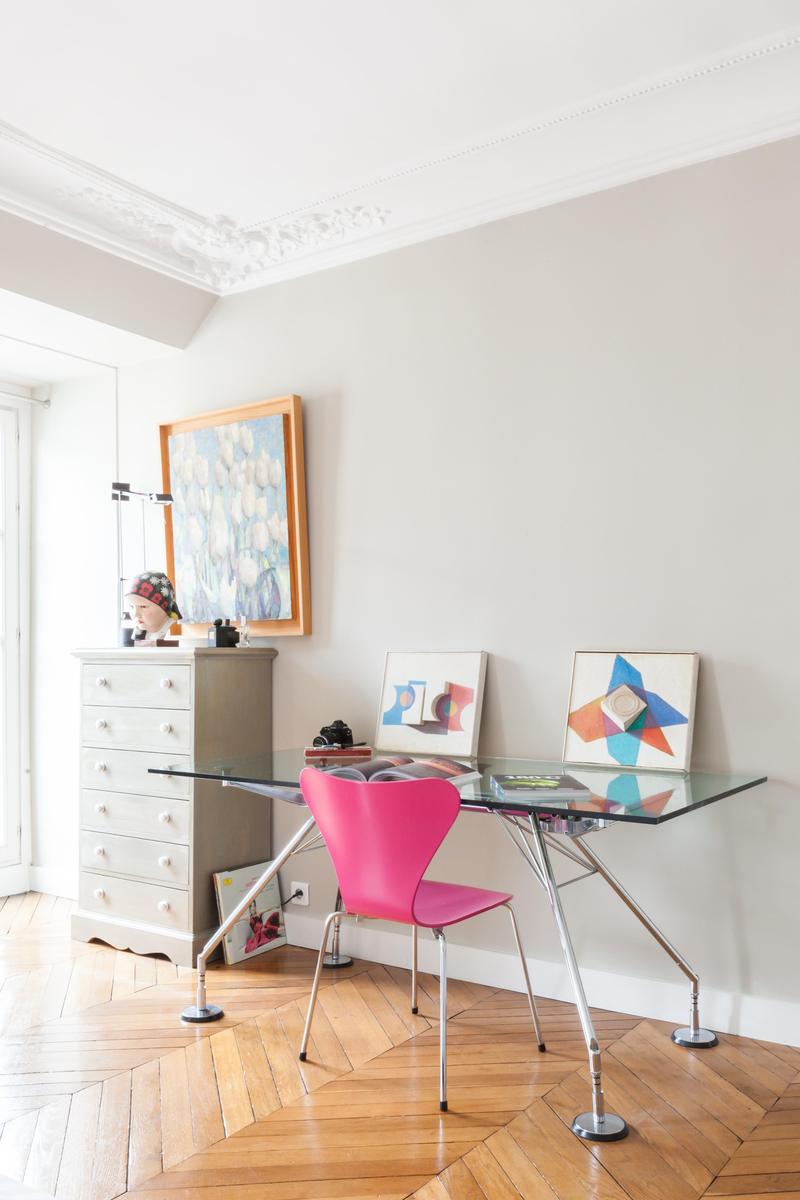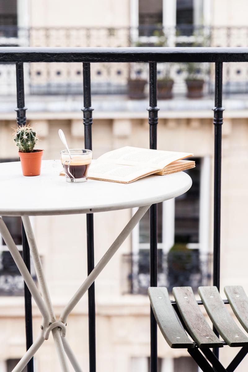 La rue Chaptal est une trouvaille précieuse. Ses pièces brillent de violet améthyste, de bois ambré et de murs d’un blanc nacré. Mais un bijou n’est rien en soi, et celui-ci est installé sur les deux étages supérieurs d’un immeuble essentiellement parisien, avec vue sur le Sacré Coeur et la tour Eiffel. Les couches délicatement contradictoires et les imprimés du canapé d’angle captivent, tandis que les fauteuils aux finitions métalliques éblouissent. Si vous osez l’absinthe émeraude sur la place du Tertre, laissez vos jambes vous porter jusqu’aux marches du Sacré Coeur, où tout Paris s’étale devant vous – des lumières dorées scintillantes sur un ciel de velours noir