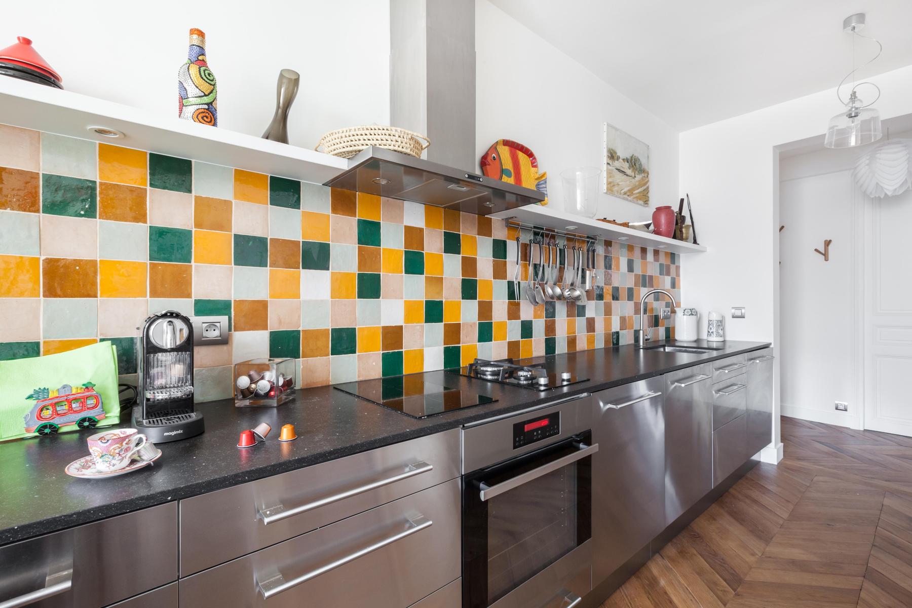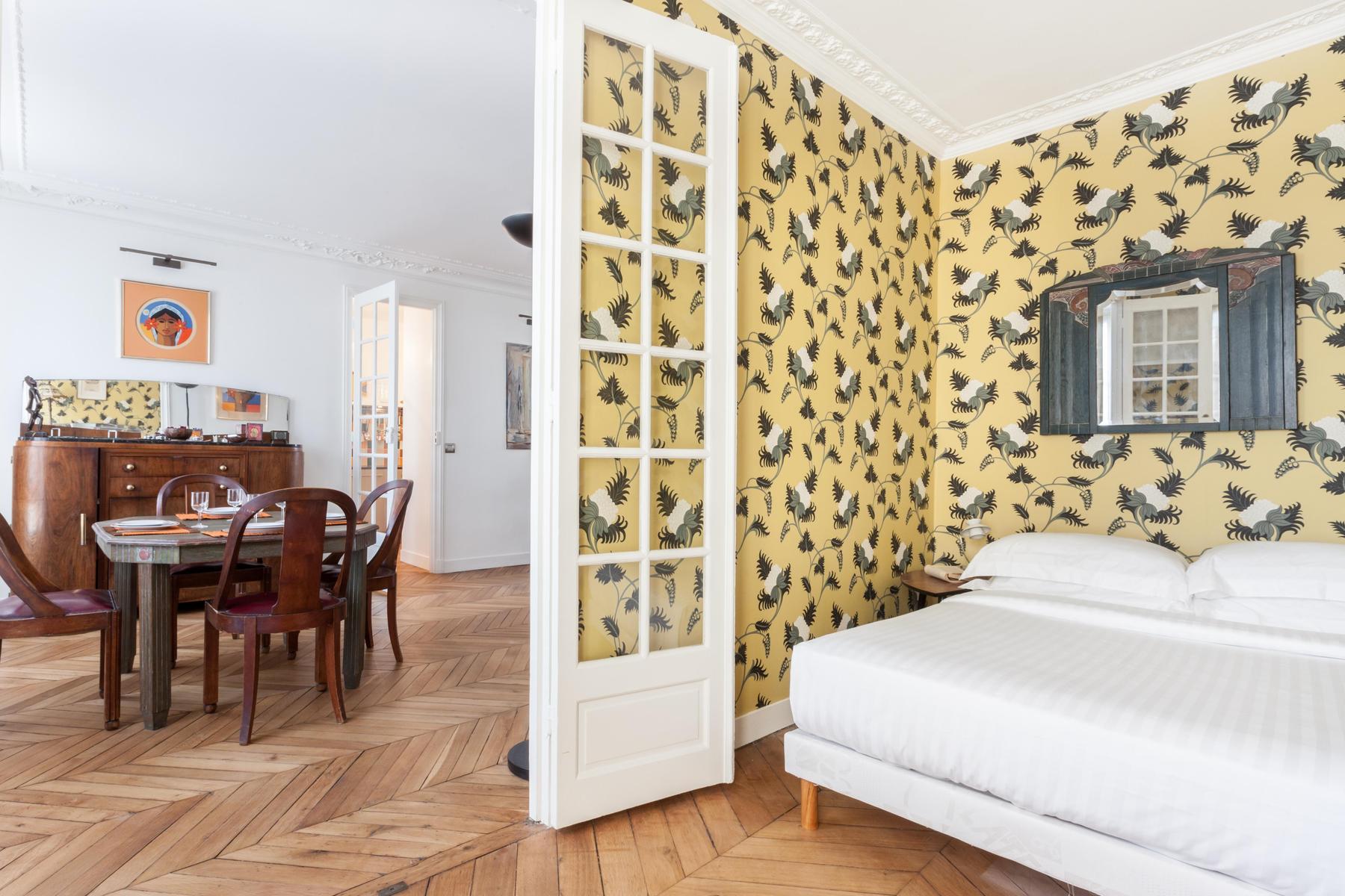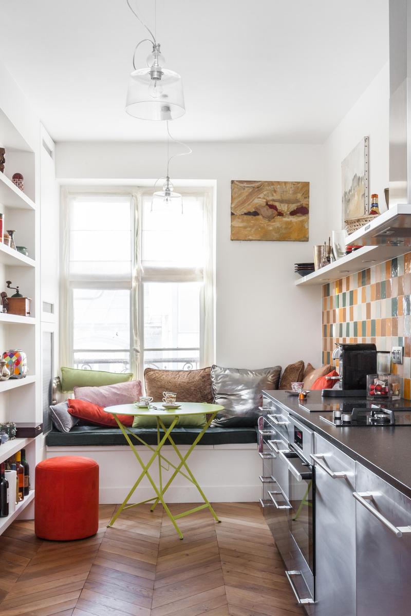 When you set out across crystal oceans, who knew you’d arrive where the breeze is balmy and flowers bloom bright whether it’s December or July. Rue d’Amsterdam is a cheerful hideaway on the fourth floor, where sprawling rooms are filled with luminous art, shelves of books and colourful objets that have travelled from afar. And Batignolles is an equally dynamic area of the city, a walk from the wistful alleyways of Montmartre and close to the cafés that cluster around Gare Saint-Lazare. But don’t stray too far –in this apartment all the glories of the world are spread before you in dazzling, infinite array.