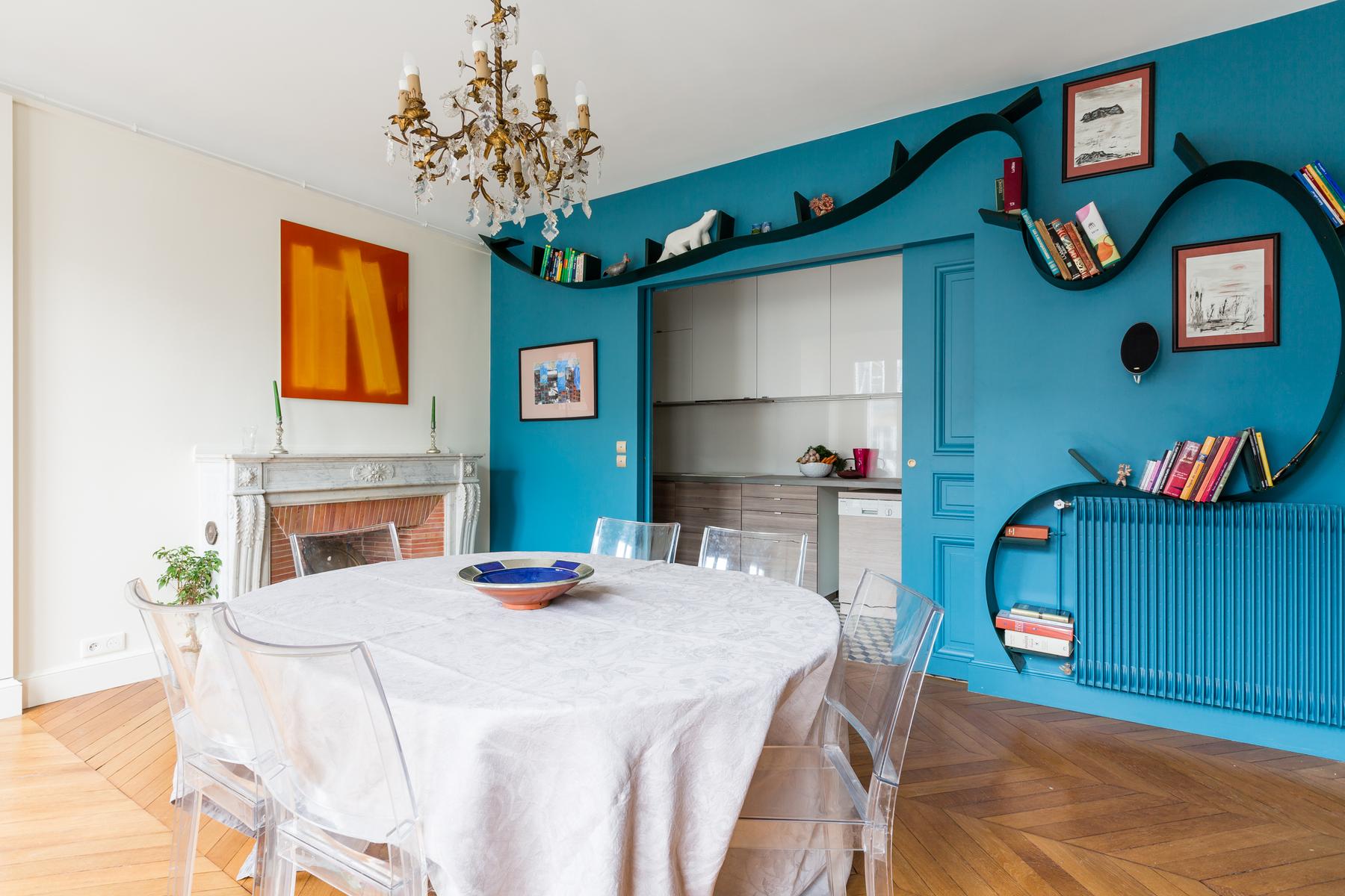La rue de Bourgogne III est une maison de quatre chambres à coucher, trois salles de bains à Saint-Germain-des-Prés. Bien que classique, avec de nombreux détails traditionnels – plafonds décoratifs, planchers de bois à chevrons et pièces antiques, cette maison est pleine de touches vibrantes aussi, des traits de couleurs vives aux œuvres d’art contemporain. Ici, à Saint-Germain-des-Prés, vous êtes à proximité de certains des endroits les plus visités de la ville, comme les Invalides, le Grand Palais et, un peu plus loin, le Louvre. Cette partie de Paris est également parsemée de boutiques haut de gamme et de brasseries, et il n’y a que quatre minutes à pied d’ici jusqu’à la station de métro la plus proche, l’Assemblée Nationale.
