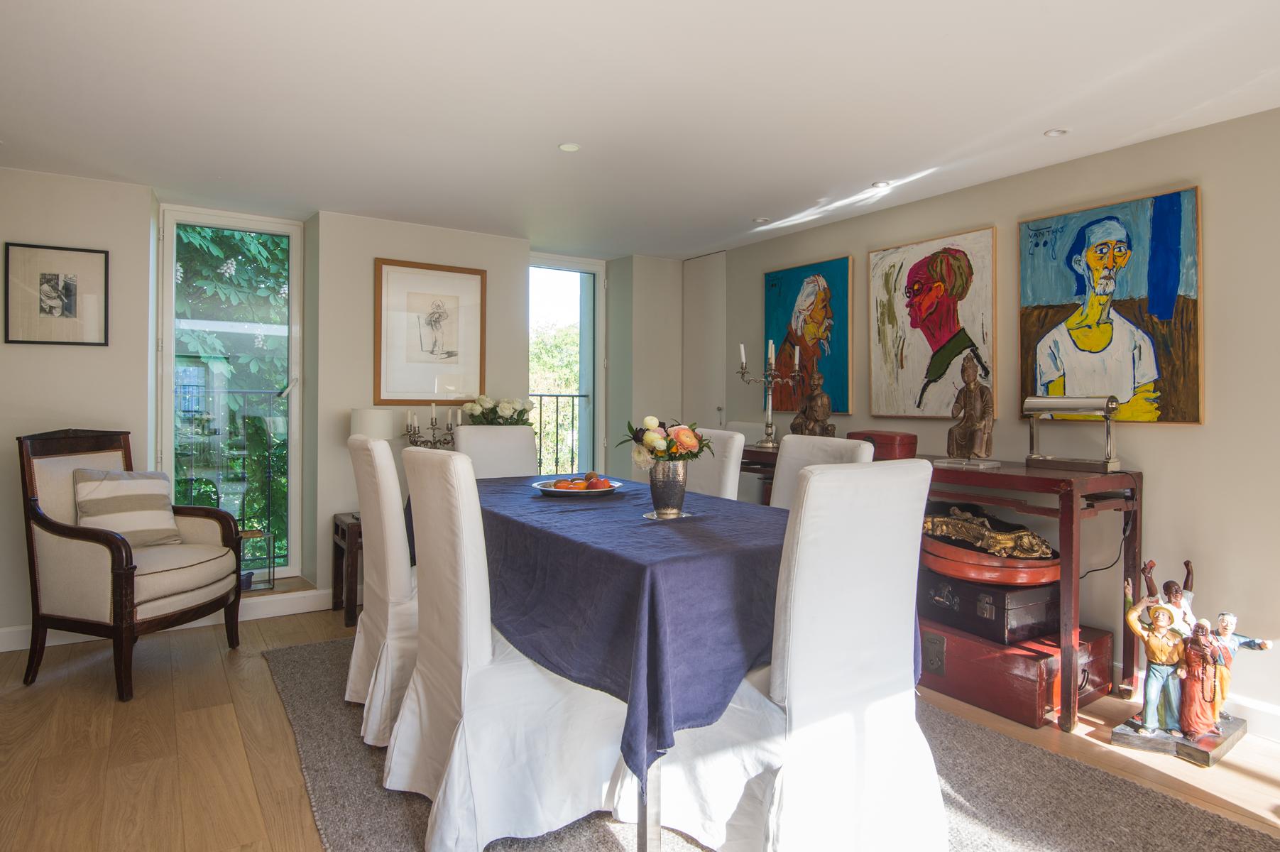 La rue de Bourgogne IV est une maison de deux chambres, deux salles de bains à Saint-Germain-des-Prés. De conception contemporaine, éclairée par un puits de lumière frappant, l’espace de vie ouvert de cette maison est meublé d’antiquités vraiment uniques, et abrite également de nombreux tableaux et livres. Les chambres sont plus simplement meublées, mais toujours pleines de choses intrigantes. Situé sur l’élégante rive gauche, vous êtes à quelques pas des plus beaux musées de la ville. Vous trouverez de nombreuses boutiques et brasseries à proximité, et ce n’est qu’à quatre minutes à pied de la station de métro la plus proche, Varenne.