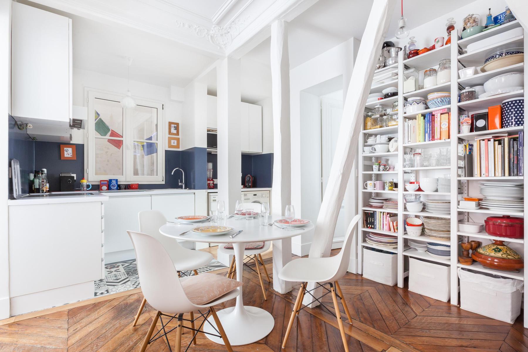 Un mélange enchanteur de styles définit l’esthétique de cet espace lumineux – des éléments d’époque côtoient les lampes en étain vintage. Des bibelots comme un masque tribal, un capteur de rêves et des assiettes en porcelaine peintes racontent des histoires de voyages exotiques, mais vos propres aventures peuvent se dérouler juste après la porte de cette maison. Vous êtes à deux pas de l’élégante et avant-gardiste rive gauche, célèbre pour ses magasins branchés et ses musées bien conservés. Prenez une gorgée de café surplombant la Seine, puis rentrez chez vous dans le calme de la pâle chambre des maîtres.