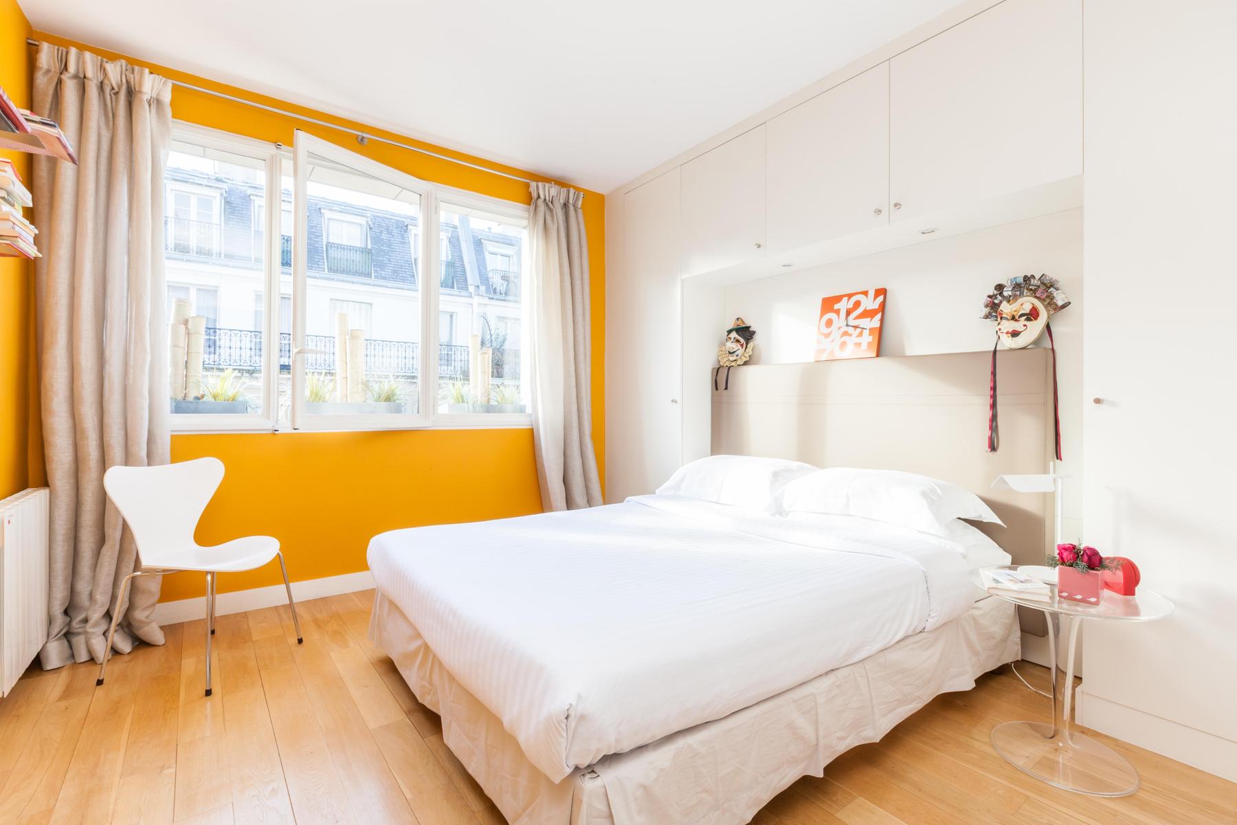 Besoin d’un réveil ? Commencez votre journée dans la rue de la Faisanderie II, une maison lumineuse, moderne et rafraîchissante. Votre hôtesse a passé un certain nombre d’années à New York, et cette maison fusionne tout ce qu’il y a de mieux sur la Grande Pomme avec un charme parisien particulier – des blocs de couleurs, des dessins iconiques et des vues qui sont typiquement haussmanniens. Une palette d’agrumes traverse l’espace, des murs aux tables, des chaises aux œuvres d’art, avec des étagères de curiosités accrocheuses à admirer. Visitez les boutiques et cafés sophistiqués des Champs Elysées, ou rendez-vous à la Tour Eiffel, grimpez haut et buvez le tout en.