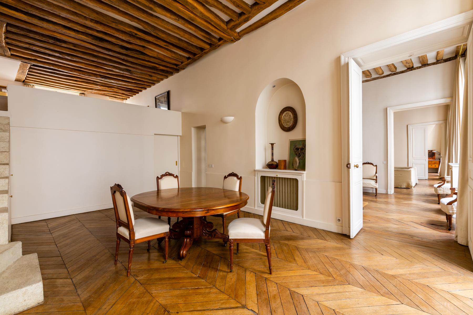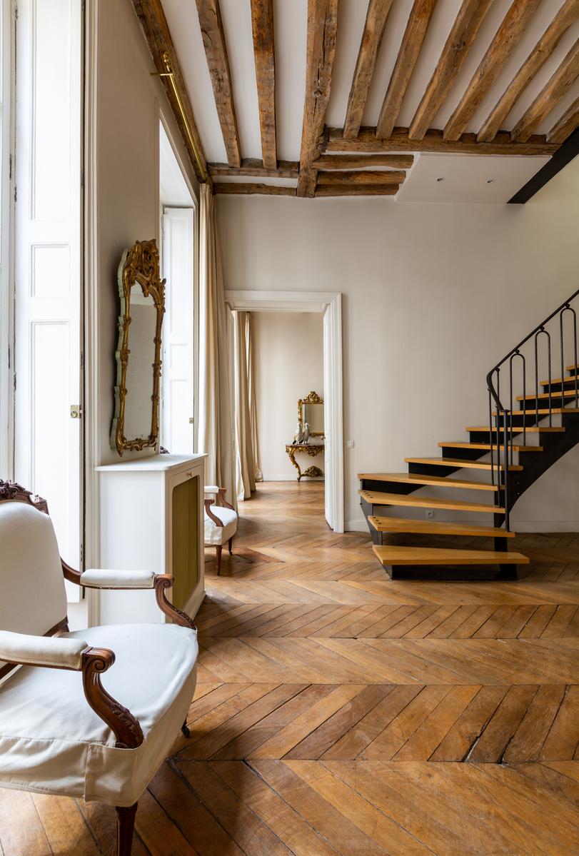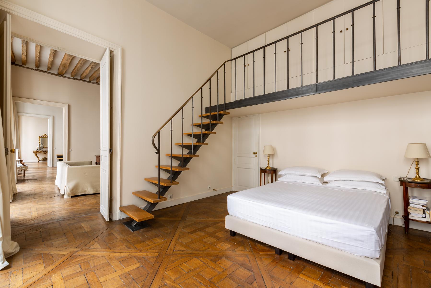 Rue de Louvois est une maison de quatre chambres à coucher, trois salles de bains à Louvre – Opéra. Parquet à chevrons, cheminées opulentes en marbre et plafonds à poutres apparentes ne sont que quelques-uns des détails originaux que vous remarquerez dans les espaces de vie de cette maison, meublés de belles antiquités et d’œuvres d’art classiques. La chambre principale, qui dispose d’un grand lit, se fait dans le même style frappant. L’emplacement est tout aussi impressionnant – vous êtes très central ici, à quelques pas du Jardin des Tuileries, du Louvre et du musée d’Orsay. Et ce n’est qu’à cinq minutes à pied de la station de métro la plus proche, Pyramides.