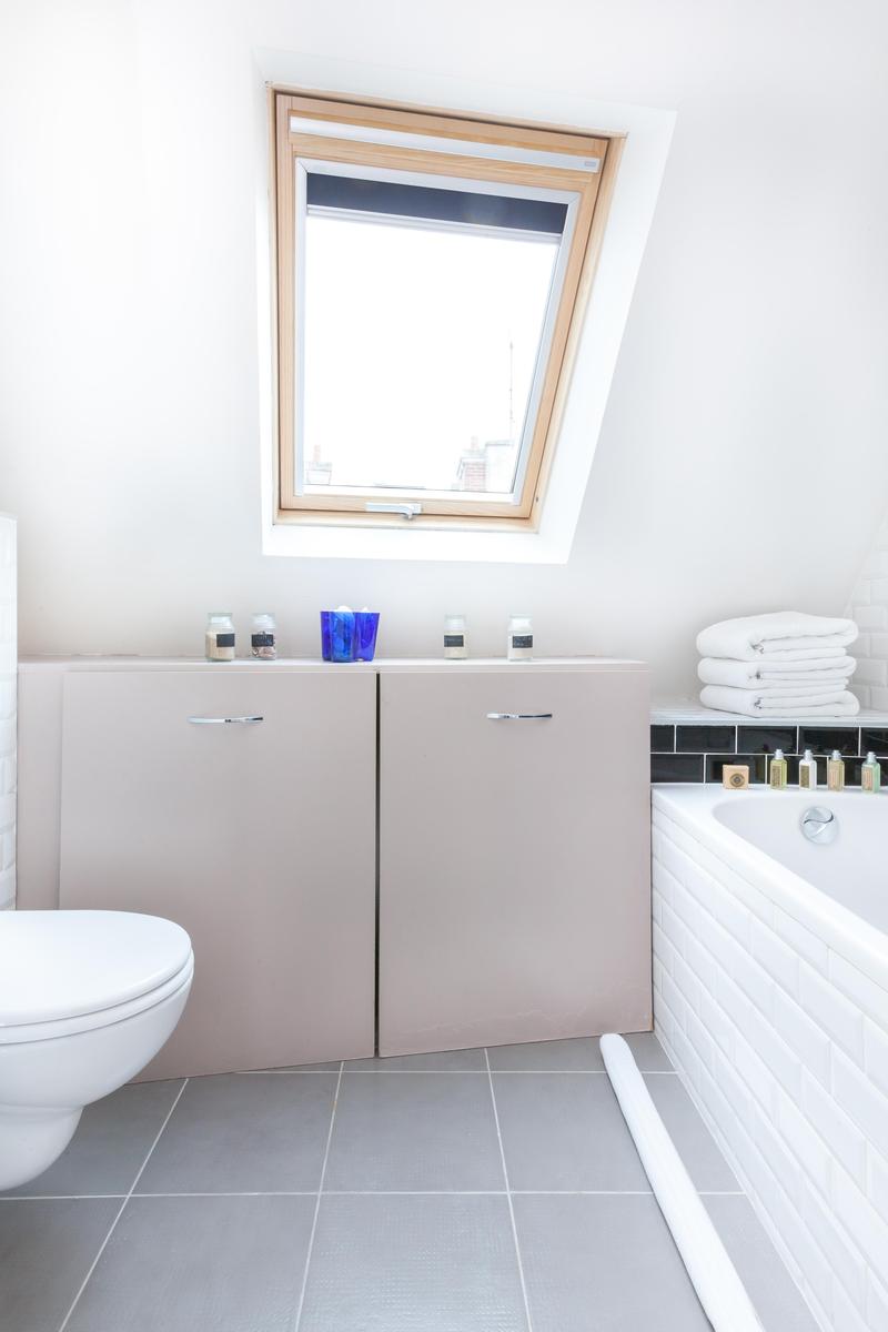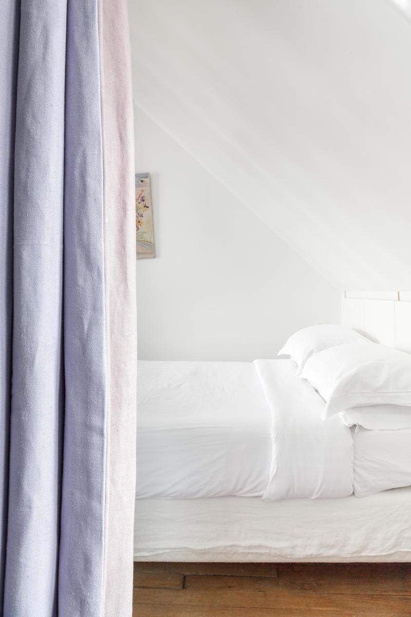 Peu sont les pièces où l’on peut voir le soleil se lever et se coucher, et la rue de Lyon profite pleinement de sa position privilégiée – tirer les jolis rideaux ornant ses nombreuses fenêtres et contempler le spectacle. Les murs exposés et les poutres révèlent l’héritage de cette maison, et la couleur argentée est accentuée par de petits éclats de magenta vif dans le salon. Les deux chambres sont douces comme une berceuse, avec peu de choses pour vous distraire des œuvres d’art pastel qui ornent les murs, et les deux salles de bains sont élégantes et contemporaines, leurs murs inclinés offrant une acoustique splendide pour rehausser votre aria du matin.