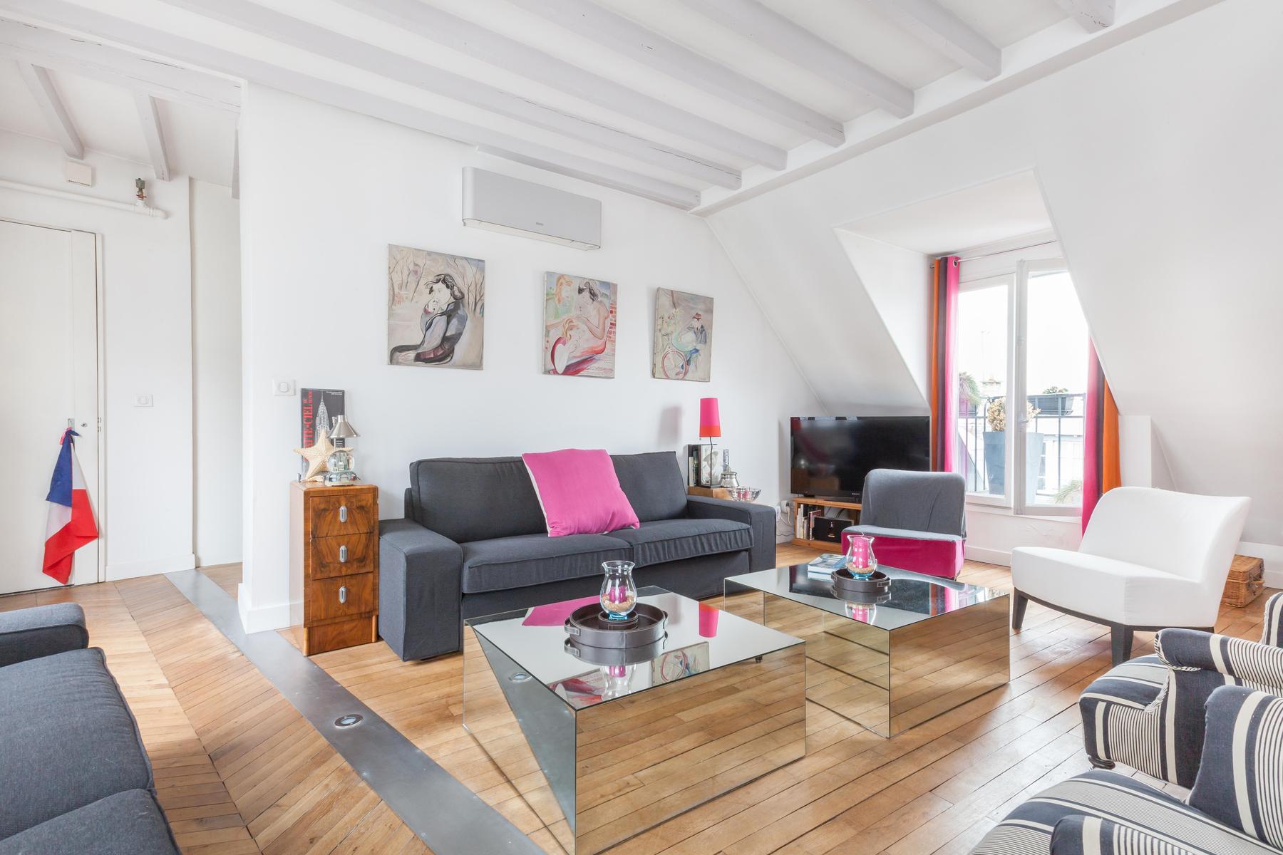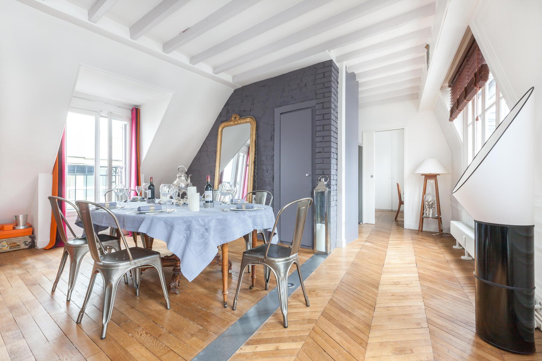 La rue de Lyon est une maison toujours à l’écoute. Une série de greniers aménagés forment une symphonie d’espace, et dans ces pièces, vous découvrirez des meubles à la mode et de l’art expressif. N’oubliez pas de visiter le Marché d’Aligre hebdomadaire, et de dîner sur la rue de la Roquette, puis, suivez les traces de vos hôtes avec une promenade jusqu’au Marais. Si vous le souhaitez, vous pouvez être debout dans le Jardin des Plantes dans les dix minutes qui suivent la fermeture de votre porte d’entrée, ou prendre La Promenade Plantée et savourer le chant des oiseaux