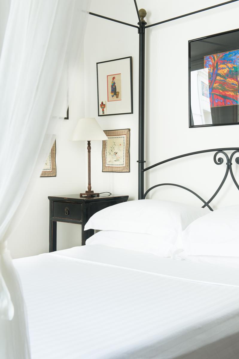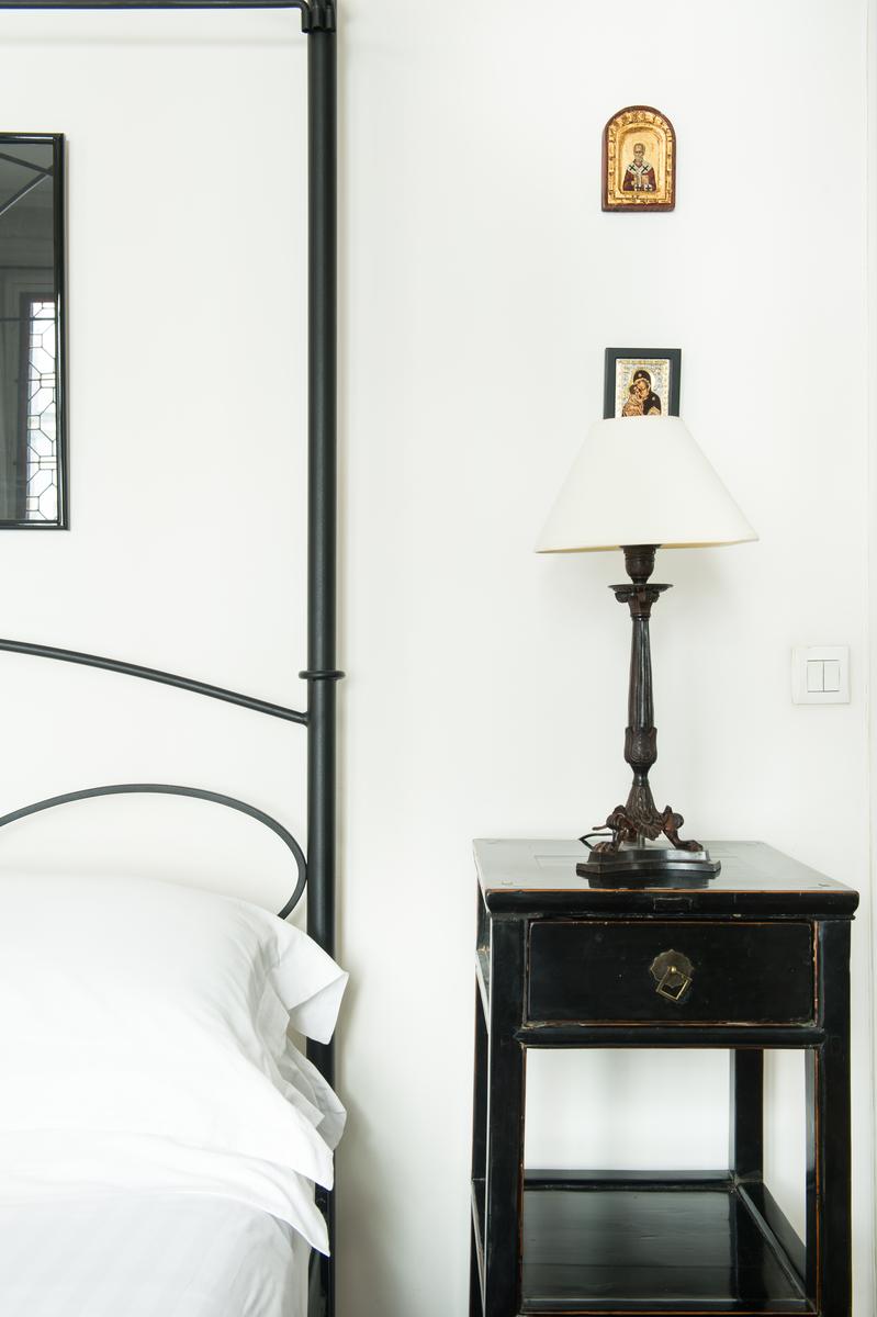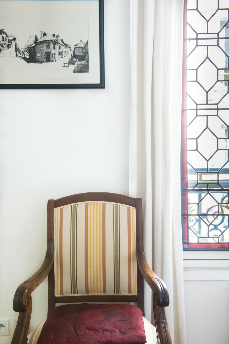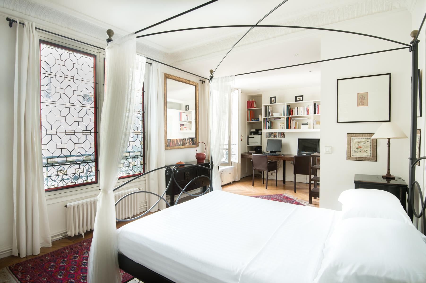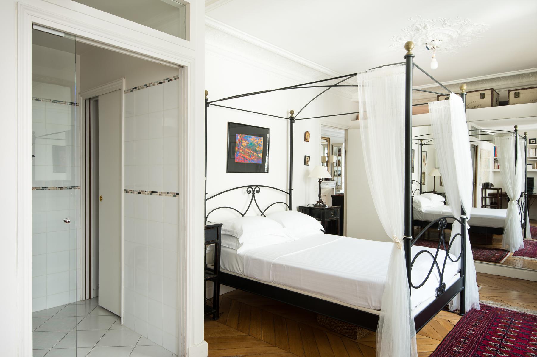 Derrière sa grande façade en pierre, la rue de Montfaucon est une maison pleine de vie. En entrant au quatrième étage, vous trouverez la cuisine soignée à droite. Tout droit devant se trouve la chambre des maîtres, où des tapis à motifs et des œuvres d’art délicates entourent un lit à baldaquin à baldaquin. À gauche, il y a un couloir avec des colonnes le long d’un côté, à la fin duquel vous trouverez l’entrée de la jolie deuxième chambre à coucher, qui a un ensemble de natures mortes au-dessus du lit double, et une suite compacte.