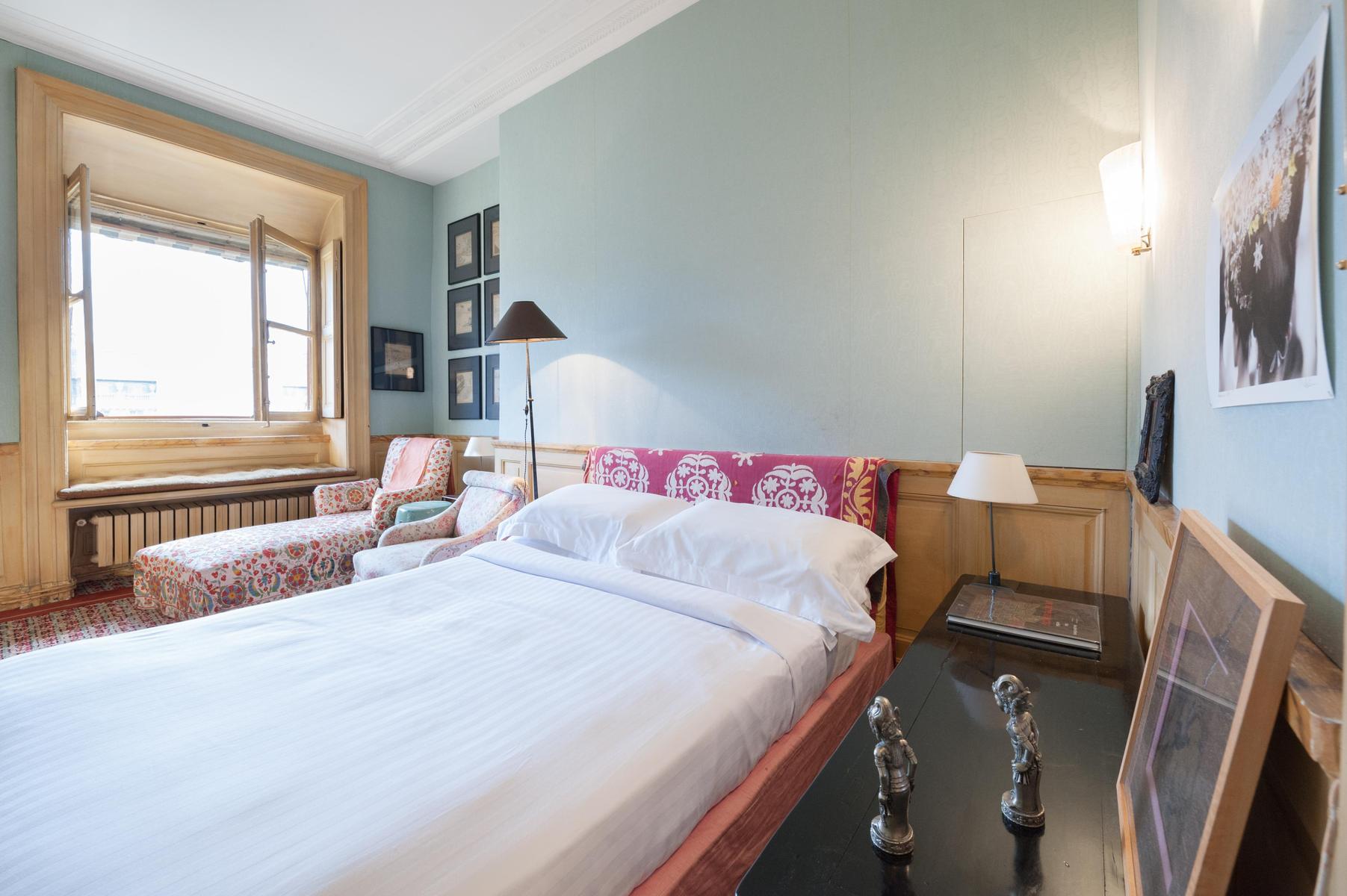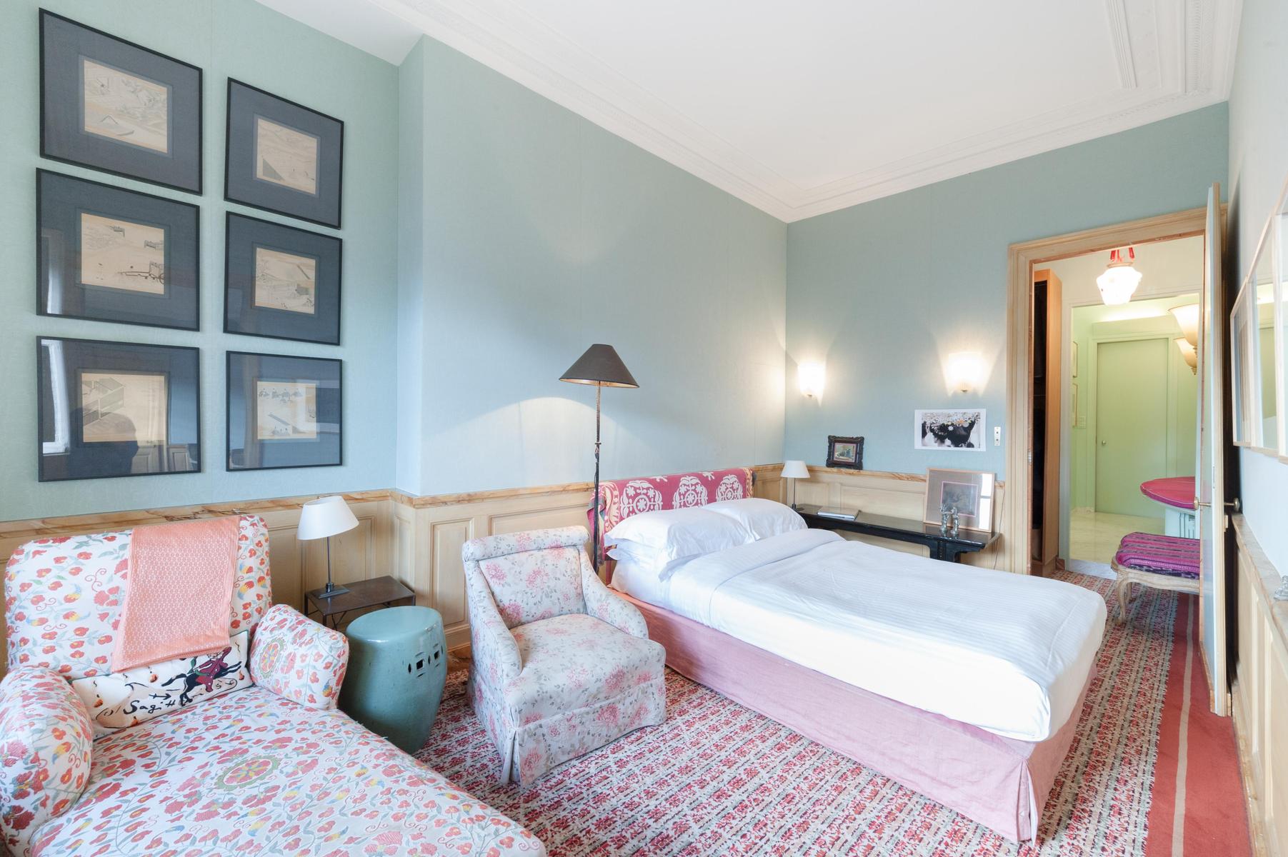 Malgré sa situation au centre-ville, la rue de Montpensier reste une escapade paisible. À l’intérieur, vous serez entouré d’un jeu de couleurs vernal de bleus, de roses et de blancs, et d’imprimés floraux. Ici, vous pouvez vous reposer dans une sérénité absolue, en vous délectant des œuvres d’art antique qui tapissent les murs, ou avec un livre choisi parmi les étagères du bureau. Vous vous sentez extraverti ? Découvrez Danton et Desmoulins dans les jardins ci-dessous ou rencontrez Molière à la Comédie Française. Mais ne vous pressez pas parce qu’ici, le temps est le cadet de vos soucis