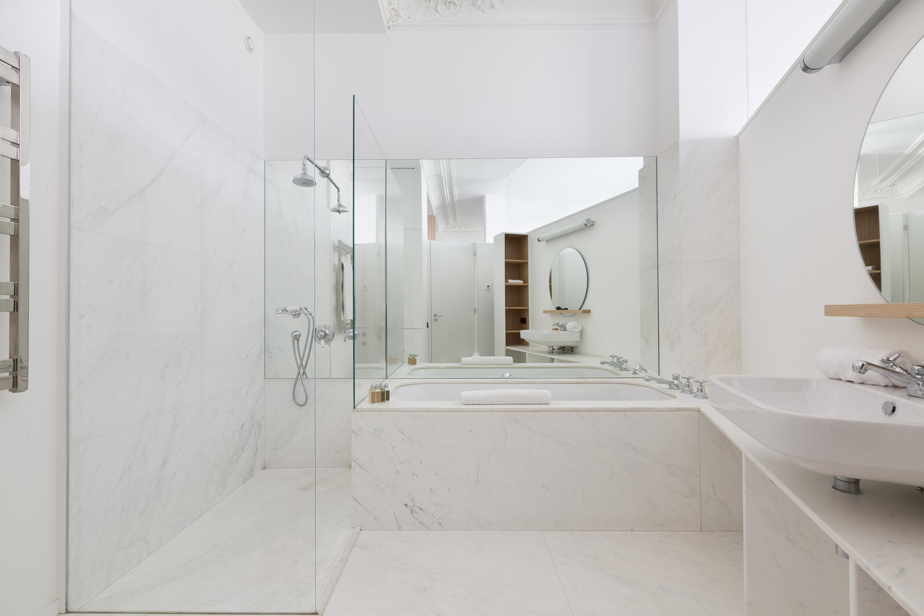 La rue de Saint-Pétersbourg est une maison de quatre chambres à coucher, deux salles de bains au Parc Monceau. Les généreux espaces de vie de cette maison ont des parquets, des murs lambrissés et des plafonds joliment décorés, mais – grâce à un mobilier contemporain épuré et à des accessoires audacieux – ils ne sont pas du tout encombrants. La chambre des maîtres ensuite est un espace au design très épuré, rendu plus arty flourishes (comme la toile frappante qui est accrochée en face du lit super king size). Le quartier est central et élégant – près de Montmartre, avec tous ses restaurants, bars et lieux d’art. La station de métro Place de Clichy est à environ deux minutes de marche d’ici.