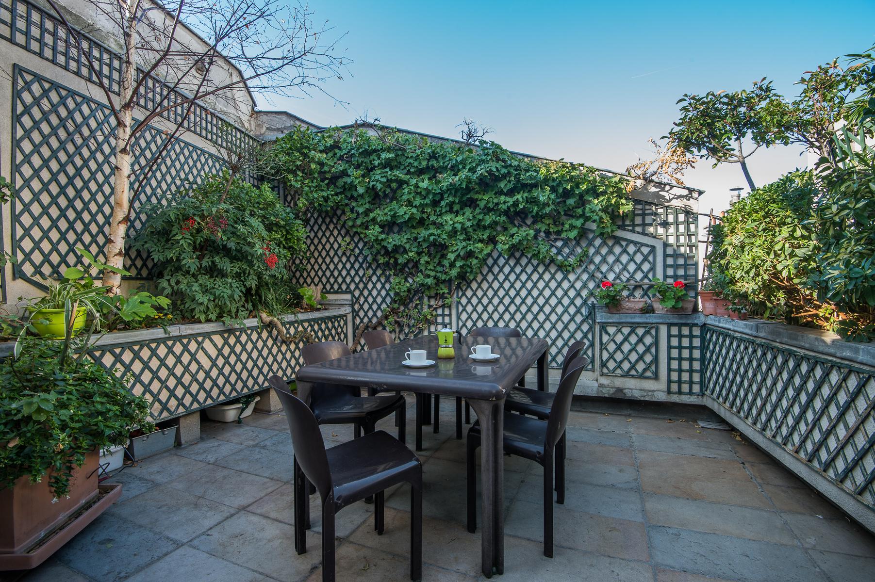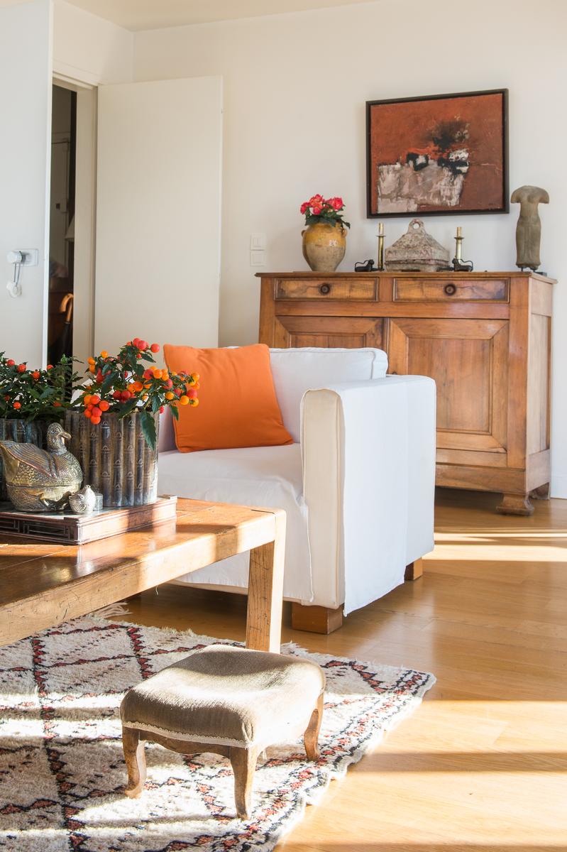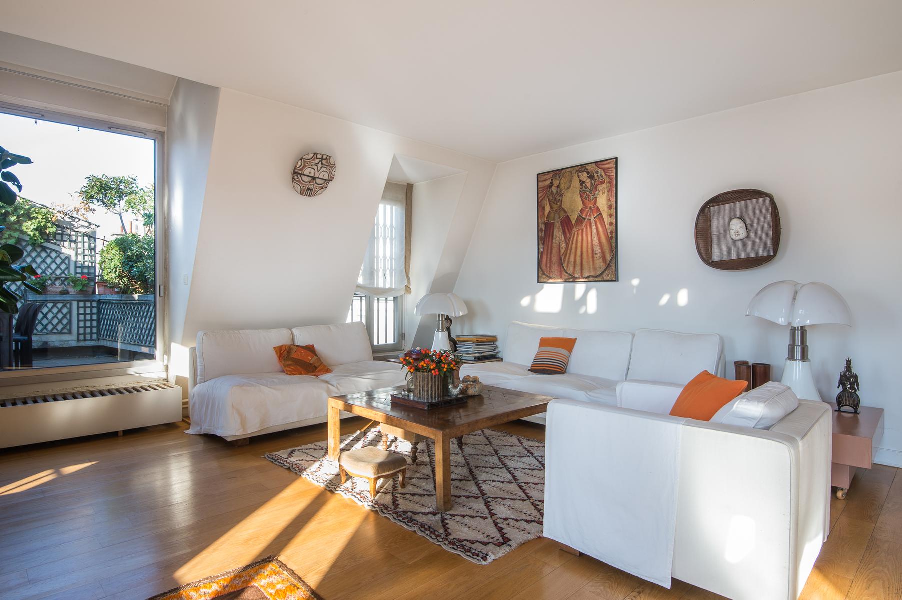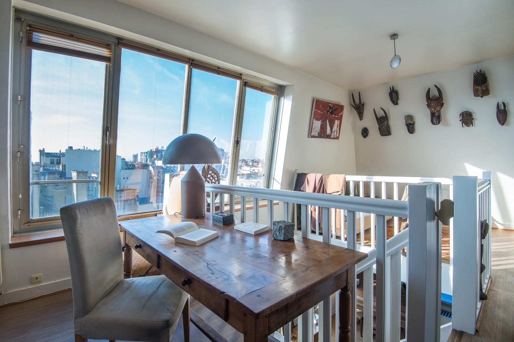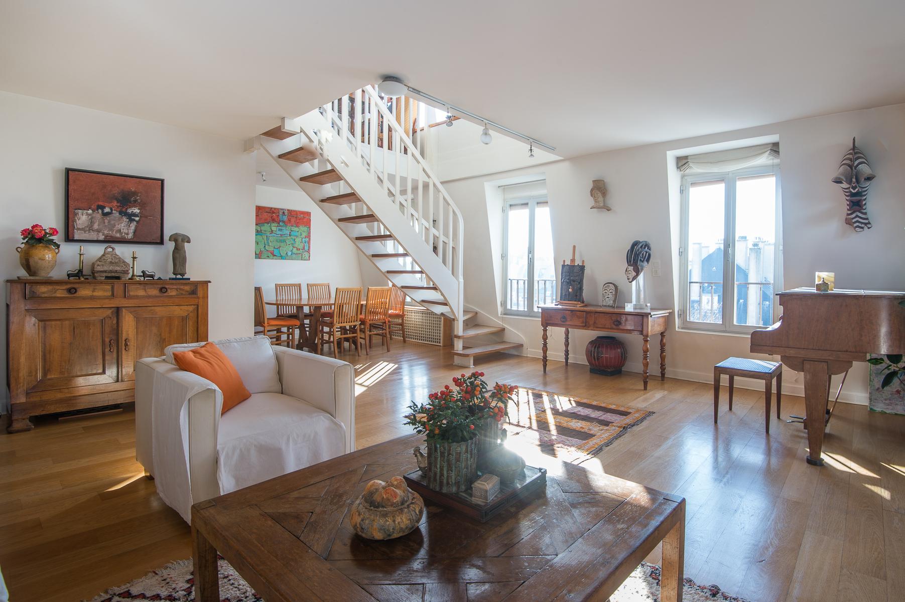 La rue des Haudriettes est un appartement de deux chambres, deux salles de bains au Marais. Les pièces peintes en blanc de cette maison sont meublées avec des pièces discrètes, mais avec des accessoires et des œuvres d’art exotiques – les figures sculptées de la chambre à coucher principale sont particulièrement frappantes. De plus, il y a une terrasse (avec vue sur le toit) à chaque étage. Les nombreux commerces, cafés et bars du Marais sont tous à proximité, et vous êtes également à proximité de la plus ancienne place de la ville, la place des Vosges. Le Centre Pompidou et le Musée Picasso sont également à quelques minutes à pied, et la station de métro Rambuteau n’est qu’à six minutes de marche.