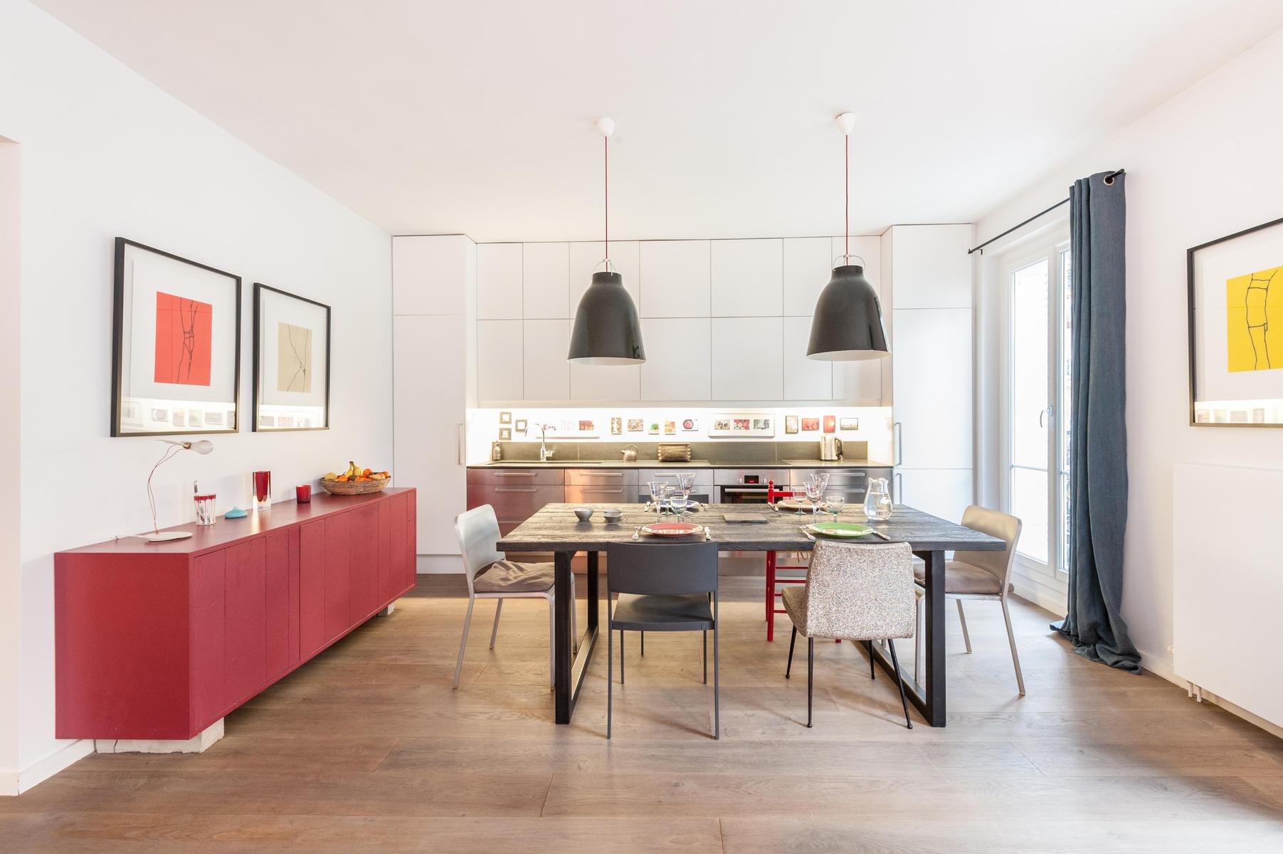 Situé dans la plus romantique des enclaves parisiennes, cet élégant appartement est à deux pas du Sacré-Coeur, du Moulin Rouge et du Palais Garnier. Sur la toile brillante de cette maison familiale récemment remodelée, vos hôtes ont employé leur astuce esthétique. Voyez la cuisine en chrome brossé et l’intriguant mélange de meubles contemporains – sans parler du couloir aux murs courbes et aux murs noirs. Et si Van Gogh et Toulouse-Lautrec huilaient autrefois les rues animées de ces quartiers, c’est aujourd’hui une scène plus urbaine qui colorera vos impressions, depuis les nombreux cafés et restaurants sur le trottoir jusqu’aux galeries d’art cultivées.