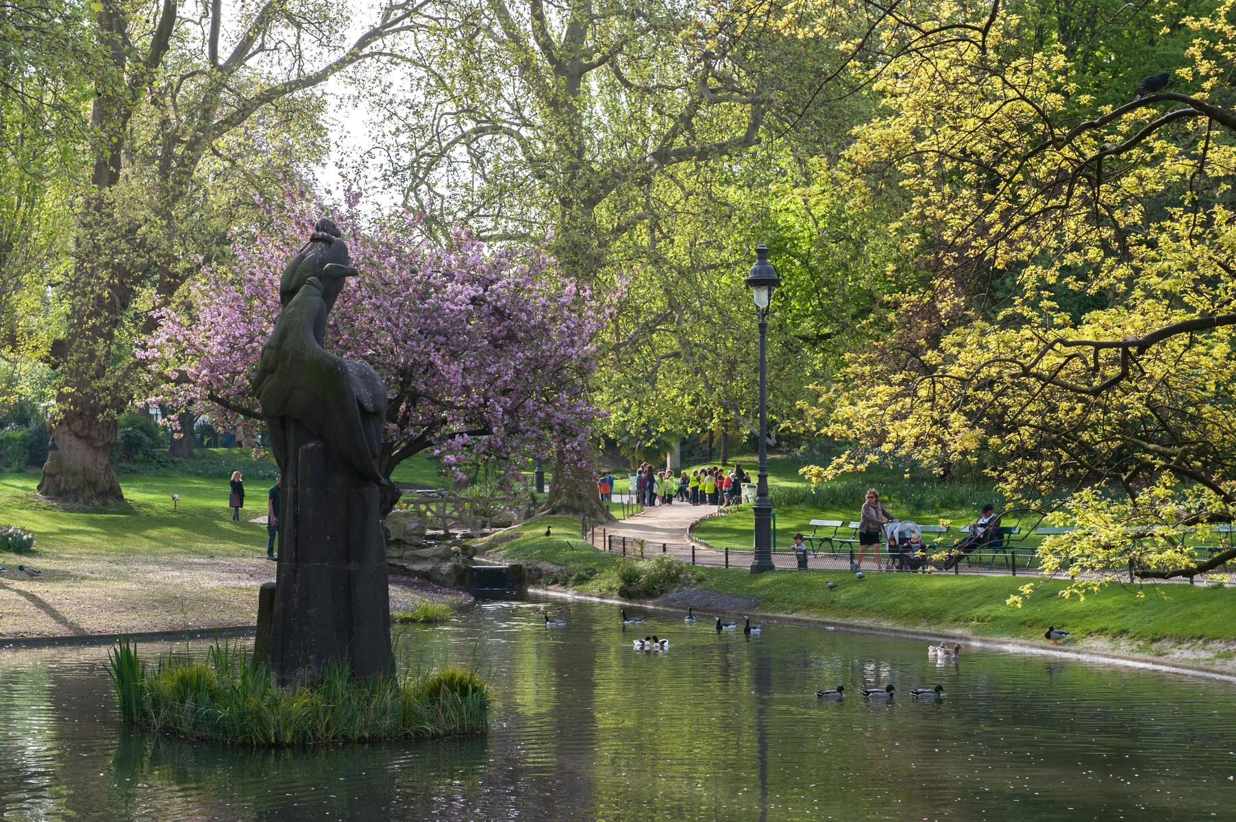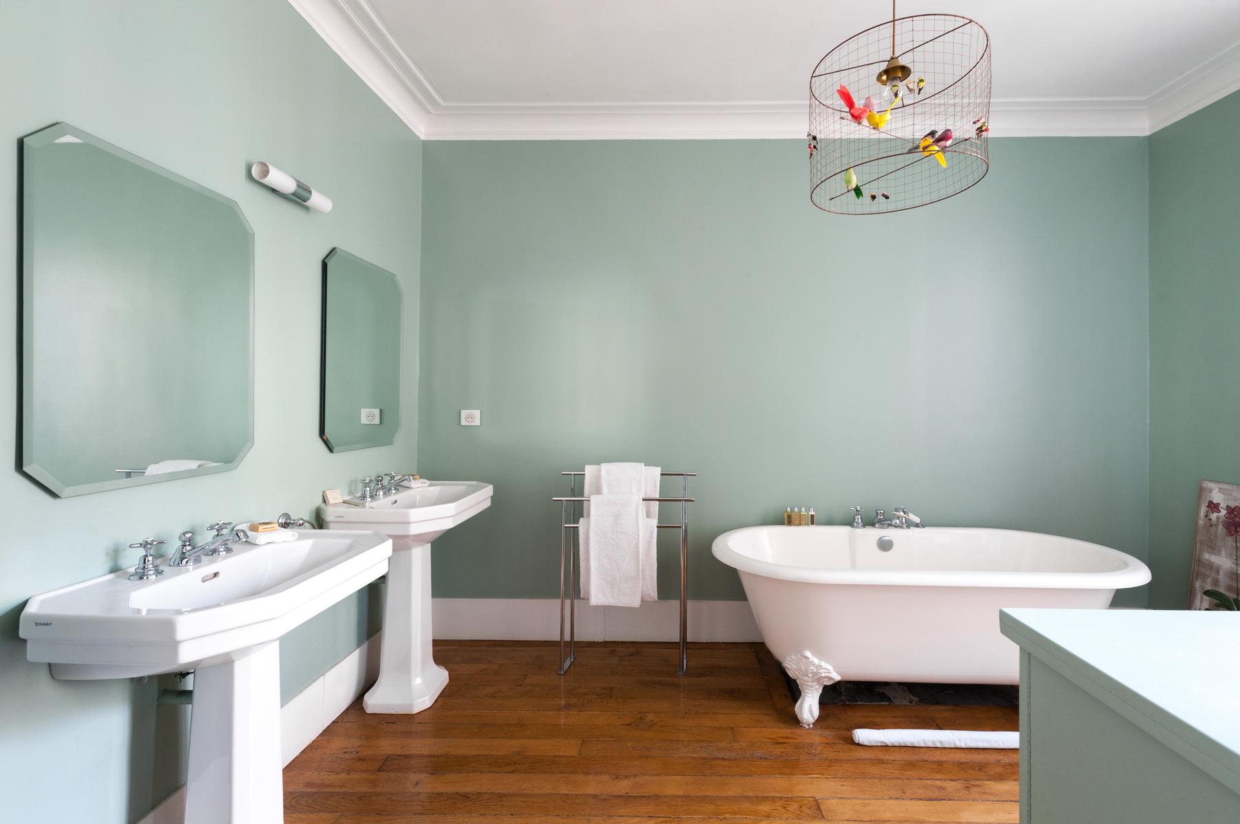 Une toile d’arbres surplombe la tête de lit neutre du lit principal, tandis que des maquettes d’oiseaux sont suspendues dans la salle de bains. Il est peint en sarcelle douce, et une baignoire à roulettes sur des planchers en bois à côté de deux élégants bassins. Si vous apportez votre couvain, il y a deux chambres d’enfants. Le Square des Batignolles n’est qu’à deux minutes à pied, et vous passerez devant de nombreux restaurants, bars et espaces verts en route.