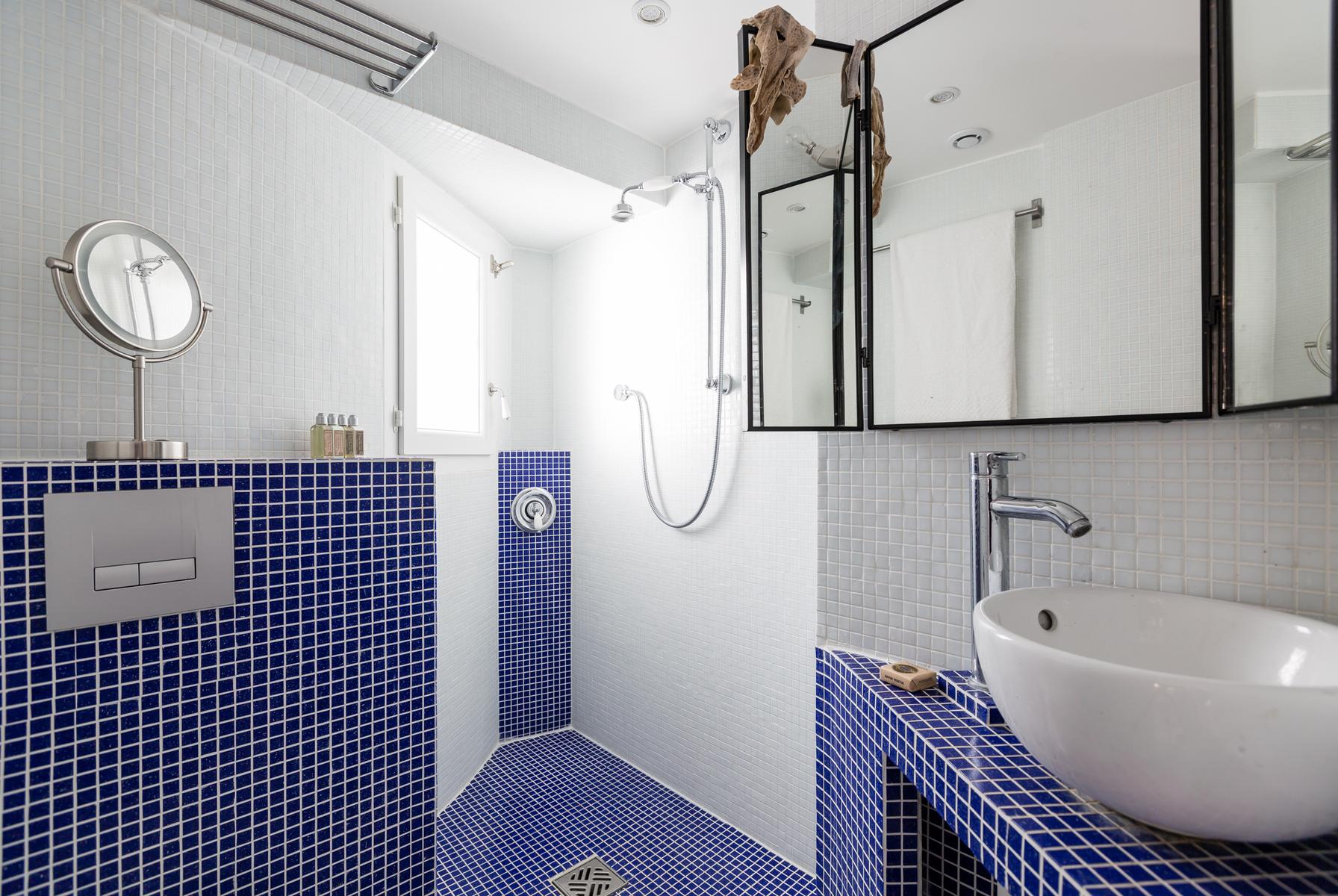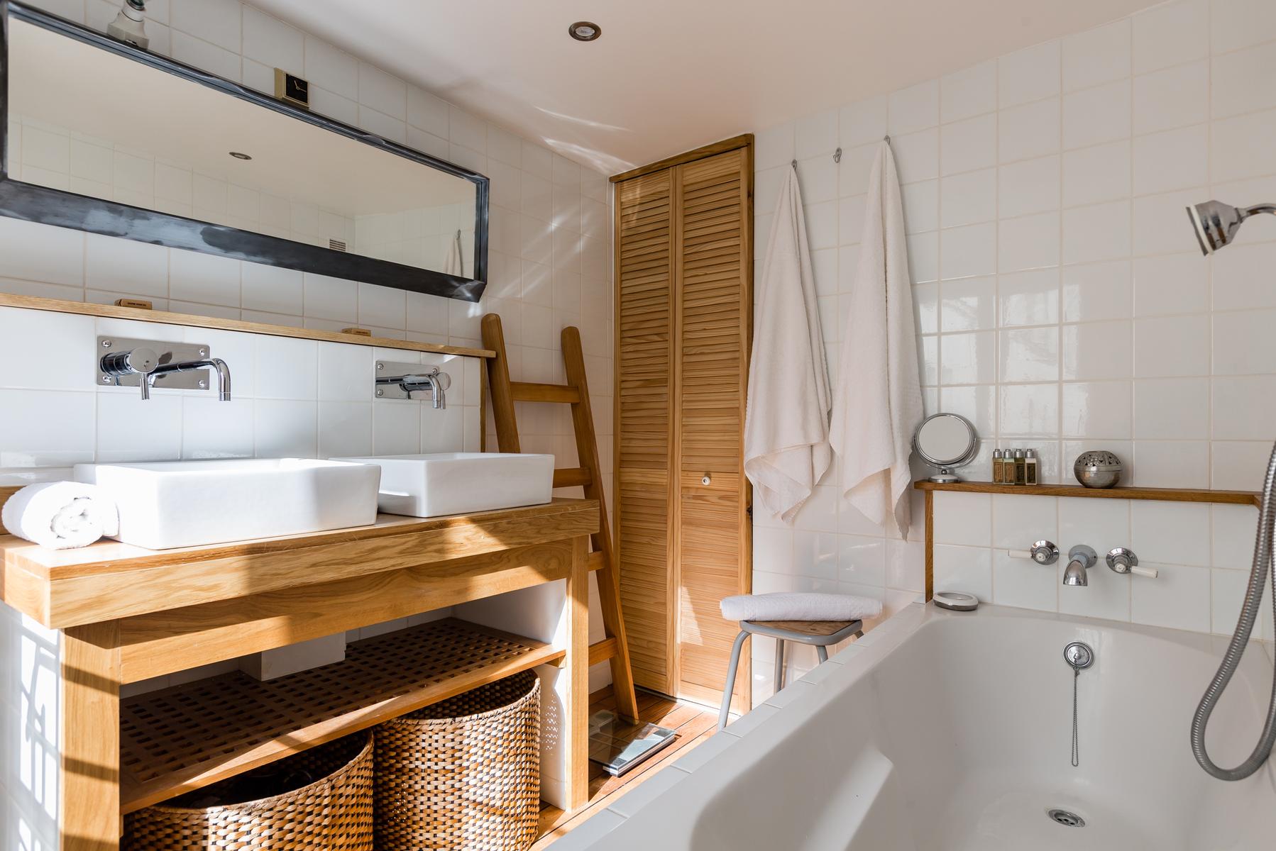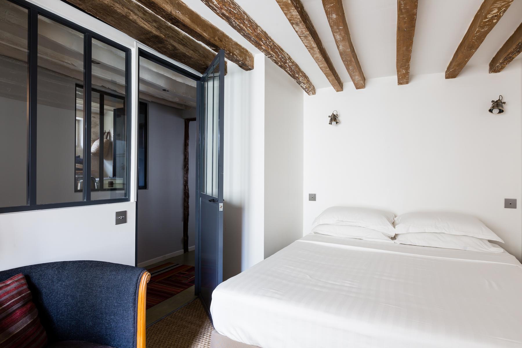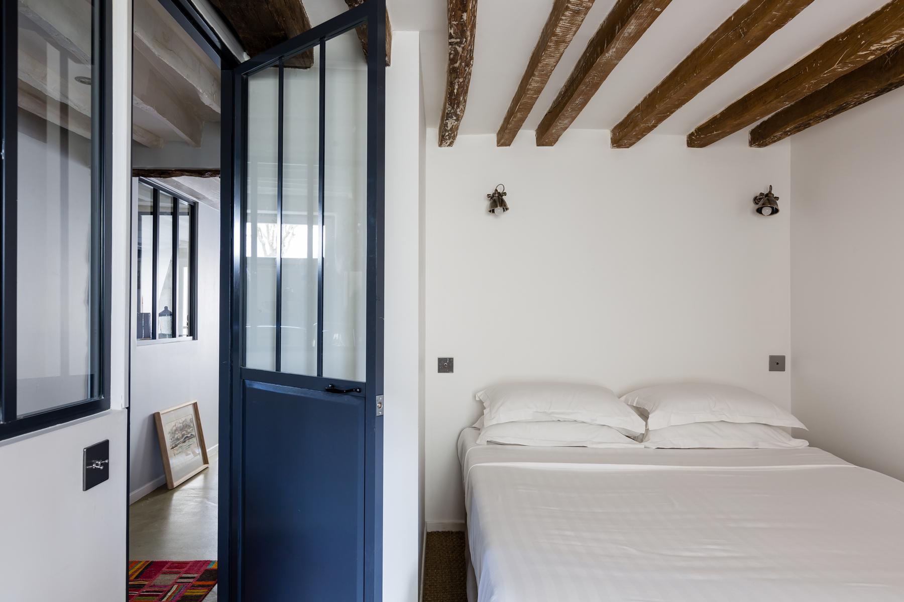 La chambre des maîtres ensuite, avec sa palette de couleurs douces et son mobilier sobre, est d’un calme contrasté. A quelques pas du Bon Marché, vous êtes également à proximité du Jardin du Luxembourg. De plus, ce quartier élégant abrite de nombreux restaurants et quelques musées.