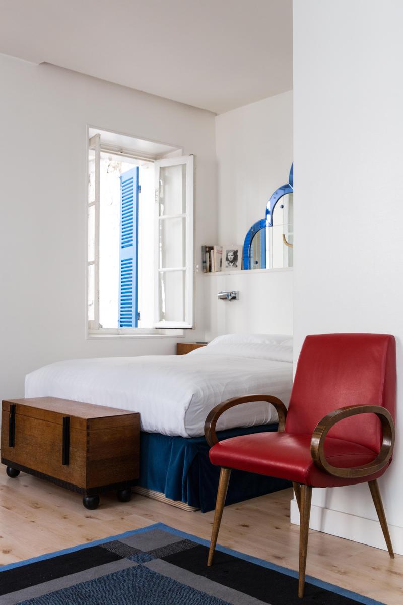En parlant de choses uniques, il faut jeter un coup d’œil à la garde-robe métallique, utilisée par l’armée française pendant la Seconde Guerre mondiale, ainsi qu’à la courbe nuageuse du miroir de la chambre à coucher. Ouvrez la fenêtre et laissez entrer l’air de la campagne, ou rafraîchissez-vous plutôt dans la petite mais jolie salle de douche.