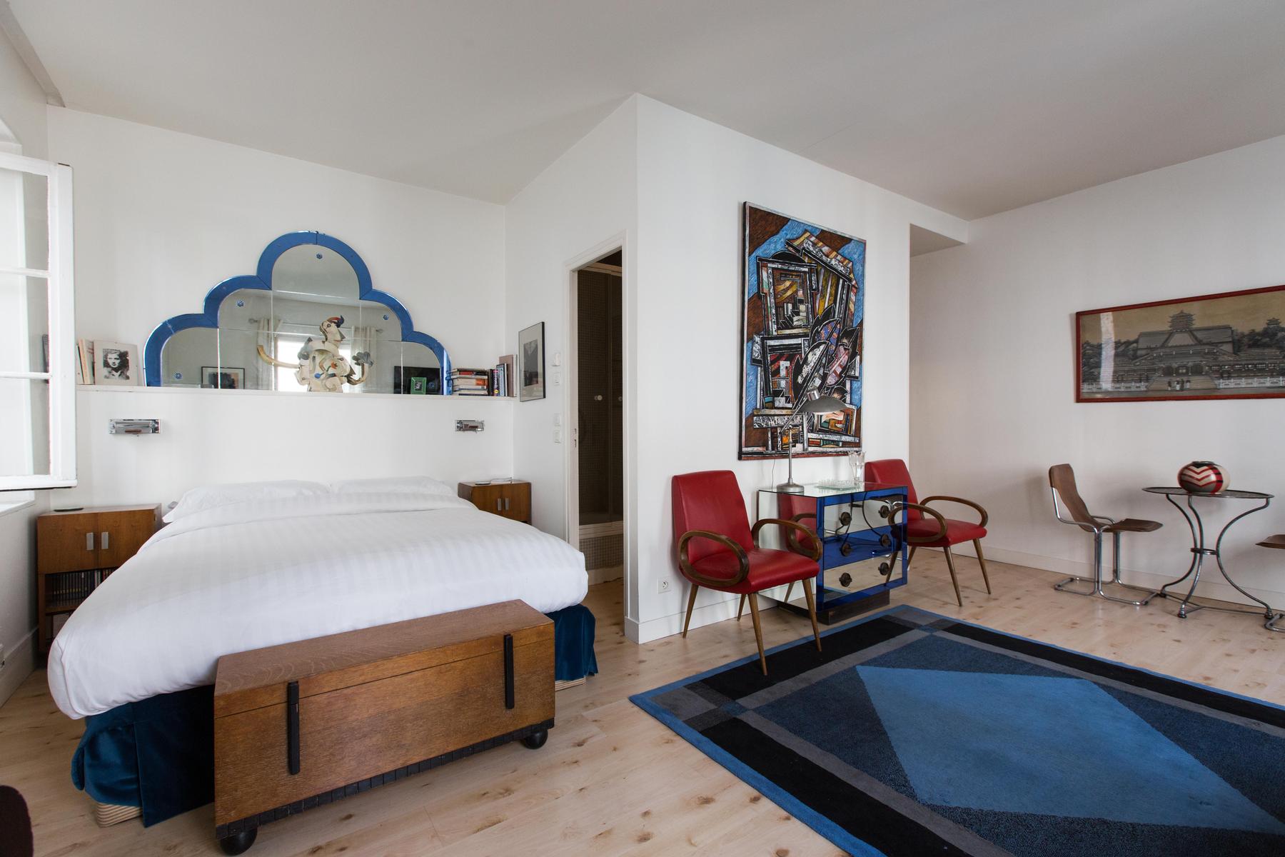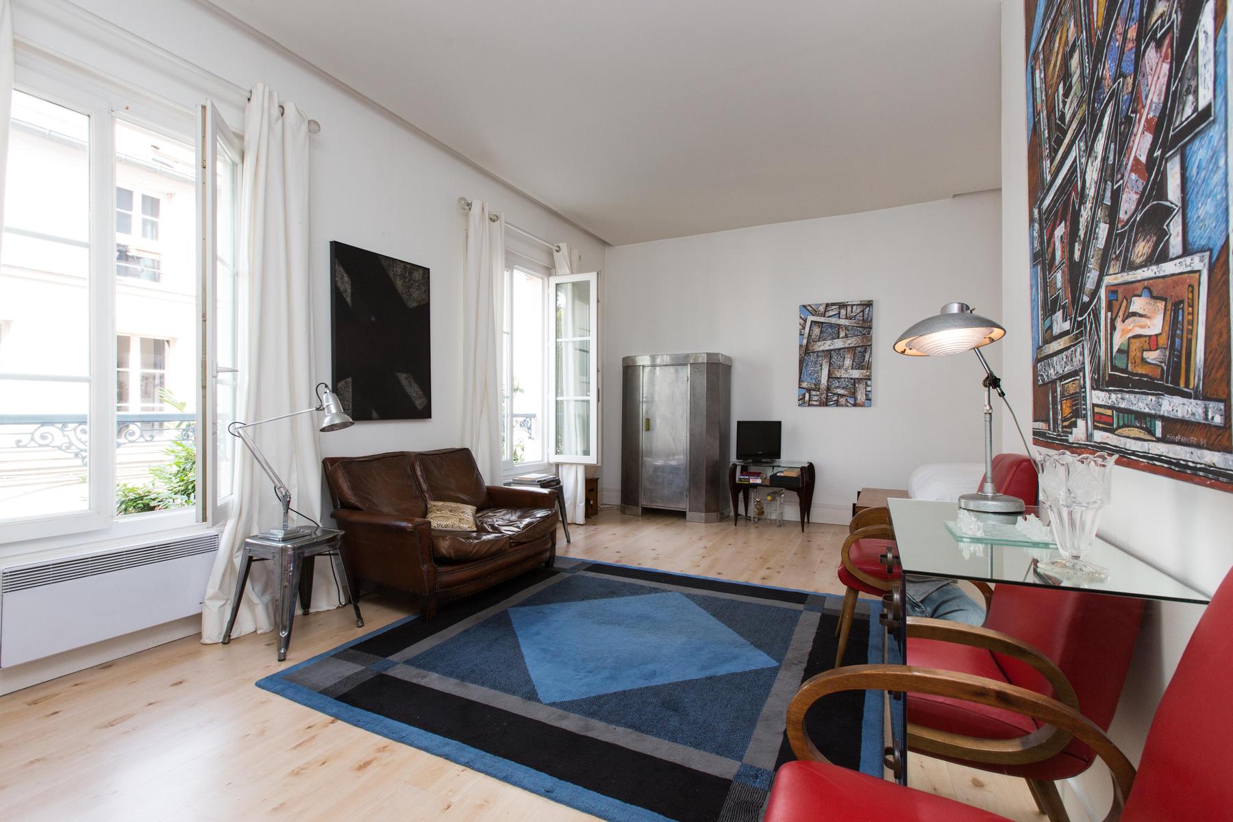 De temps en temps, nous souhaitons tous un peu de calme à la campagne. Mais ne soupirez plus. Parmi les maisons fermées et les boutiques de village de la rue du Commerce, il y a la plus belle petite ruelle que vous ayez jamais vue. Tous les pavés en mousse et les feuilles endormies, c'est une maison pour apporter l'harmonie à l'âme – et vous n'avez pas encore fait un pas à l'intérieur. Vous serez tout aussi ravi par les touches Art Déco, l’art audacieux et vibrant et la garde-robe unique de la Seconde Guerre mondiale avec son éclat argenté. Et cette cachette se trouve à dix minutes à pied de la Tour Eiffel.