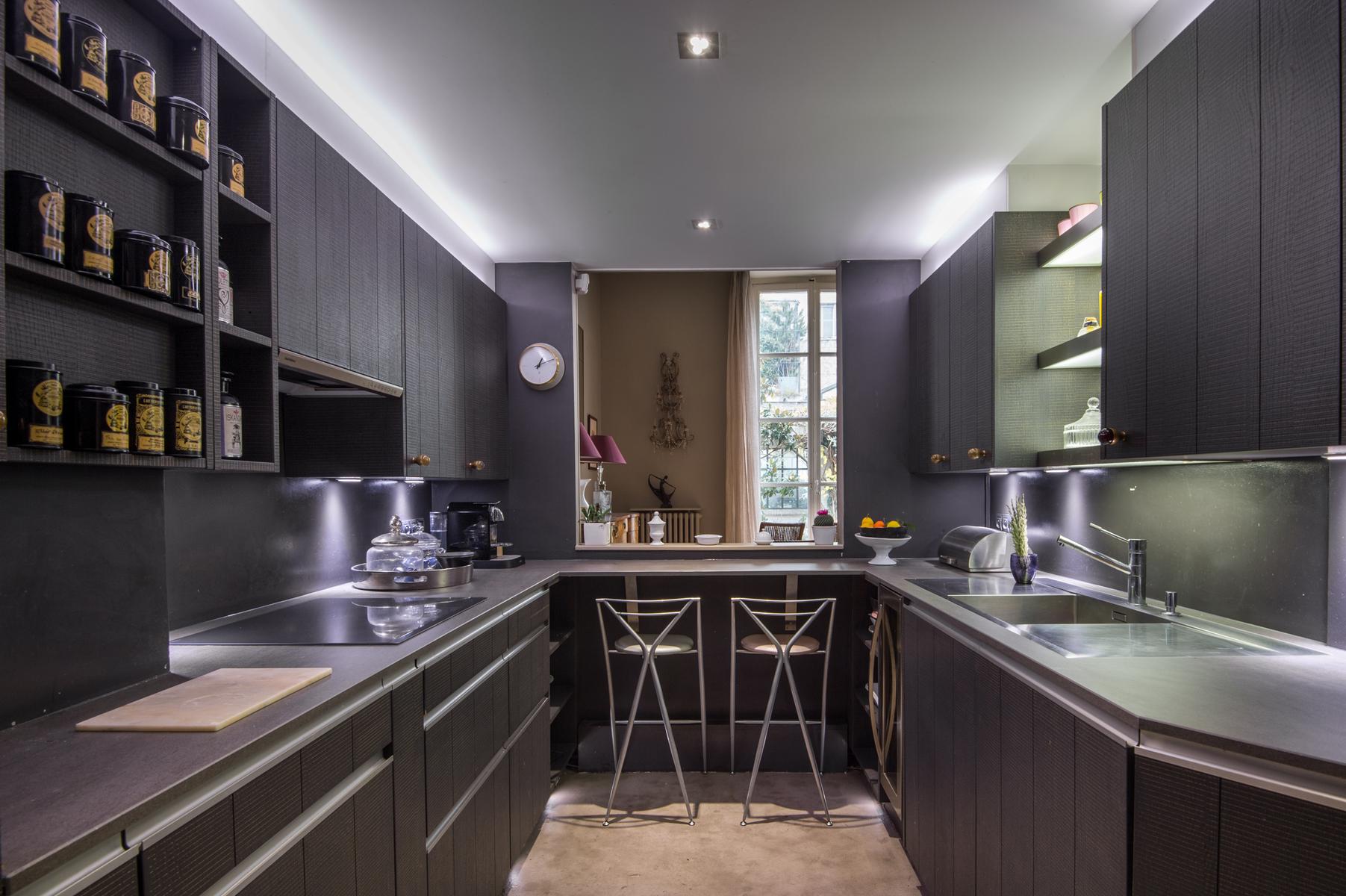A la cuisine contemporaine gris anthracite, tous les espaces de vie de cette maison ont un caractère authentique.