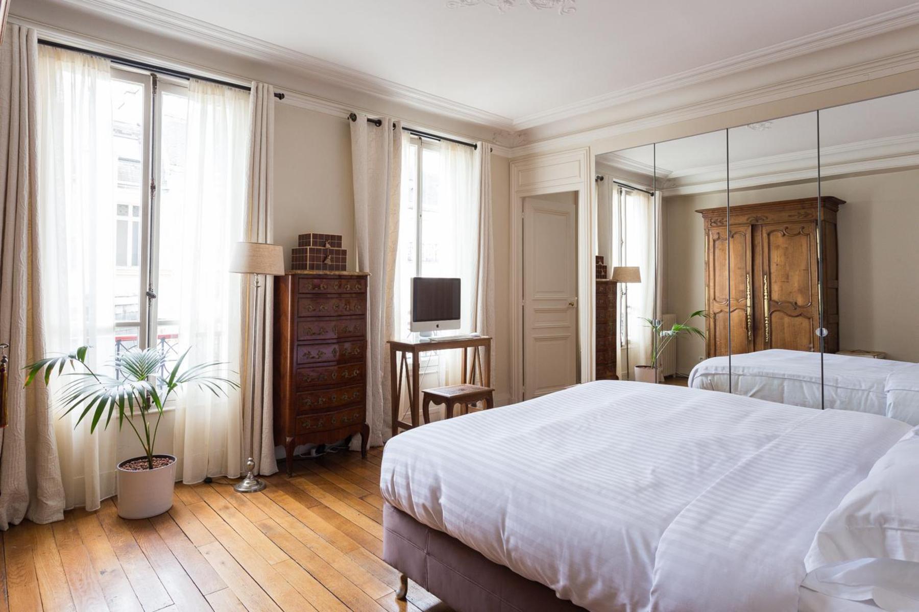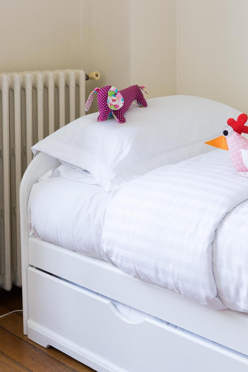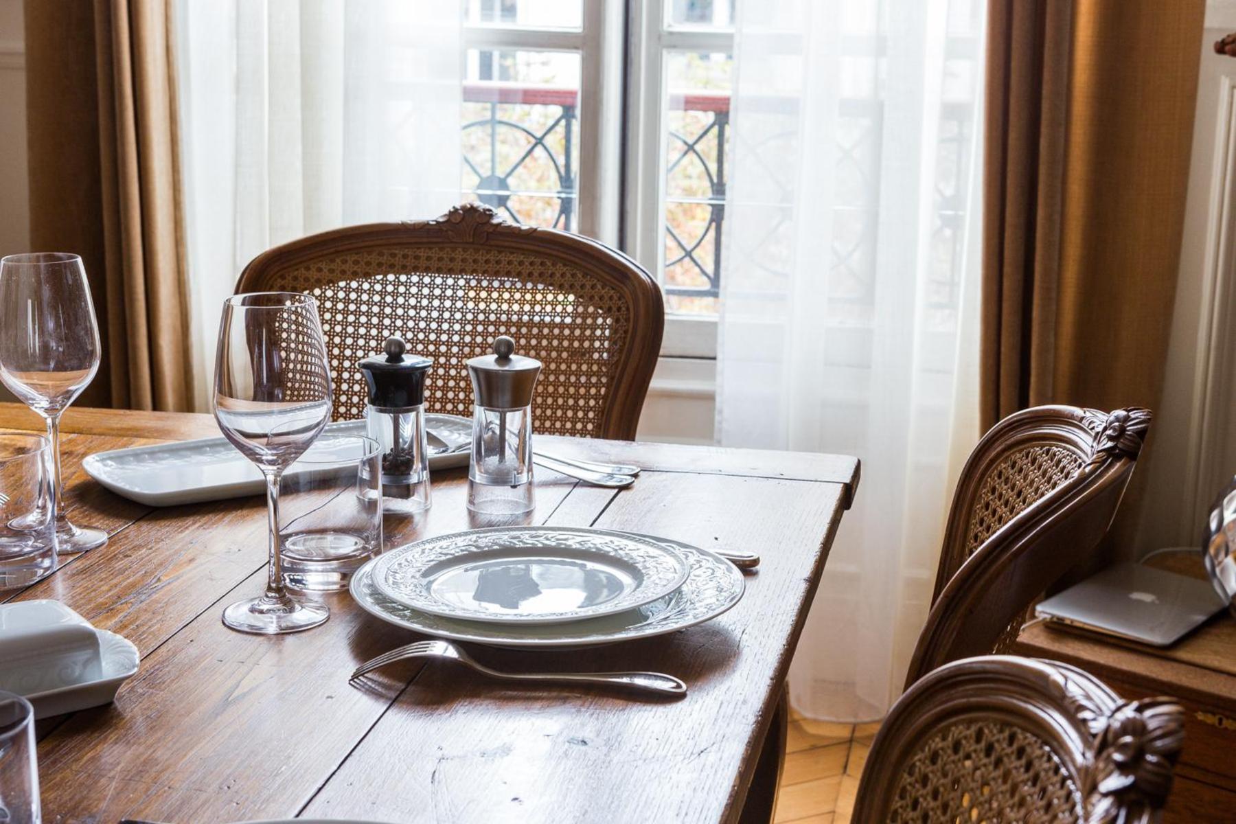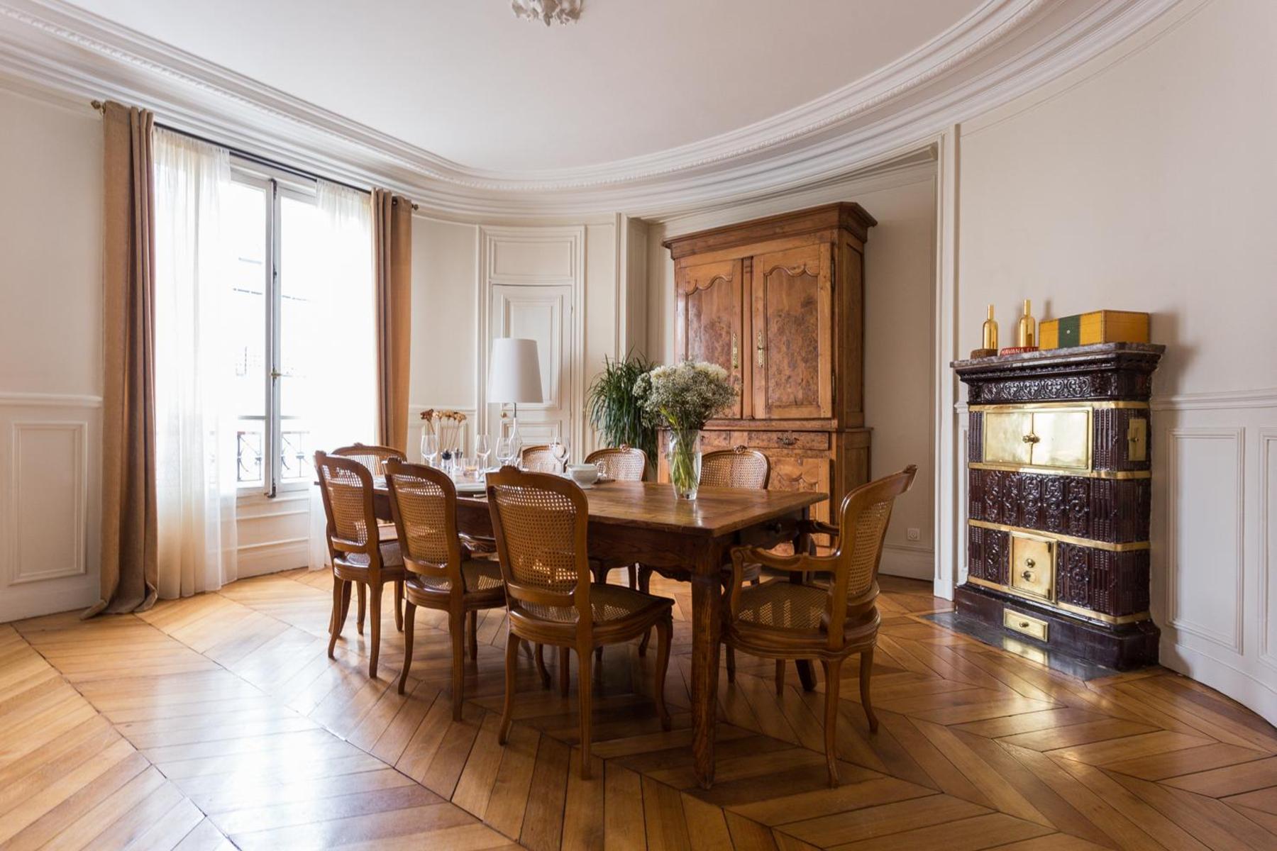 L’extérieur de la rue du Général Foy est fait de pierre miellée avec des fleurs haussmanniennes, et à l’intérieur l’histoire continue. Hauts plafonds, lambris traditionnels et peints dans des tons crème subtils, ses pièces sont une toile de fond élégante pour une collection de meubles Louis XV. Il y a une garde-robe ornée dans la chambre double – héritée il y a longtemps par votre hôtesse – ou vous pourriez admirer la poitrine ornée d’or dans la grande salle à manger. Et que vous tiriez les rideaux de soie avant de vous rassembler à la table polie ou que vous vous retrouviez dans l’un des fauteuils en cuir à côté de la cheminée en marbre, vous constaterez que dans un environnement aussi riche, les heures passent d’autant plus agréablement.