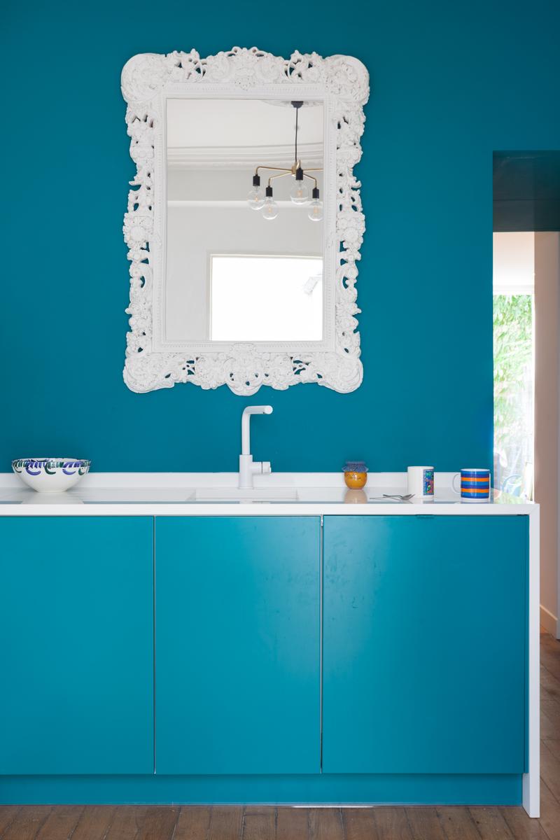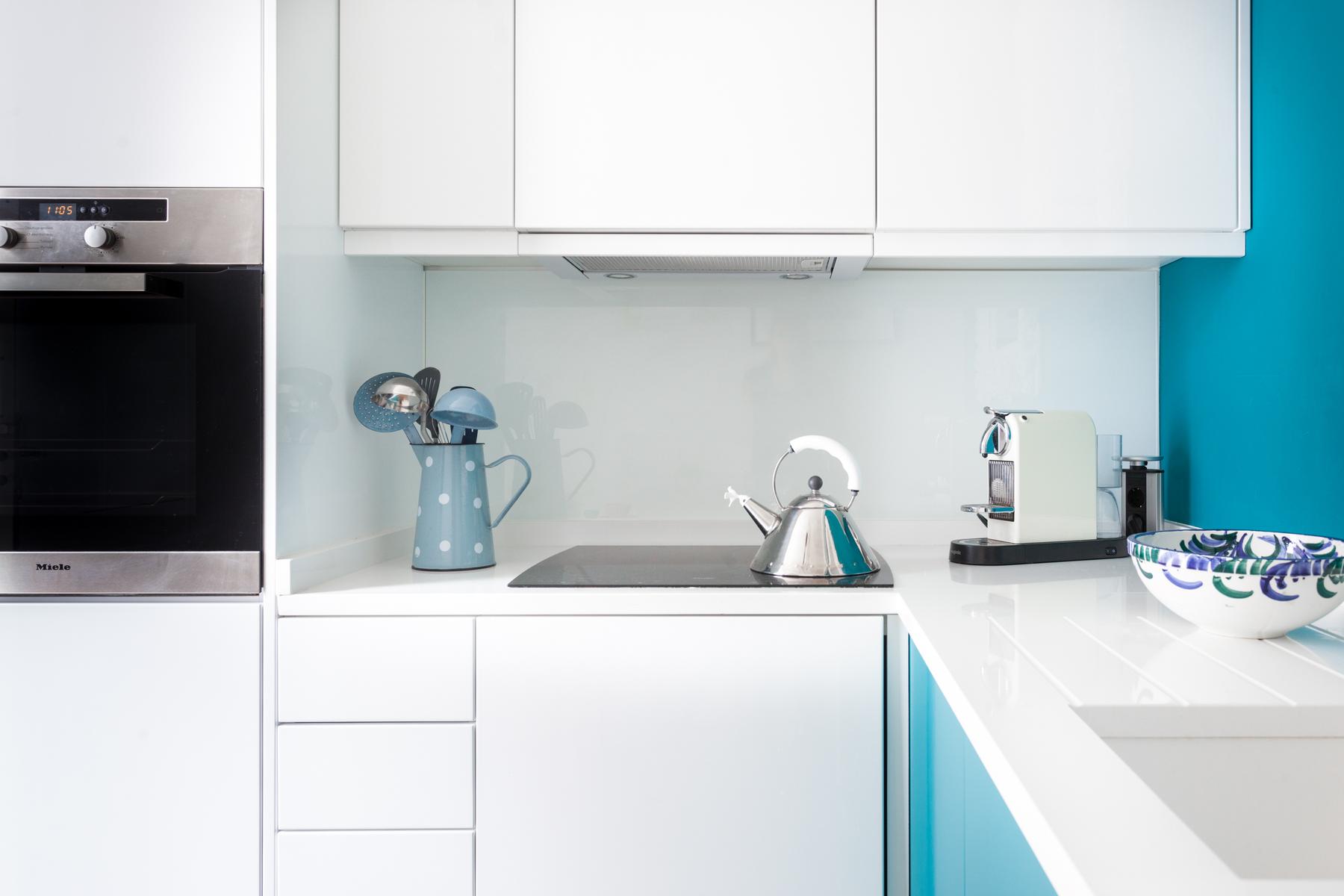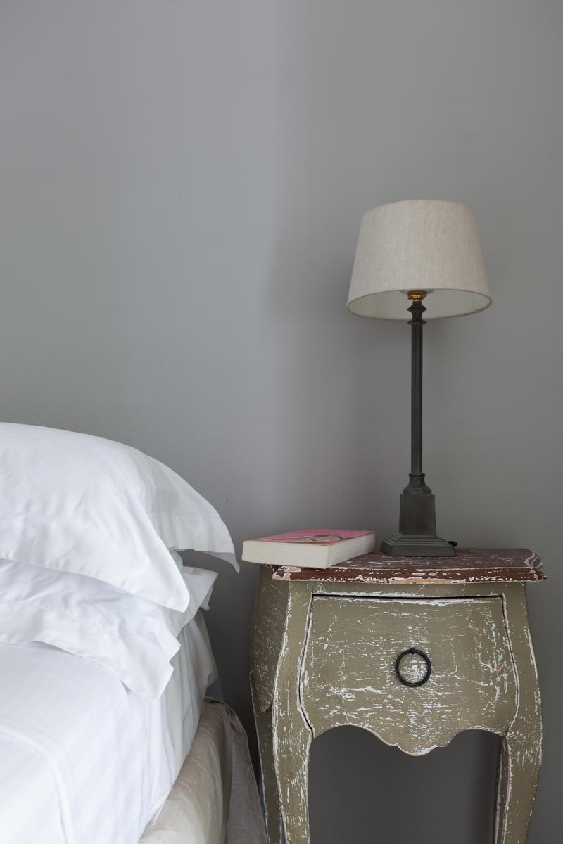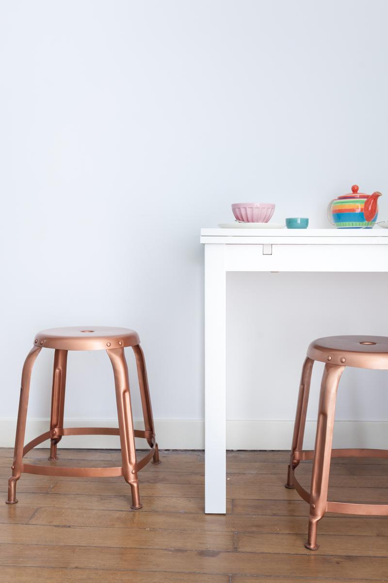 Sur une rue classique de Saint-Germain-des-Prés, vous trouverez la porte d’entrée du rez-de-chaussée de la rue Jean Bart. Vous entrez dans la cuisine blanche, où un mur turquoise vif et un ensemble de tabourets en cuivre brillant donnent des éclats de couleur. Au-delà, il y a un couloir court, où la salle de bain soignée (avec des carreaux de sol en damier de caractère) se trouve sur la gauche. Ensuite se trouve le salon, un espace décontracté avec un canapé et un fauteuil, des étagères bien garnies et une pochette d’impressions d’art colorées. Plus détendue encore est la chambre principale, qui se trouve sur la gauche. Il est simplement décoré dans des tons doux, et a une jolie vue sur la terrasse.