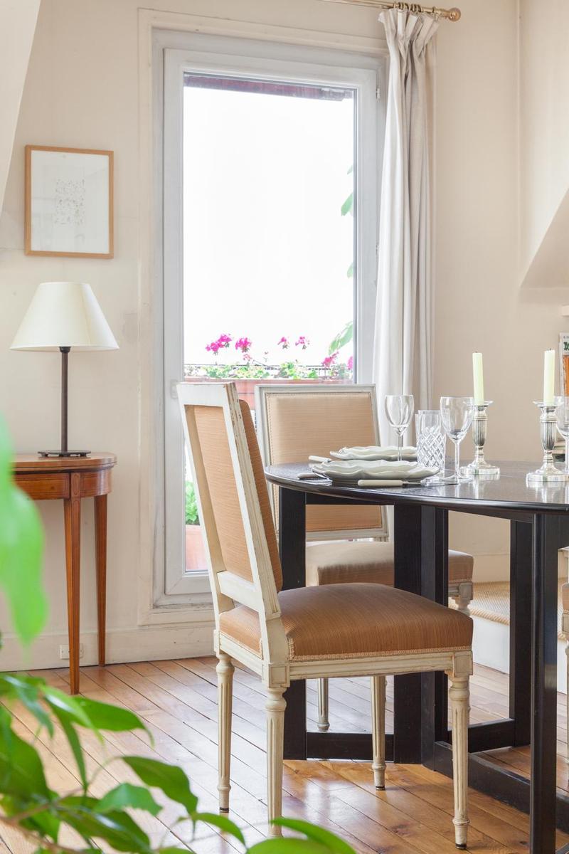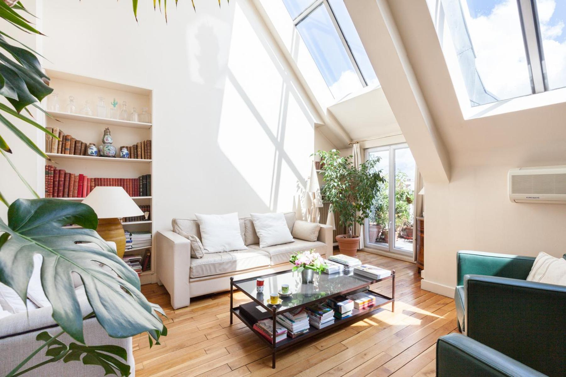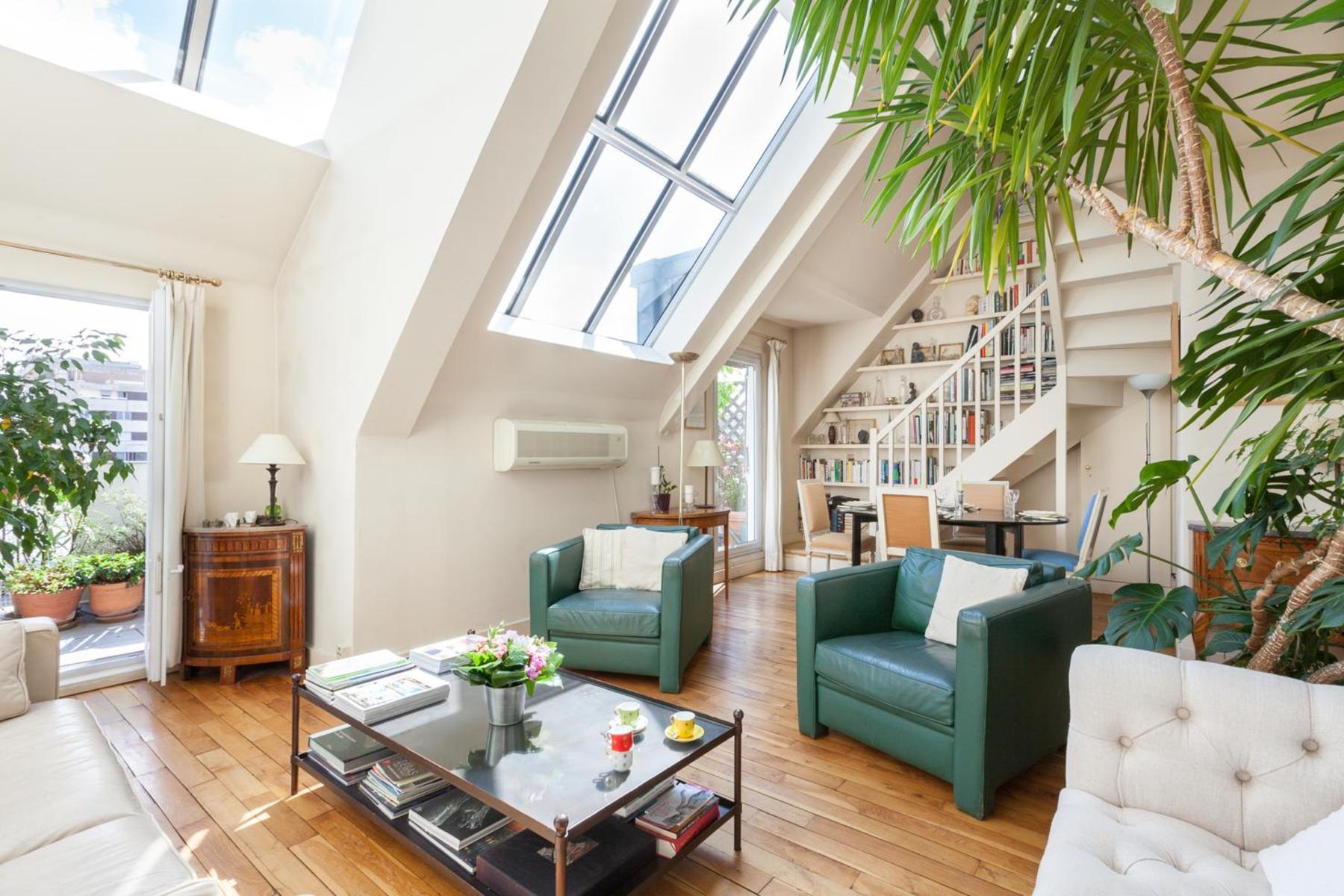Spirits can’t help but soar in Rue Jean Daudin, romantically perched above the rooftops of Paris. Watch as white clouds roll by against a brilliant blue sky through the sloping glass ceilings, while the sun sets the living room aglow through delicate French doors. But don’t hide away for too long – the flower-filled balcony beyond the sitting room looks out onto nearby markets, shopping avenues and The Panthéon.